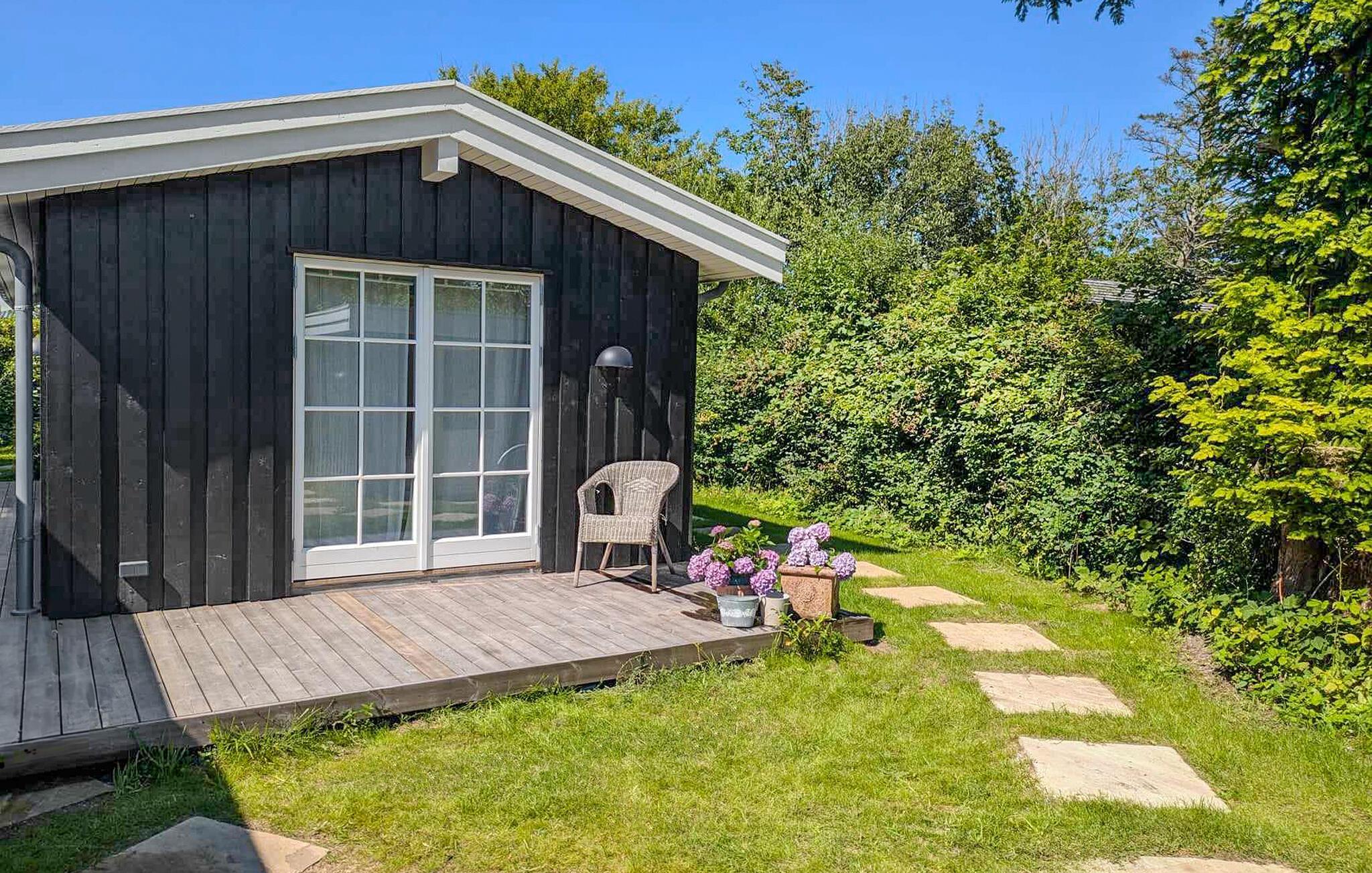 Hyggeligt træhus nær Vejby Strand med plads til familie, indhegnet have og moderne faciliteter.