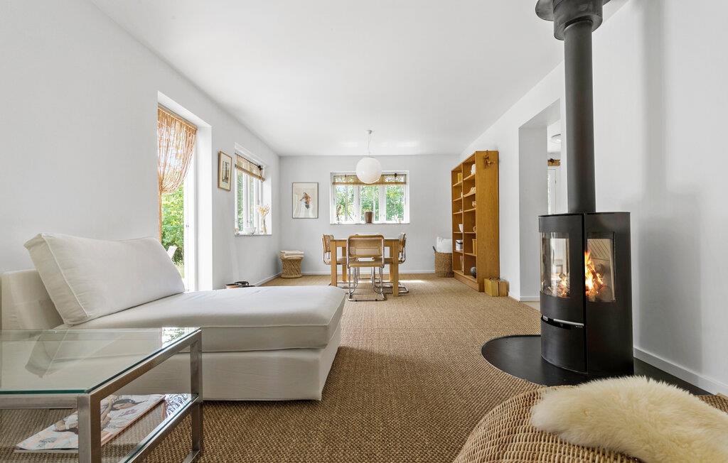 Charmerende feriehus nær Vejby Strand med have, brændeovn og moderne faciliteter.