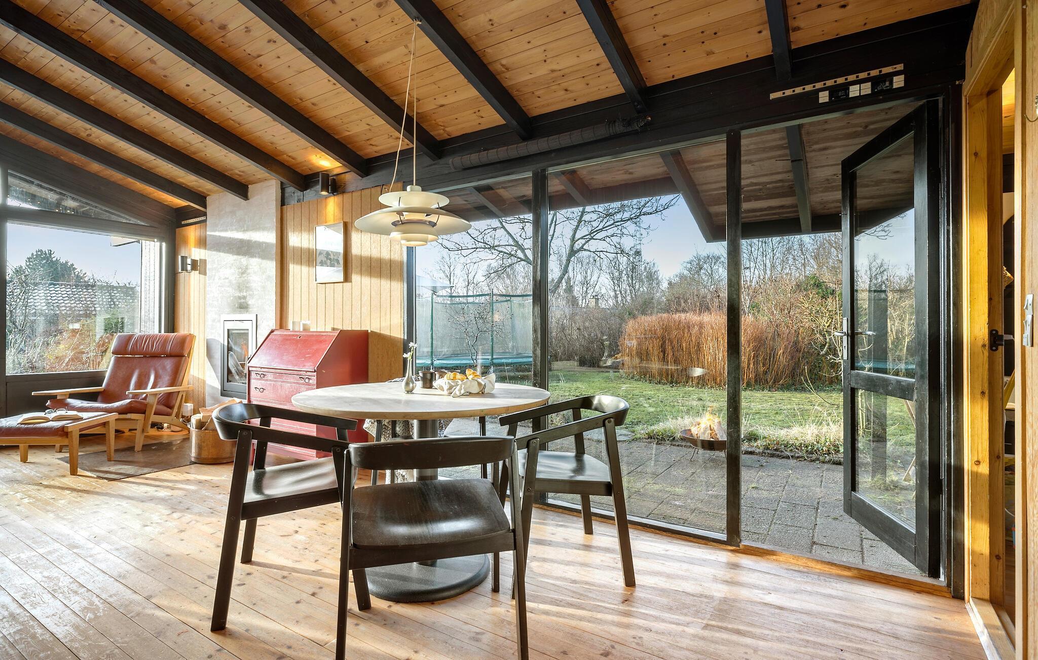 Kun en kort gåtur fra havet venter dette charmerende feriehus i Vejby Strand på jer. De store vinduer lader masser af lys strømme ind i de kærligt indrettede rum og skaber en indbydende atmosfære. Lav mad i køkkenet, og nyd jeres måltider i spiseområdet, der går over i den hyggelige stue med pejs. På den delvist overdækkede terrasse kan I nyde både skygge og sol, mens børnene har det sjovt med legeredskaberne i haven. Et særligt højdepunkt i jeres feriehus er det finske træbad, hvor I kan slappe af efter en lang dag i den friske luft.