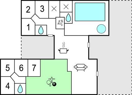 Tæt på en af Nordsjællands gode badestrande finder I dette sommerhus til ferien, der skal være speciel. Huset er lyst og lækkert indrettet og udstyret med komfortable moderne møbler, hvor I rigtig kan slappe af og hygge jer sammen. Stort åbent køkken i forbindelse med stuen, hvor samtalerne kan gå på kryds og tværs. Aktivitetsrummet ligger ved siden af stuen, og har flere forskellige aktiviteter til både store og små. Ved den dejlige swimmingpool er der et seks personers spabad samt adgang til saunaen - her er wellness i rigt mål. Den skønne, store terrasse er møbleret med havemøbler, hvor I kan sidde og slappe af og rigtig nyde ferien i fulde drag. På lune sommeraftener er det også skønt at tænde op i grillen og tilberede et lækkert feriemåltid. Huset har desuden syv gode soveværelser samt en hems med fire sovepladser med opgang fra aktivitetsrummet. Her er gode muligheder for gå- og cykelture, oplev det naturskønne Heatherhill eller cykel en tur til Tisvildeleje, der byder på gode restauranter, caféer, små hyggelige butikker og en dejlig atmosfære. Depositum og eventuel slutrengøring, betales kontant i huset. Energiforsyningen til huset er 100% Grøn Energi - kun fra Danske Vindmøller.