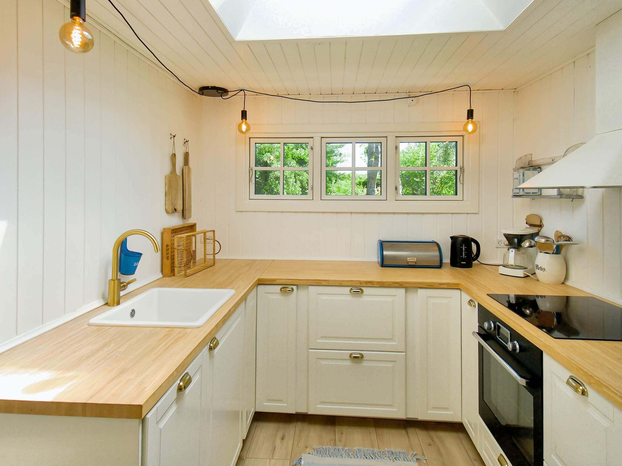 Indvendigt byder huset på tre soveværelser og et åbent køkken i forbindelse med stuen, hvilket skaber et naturligt samlingsrum for familielivet. Opholdsstuen er lys og rummelig med franske døre, der åbner ud til en stor terrasse, hvor du kan nyde måltider, solbade eller slappe af med en bog. En hyggelig brændeovn og en klimavenlig varmepumpe giver varme på køligere dage.