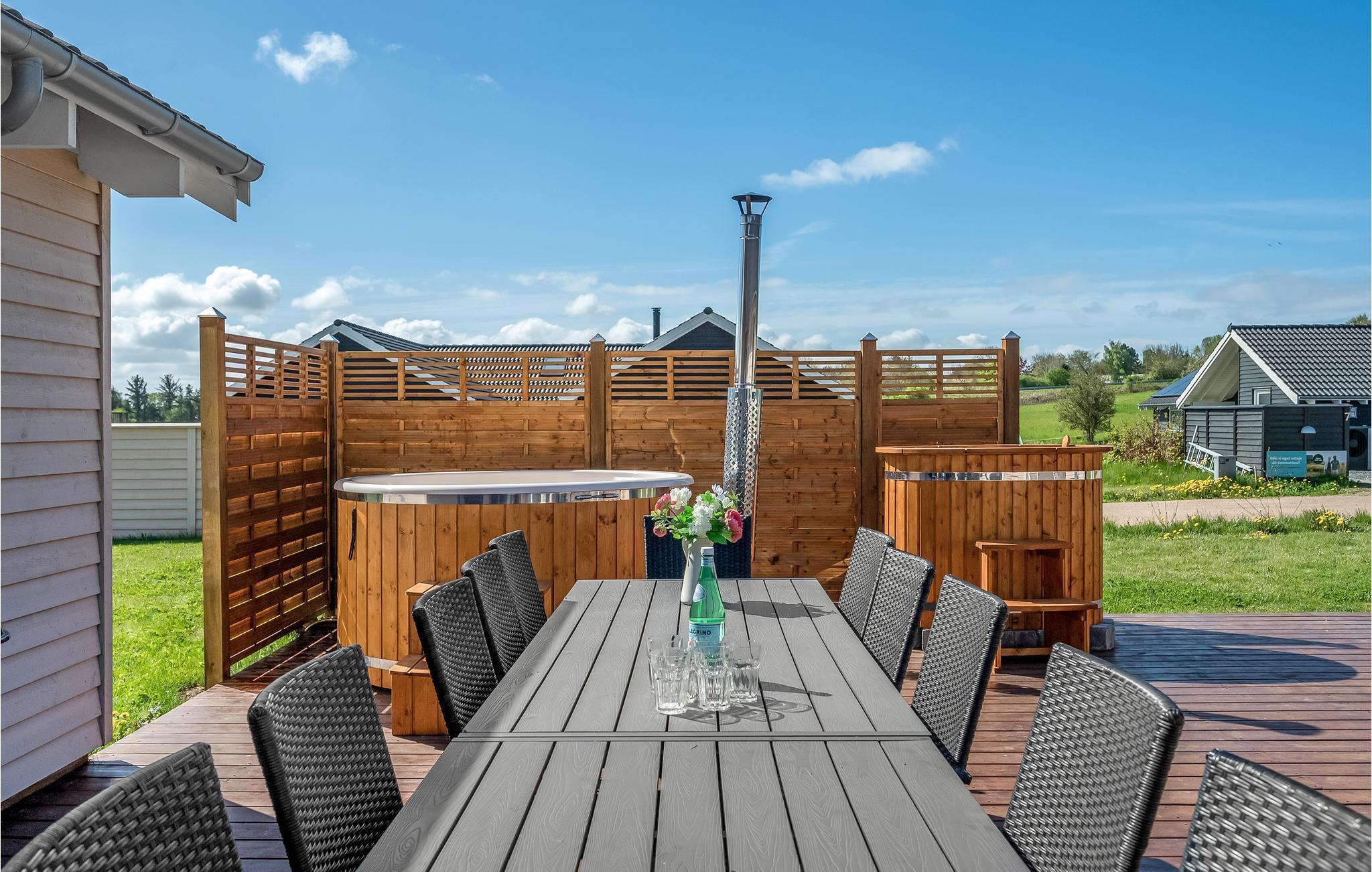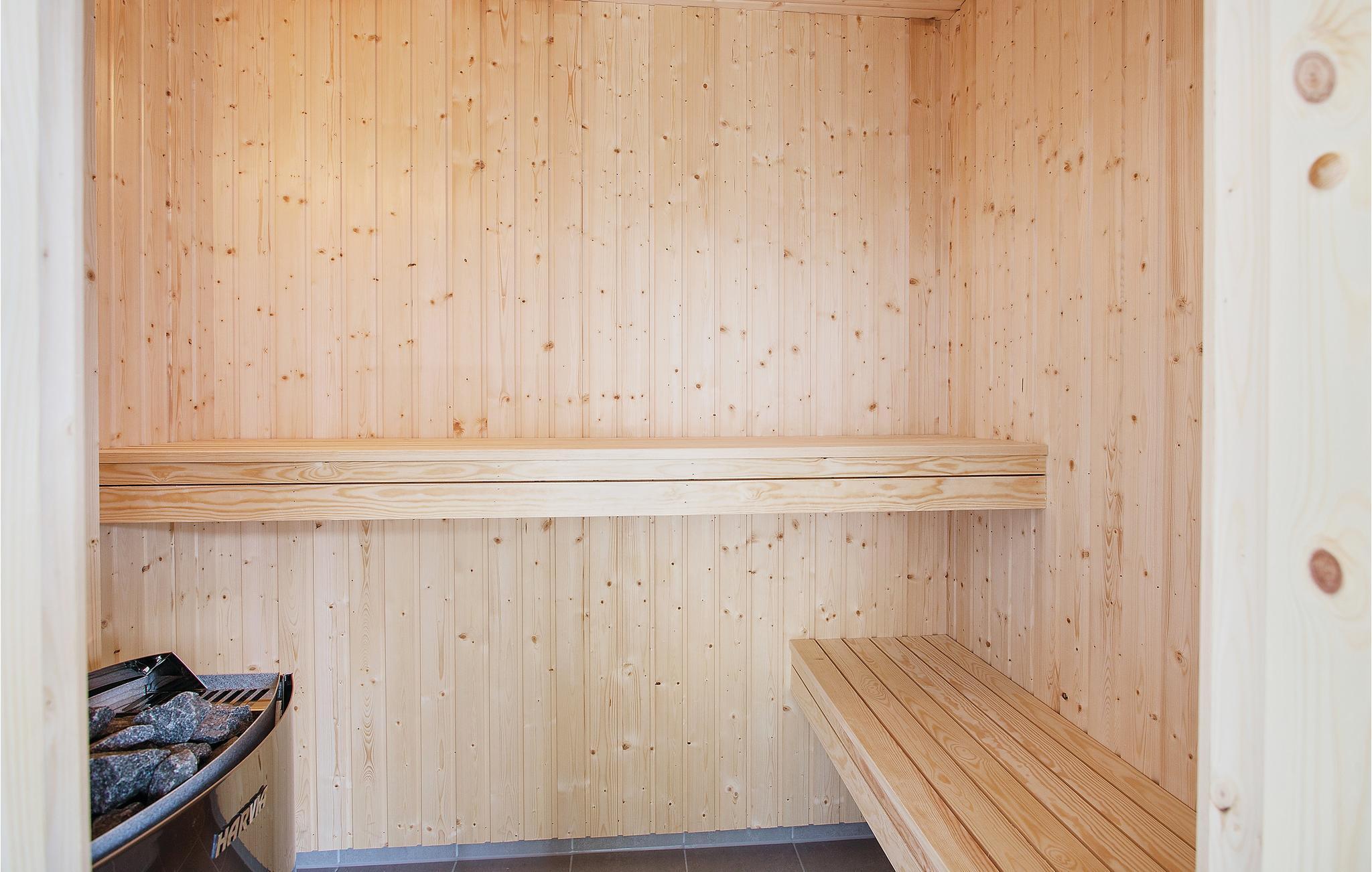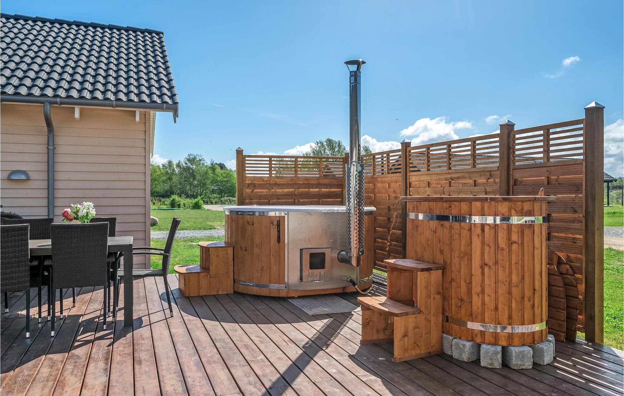 Udendørs byder naturgrunden også på mange muligheder for aktiviteter og leg. Her er gynger, legetårn med rutsjebane og sandkasse. Terrassen er veludstyret med lækre havemøbler og solsenge. Udenfor finder I også vildmarksbad og koldtvandskar, som inviterer til forfriskende afslapning i det fri.