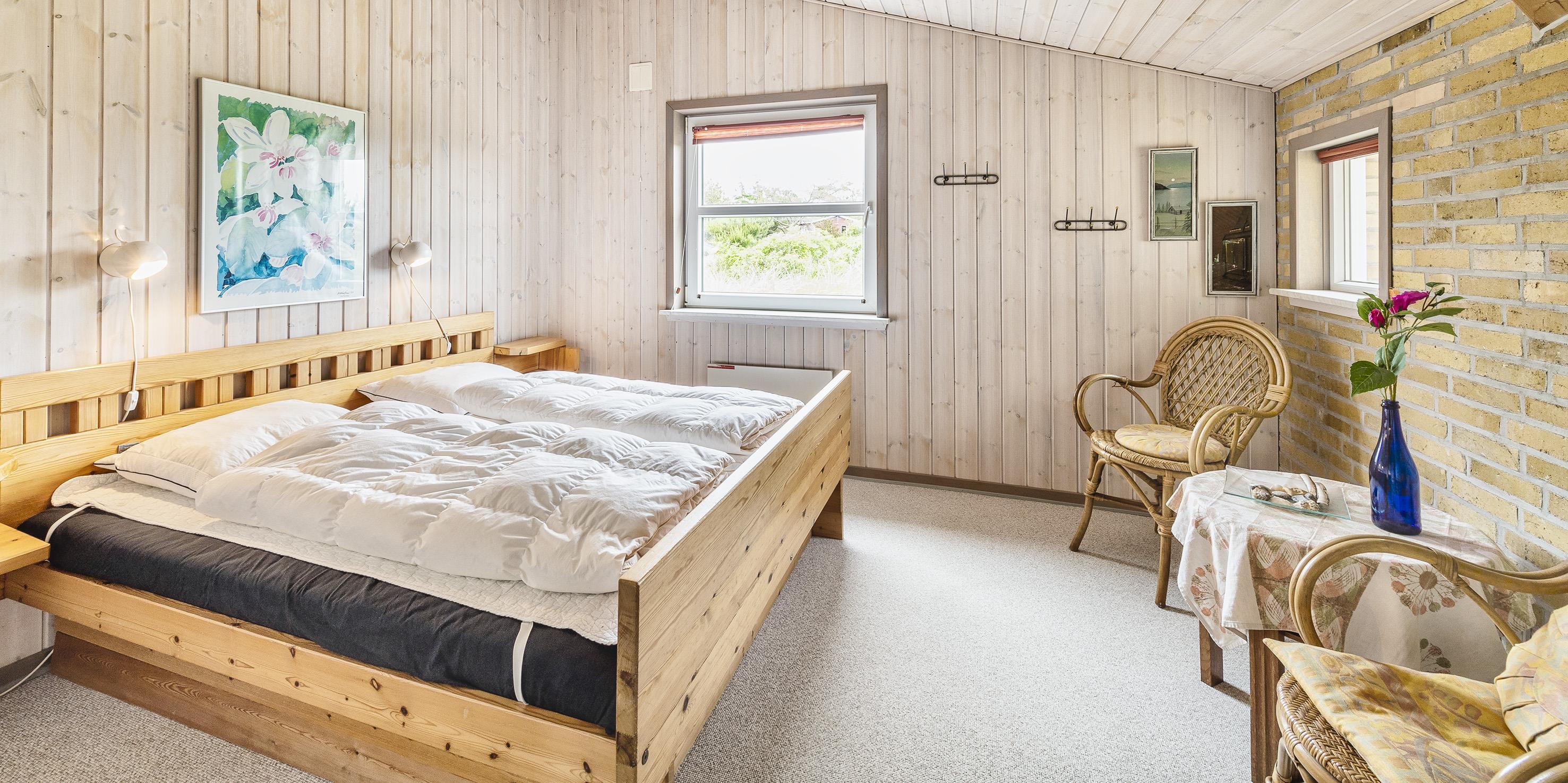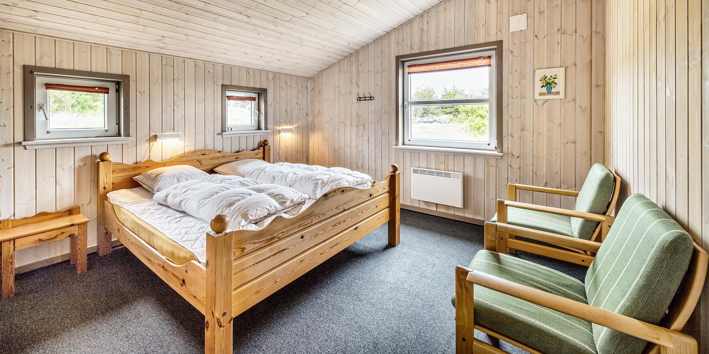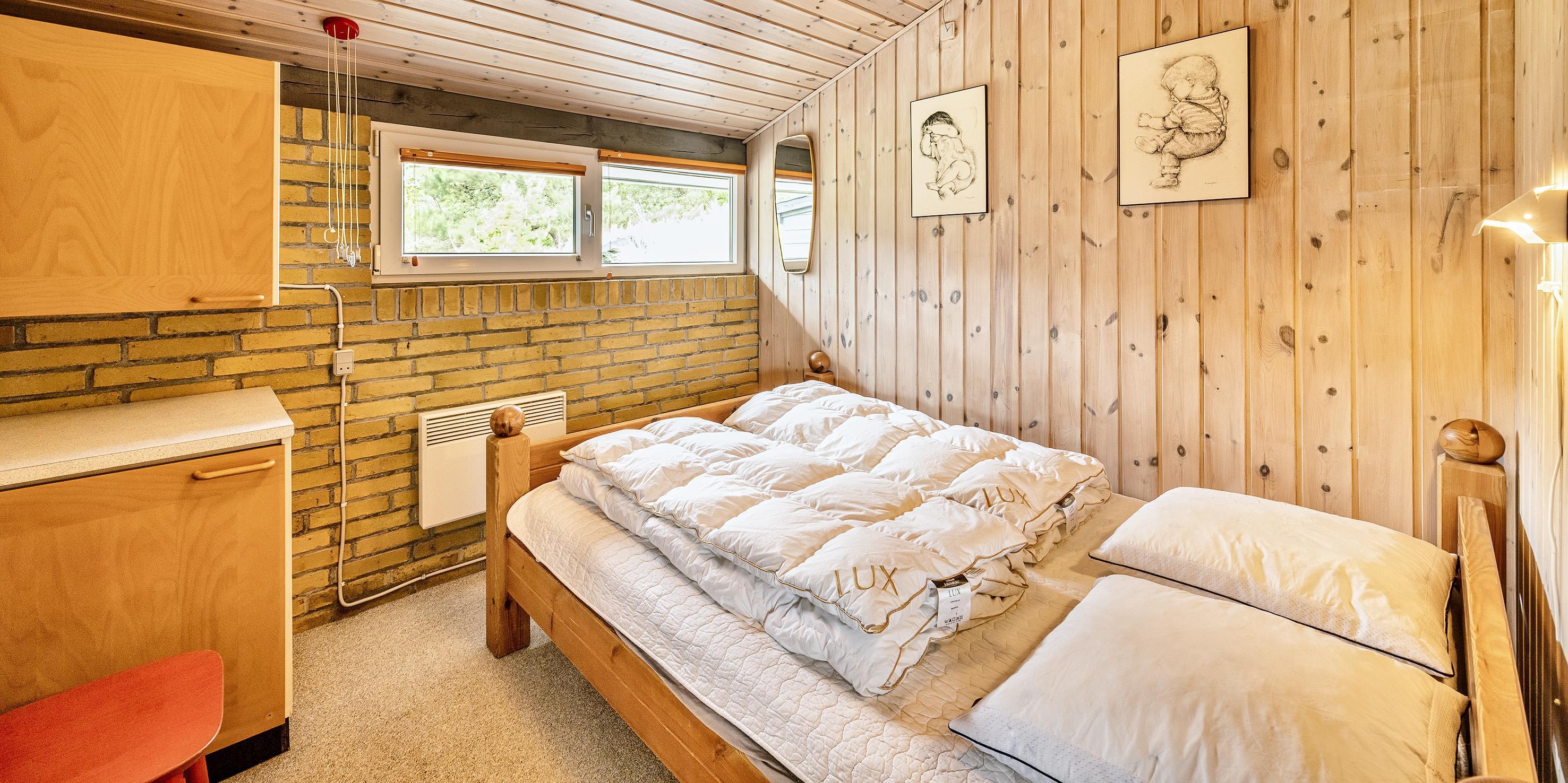 4 soveværelser - 3 soveværelser med dobbeltseng 180x200 cm. 1 med 2 enkeltsenge (á 90x200 cm) og en køjeseng.
