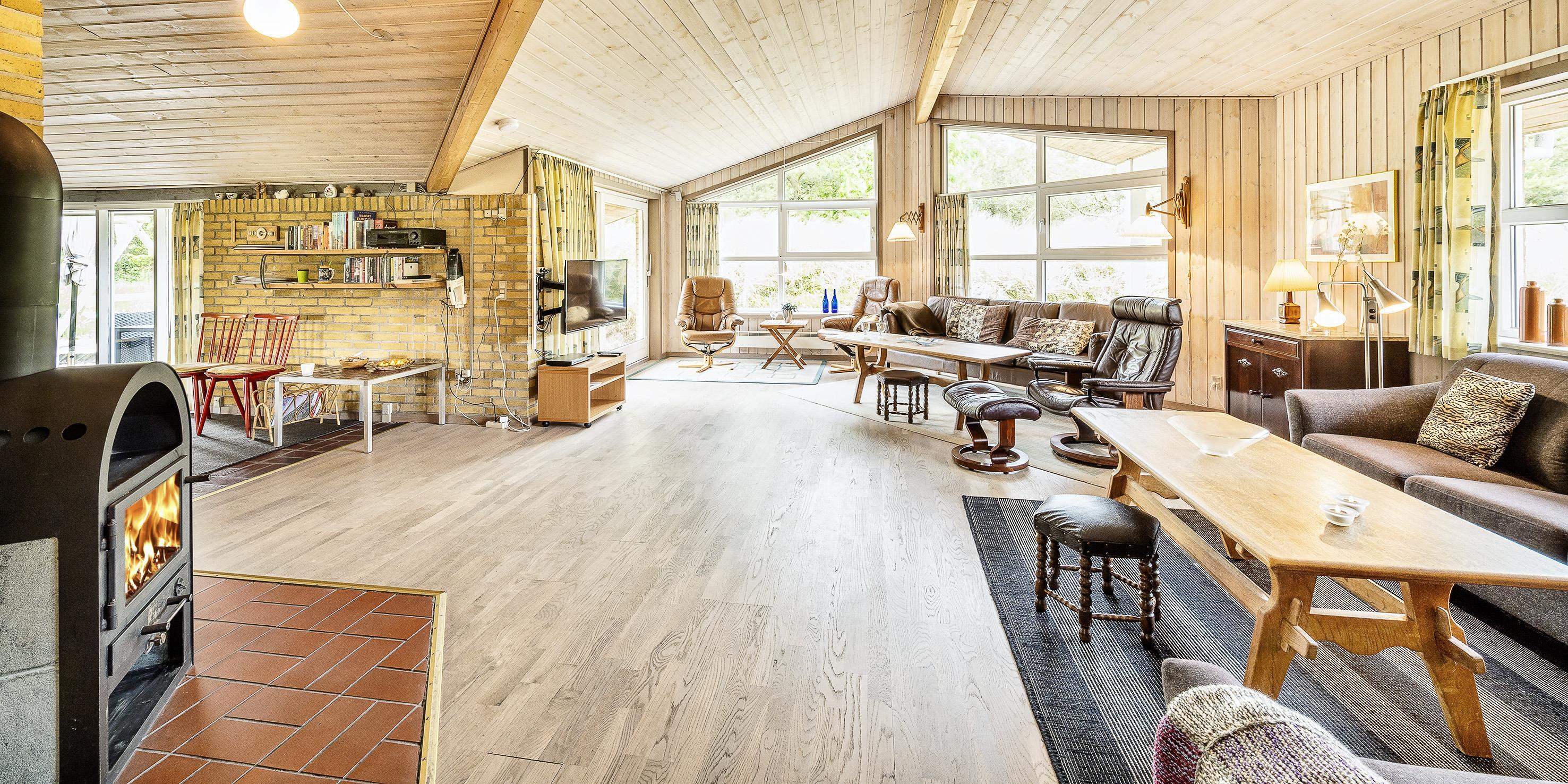 Smagfuldt sommerhus til 8 personer, ca. 400 meter fra stranden. Stor stue med 2 brændeovne, fjernsyn og parabol (Stofa sommerhuspakke) samt åbent køkken med opvaskemaskine, mikroovn og fryser. Badeværelse med bruser/wc og sauna og gulvarme. Gæstetoilet. Vaskemaskine og tørretumbler. 4 soveværelser: DS + DS + DS + 3S. Trådløs internetadgang. Husdyr er ikke tilladt! Varmepumpe. Privat eloplader til elbiler. Terrasse og carport. Gynge og sandkasse. Adgang til Oksbøl badeland og fitness i Vejers/Blåvand i 2026. Rygning er ikke tilladt. Byggeår 1969, renoveret 2002.