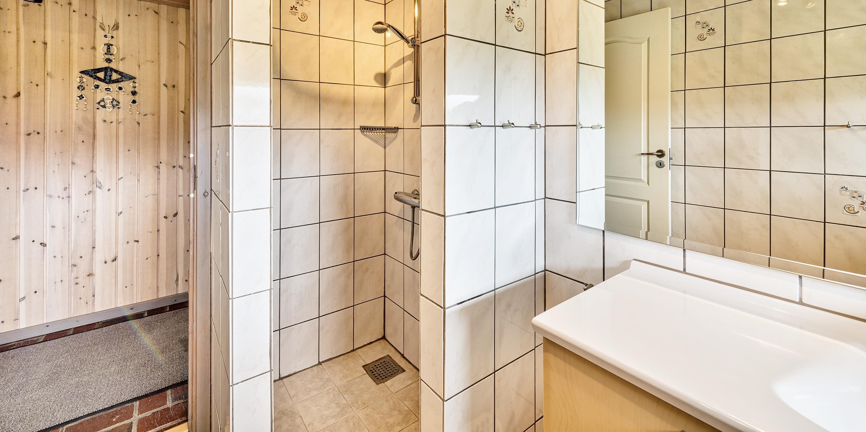 Badeværelse med bruser og vask
