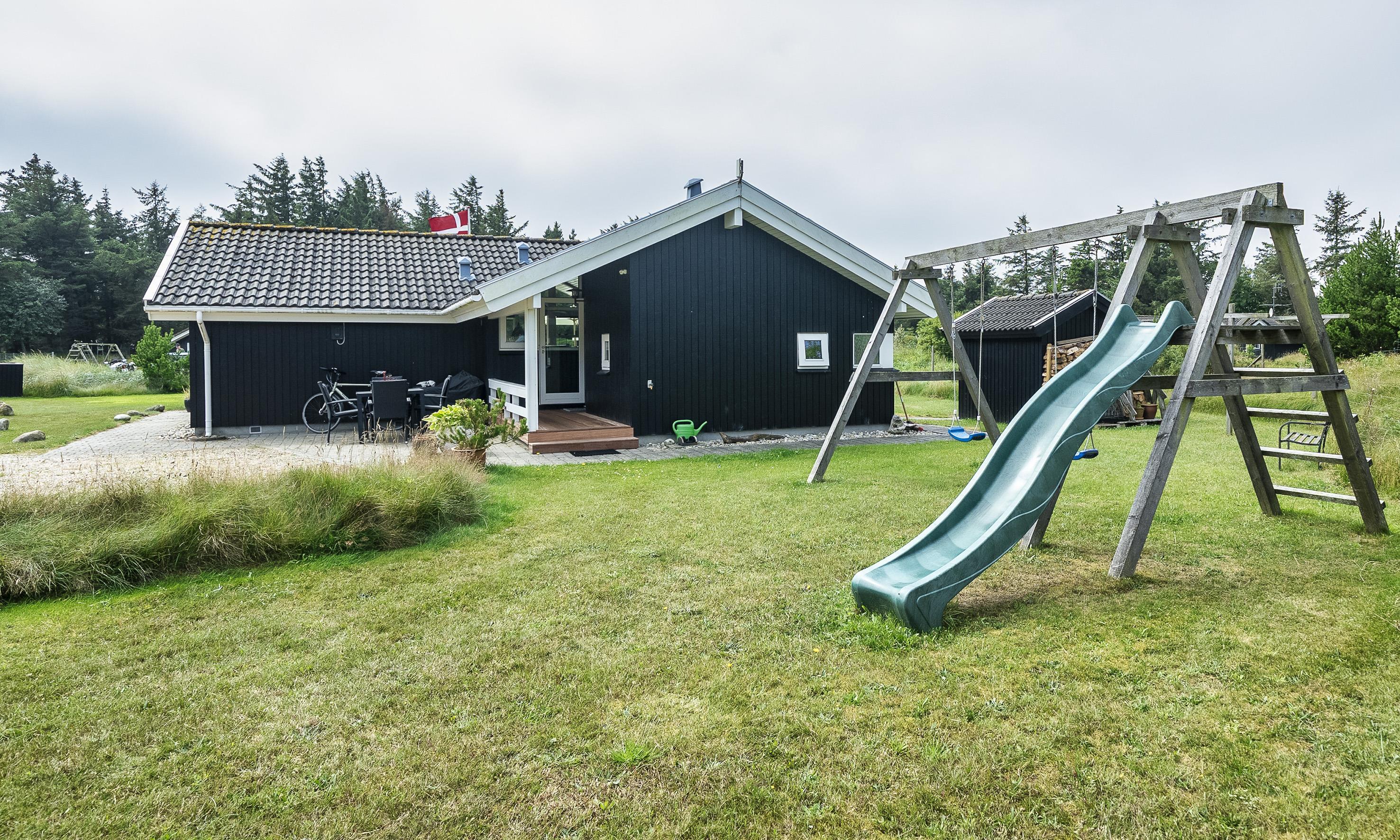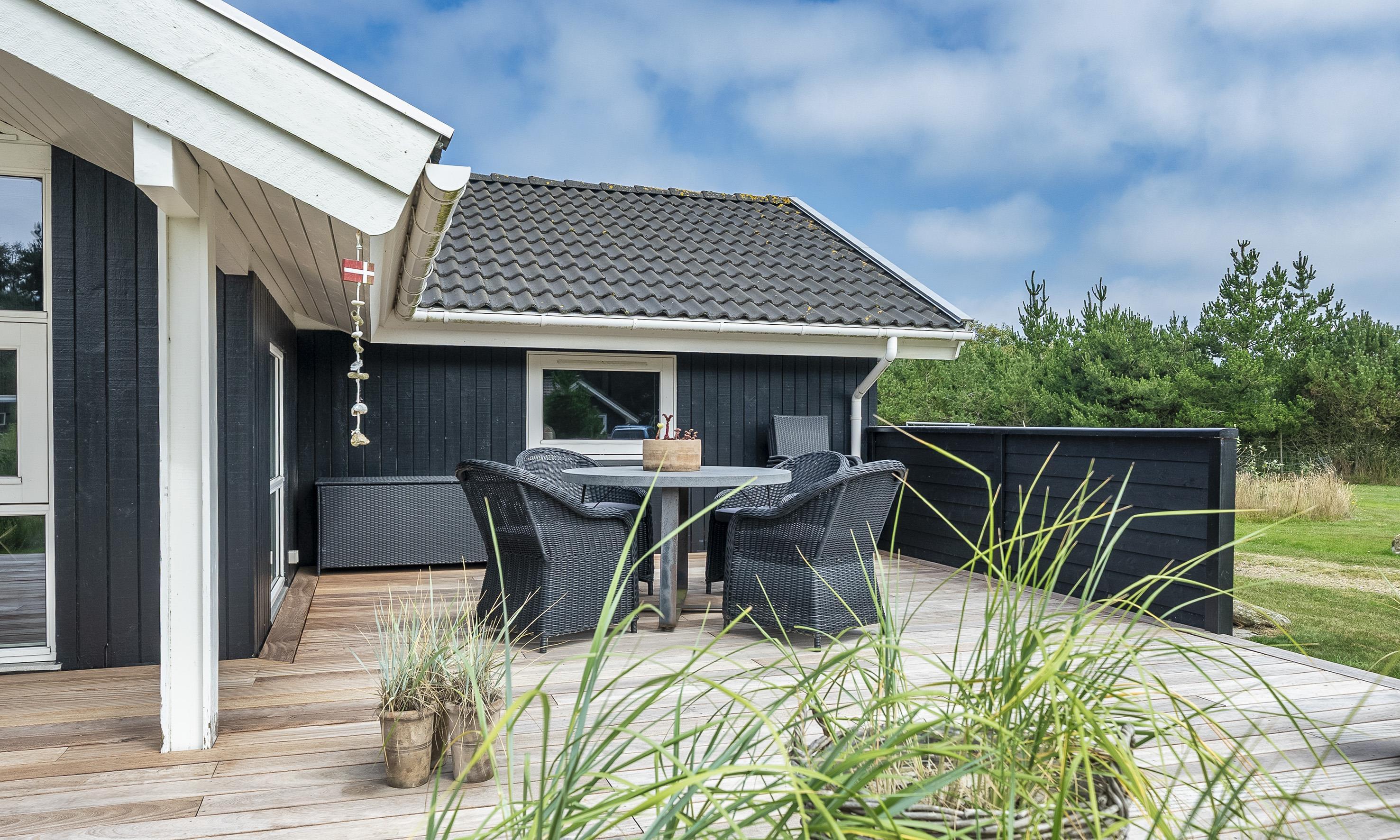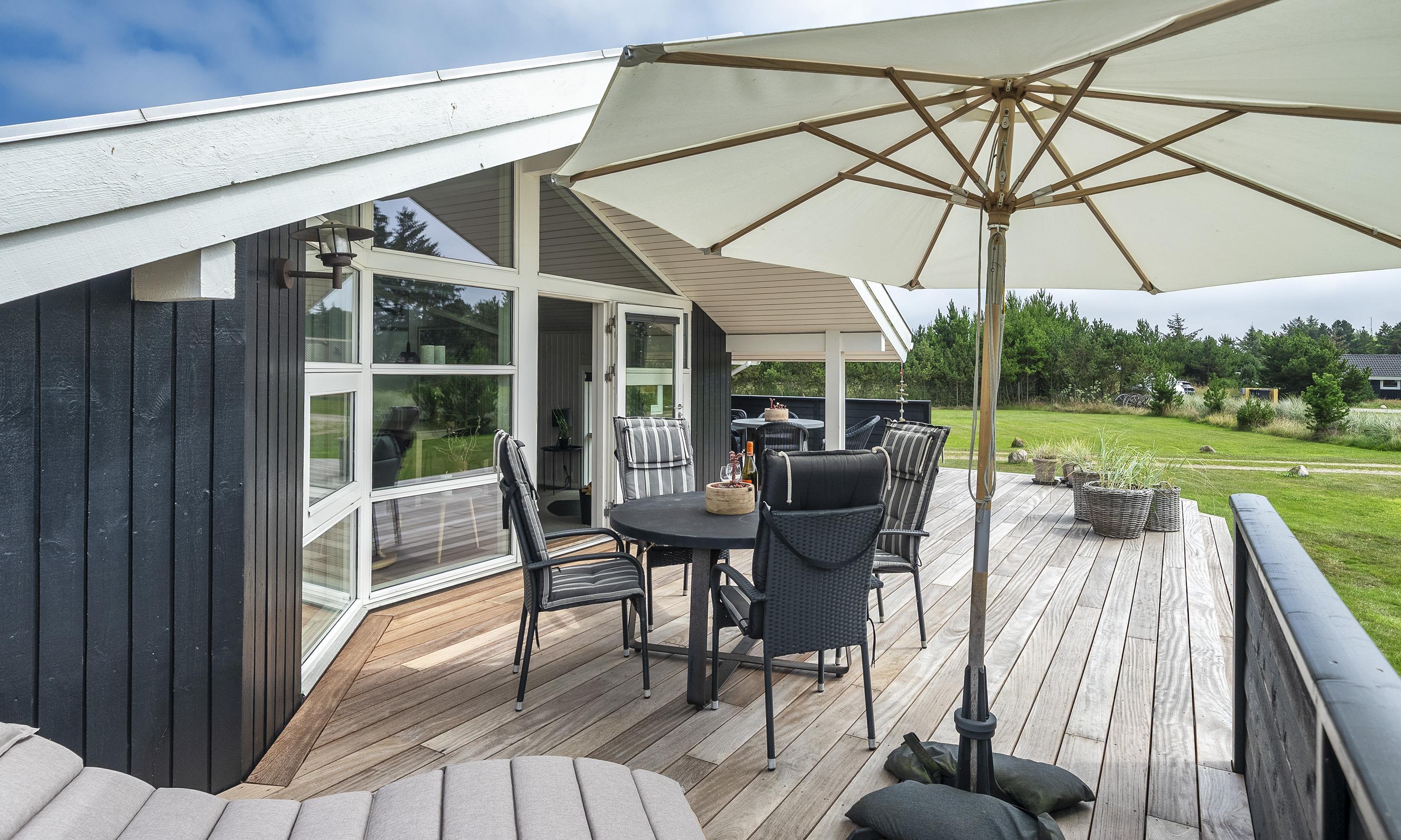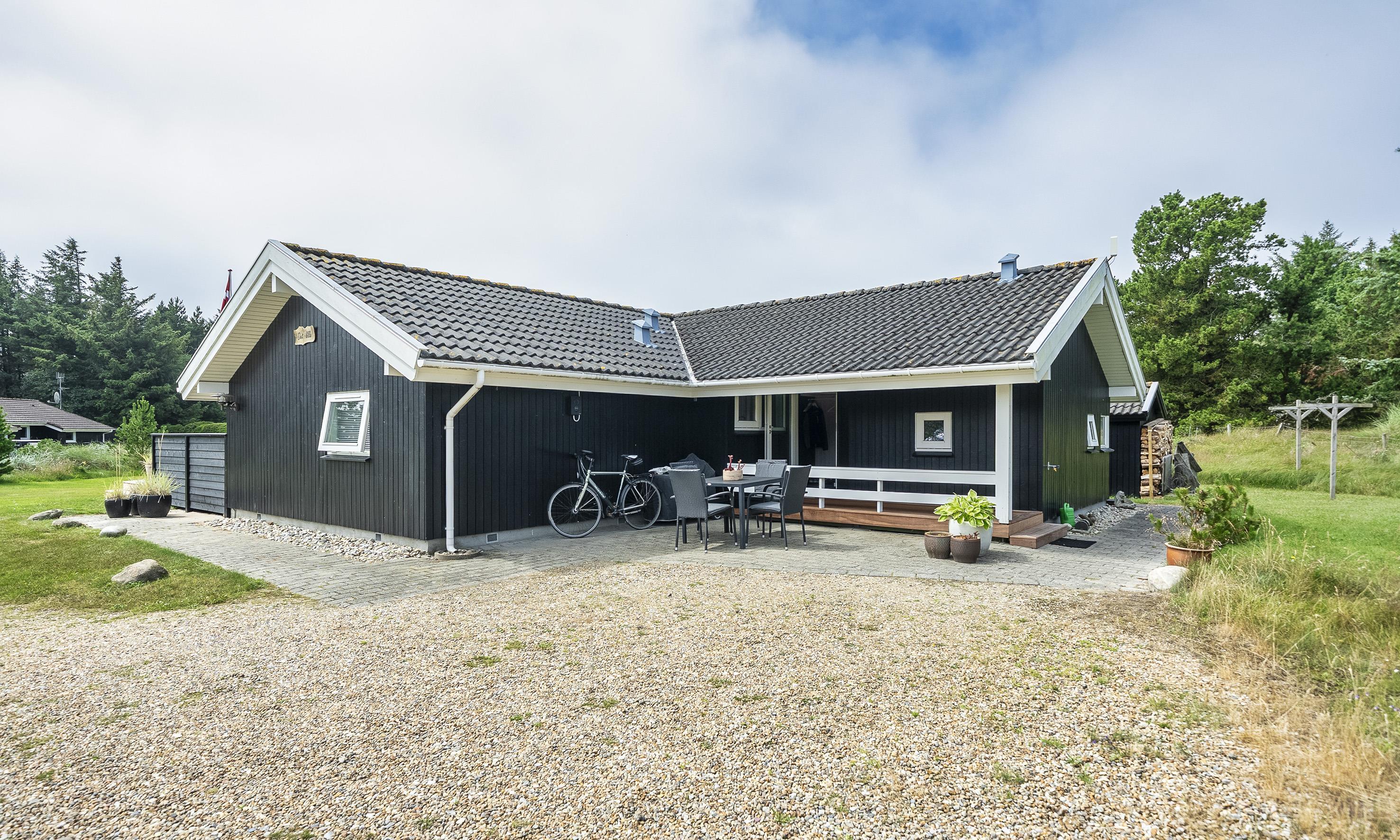 Smagfuldt sommerhus til 6 personer, beliggende på stor naturskøn grund, ca. 1.500 meter fra stranden. Stue med brændeovn og fjernsyn. Der er mulighed for at hente musik og/eller film med egen abonnement over chrome cast. Radio. Endvidere er der parabol med udenlandske programmer. Nyt åbent køkken fra efterår 2020 med mikroovn, køl og frysekombination og opvaskemaskine. 3 soveværelser: DS + DS + 2S. Badeværelse med bruser/wc og spa. Gæstetoilet med bruser. Vaskemaskine og tørretumbler. Varmepumpe. Trådløs internet. Af hensyn til andre gæster bedes rygning foregå udenfor. Kun 1 hund tilladt. Gynge på grund. Adgang til Badeland og bowling i Varde 2026. For mere info spørg os på kontoret. Byggeår 2001. Ladestander til El-biler, Type 2.