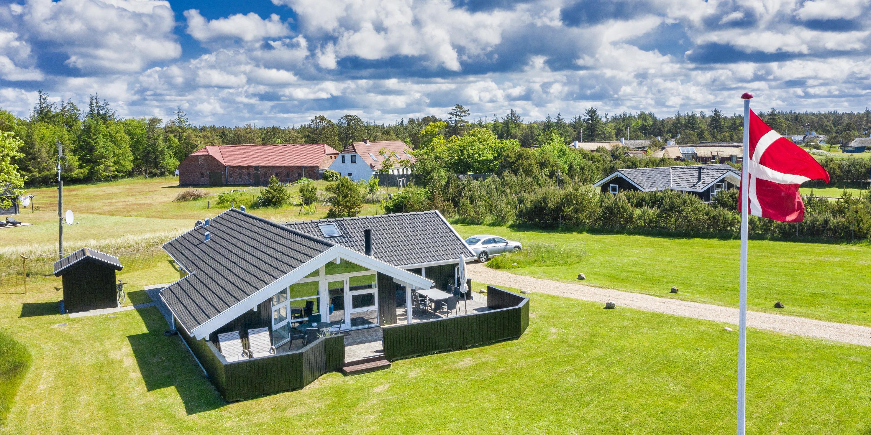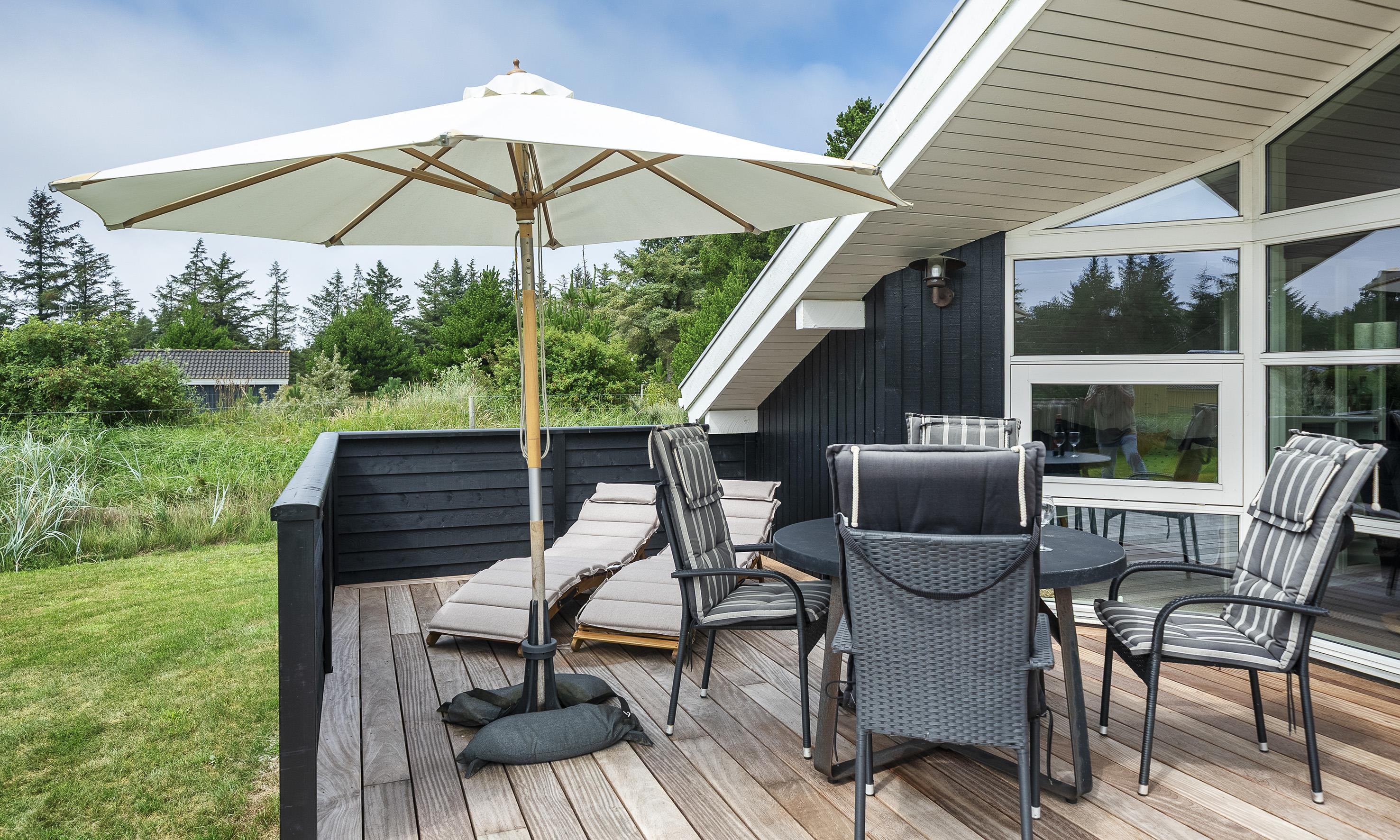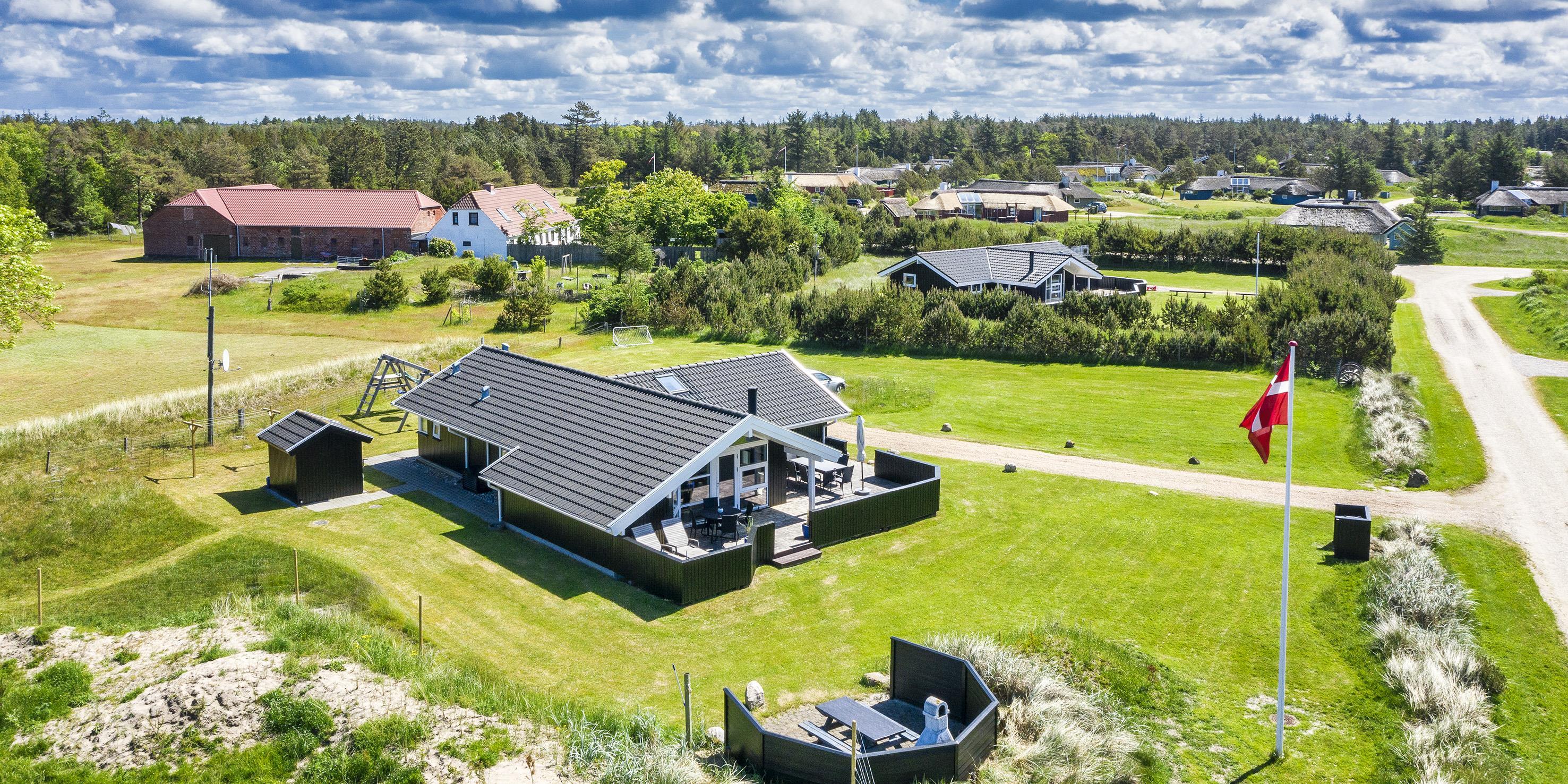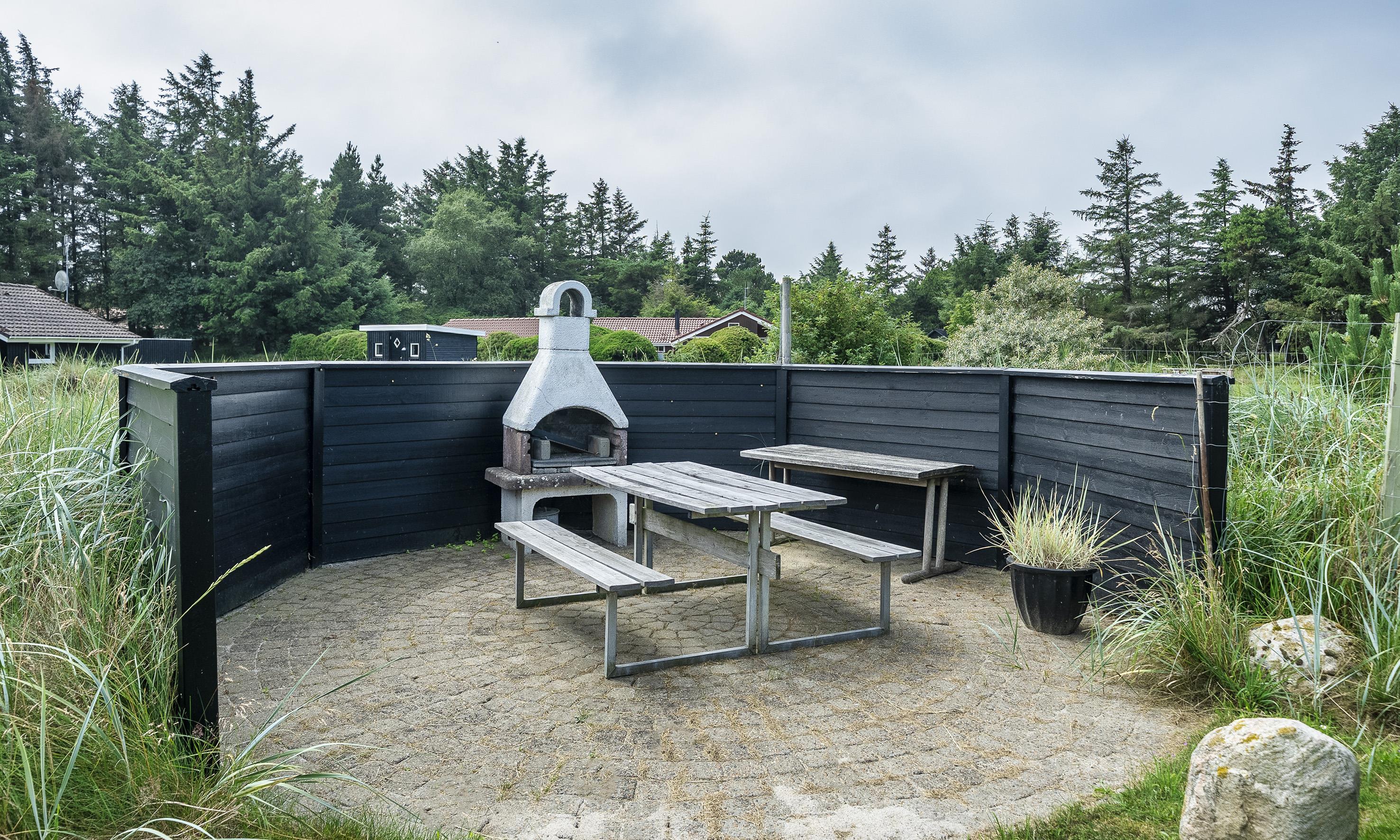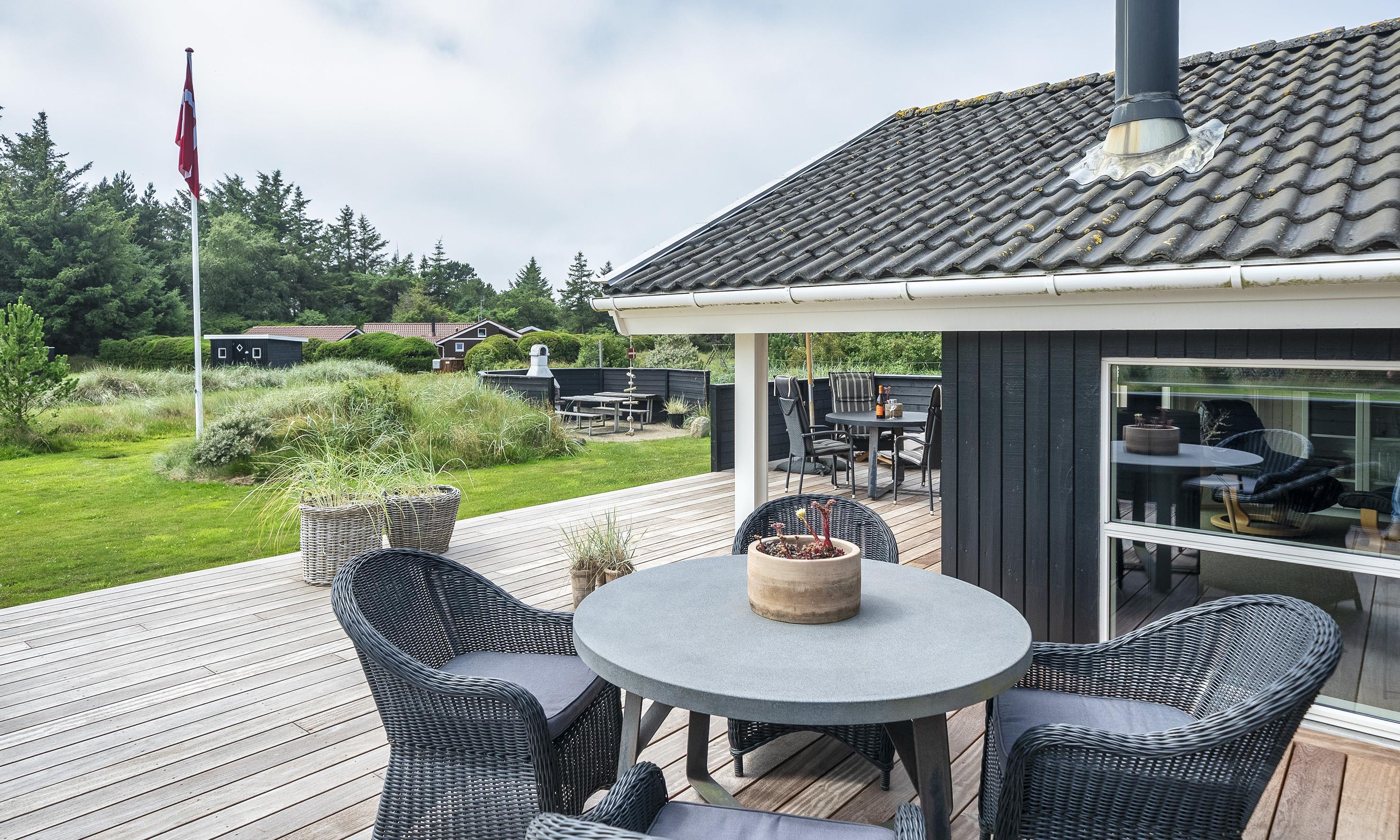 Smagfuldt sommerhus til 6 personer, beliggende på stor naturskøn grund, ca. 1.500 meter fra stranden. Stue med brændeovn og fjernsyn. Der er mulighed for at hente musik og/eller film med egen abonnement over chrome cast. Radio. Endvidere er der parabol med udenlandske programmer. Nyt åbent køkken fra efterår 2020 med mikroovn, køl og frysekombination og opvaskemaskine. 3 soveværelser: DS + DS + 2S. Badeværelse med bruser/wc og spa. Gæstetoilet med bruser. Vaskemaskine og tørretumbler. Varmepumpe. Trådløs internet. Af hensyn til andre gæster bedes rygning foregå udenfor. Kun 1 hund tilladt. Gynge på grund. Adgang til Badeland og bowling i Varde 2026. For mere info spørg os på kontoret. Byggeår 2001. Ladestander til El-biler, Type 2.