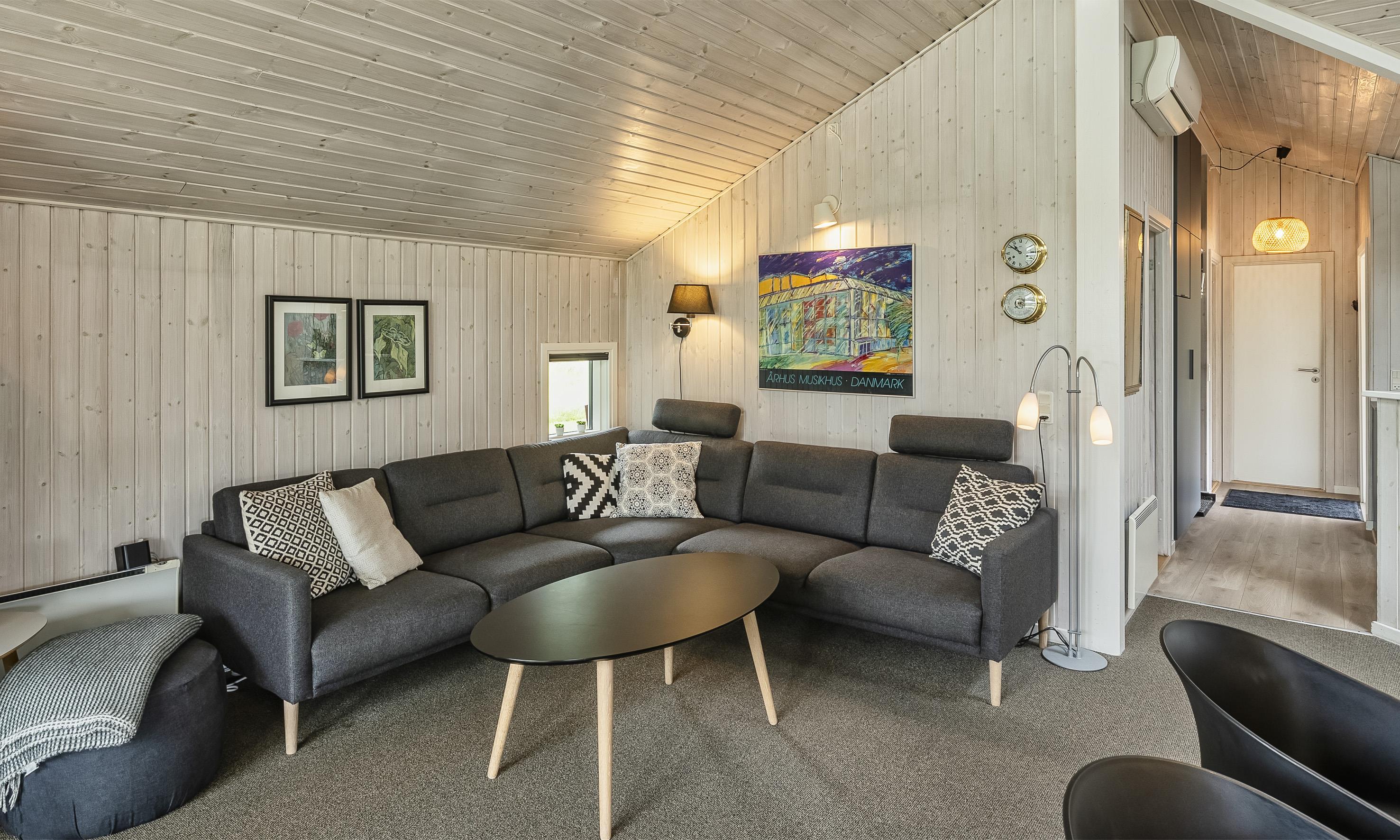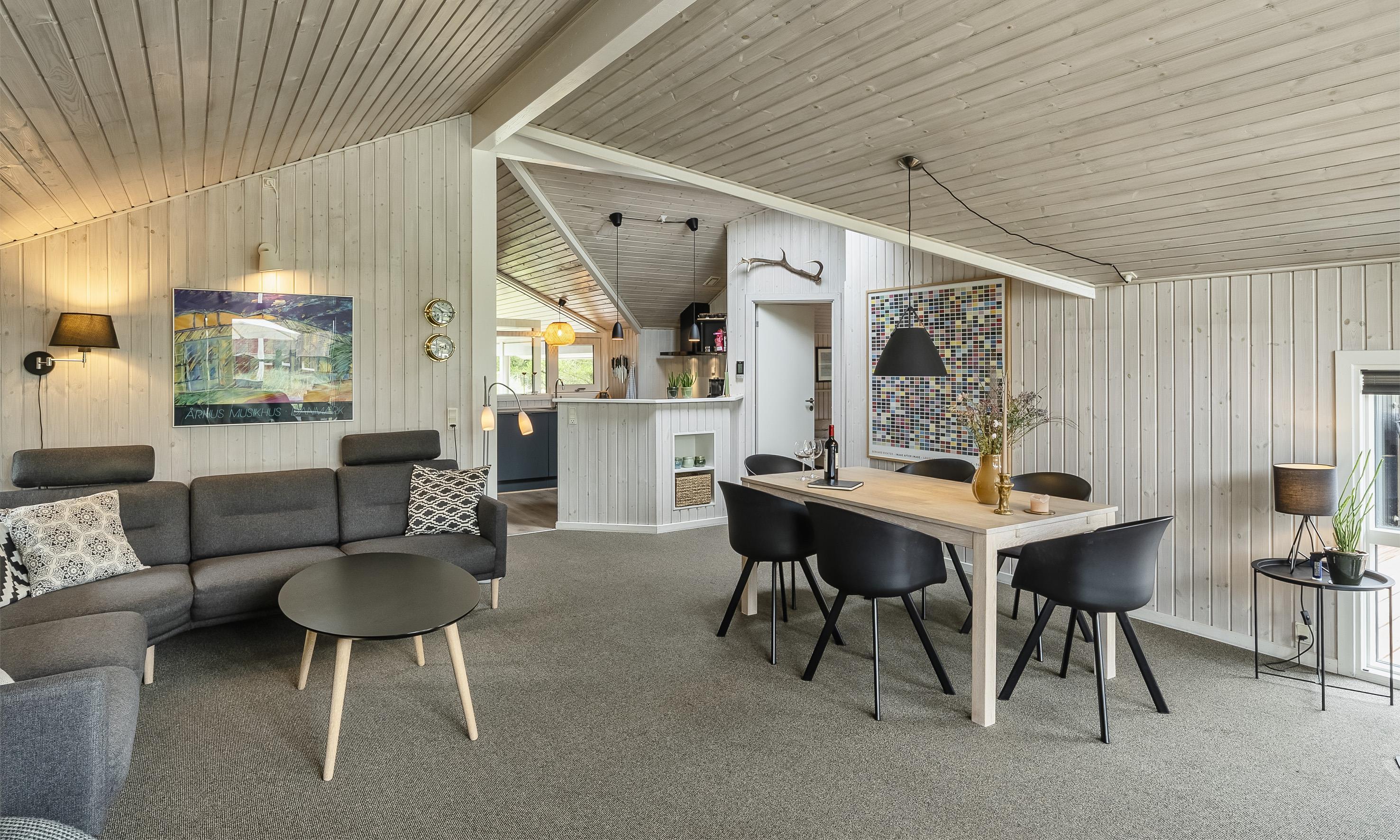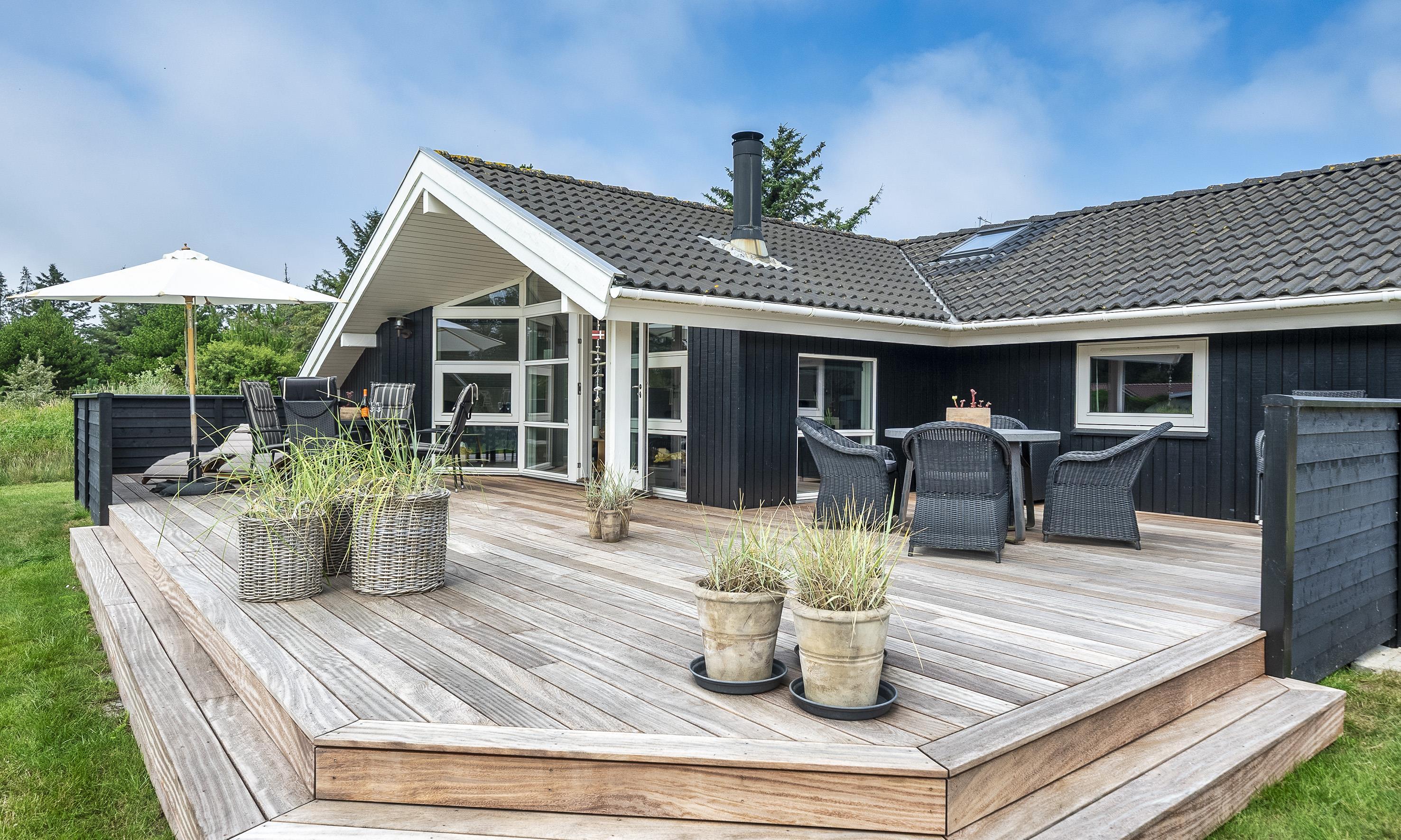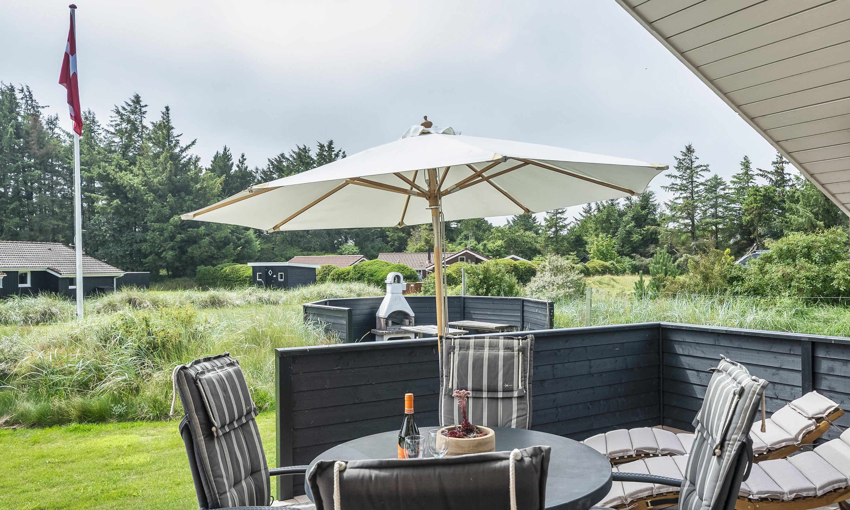 Smagfuldt sommerhus til 6 personer, beliggende på stor naturskøn grund, ca. 1.500 meter fra stranden. Stue med brændeovn og fjernsyn. Der er mulighed for at hente musik og/eller film med egen abonnement over chrome cast. Radio. Endvidere er der parabol med udenlandske programmer. Nyt åbent køkken fra efterår 2020 med mikroovn, køl og frysekombination og opvaskemaskine. 3 soveværelser: DS + DS + 2S. Badeværelse med bruser/wc og spa. Gæstetoilet med bruser. Vaskemaskine og tørretumbler. Varmepumpe. Trådløs internet. Af hensyn til andre gæster bedes rygning foregå udenfor. Kun 1 hund tilladt. Gynge på grund. Adgang til Badeland og bowling i Varde 2026. For mere info spørg os på kontoret. Byggeår 2001. Ladestander til El-biler, Type 2.
