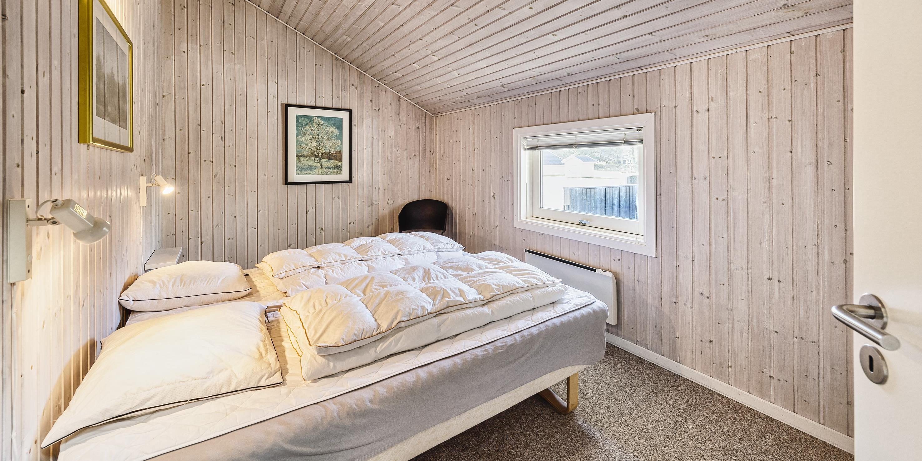 3 soveværelser. 2 med dobbeltseng 180x200 cm. 1 med 2 enkeltsenge (á 90x200 cm)