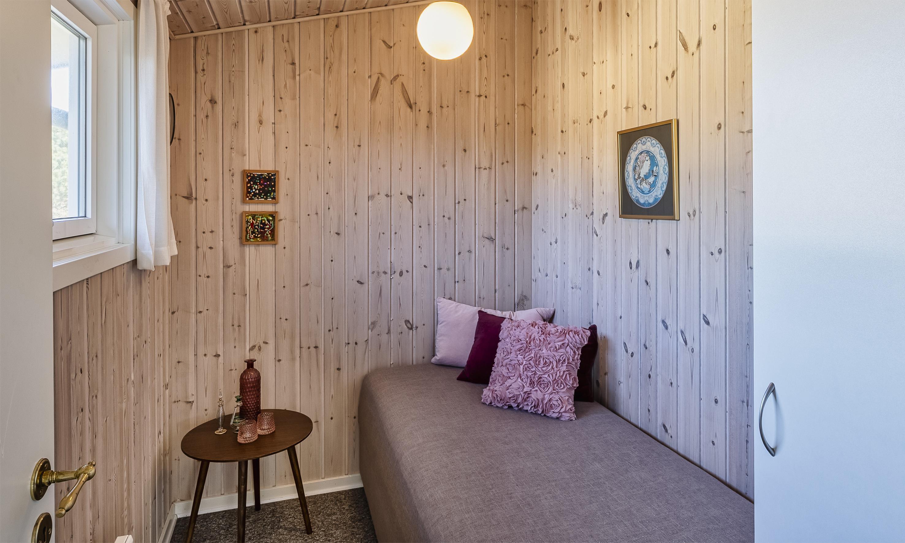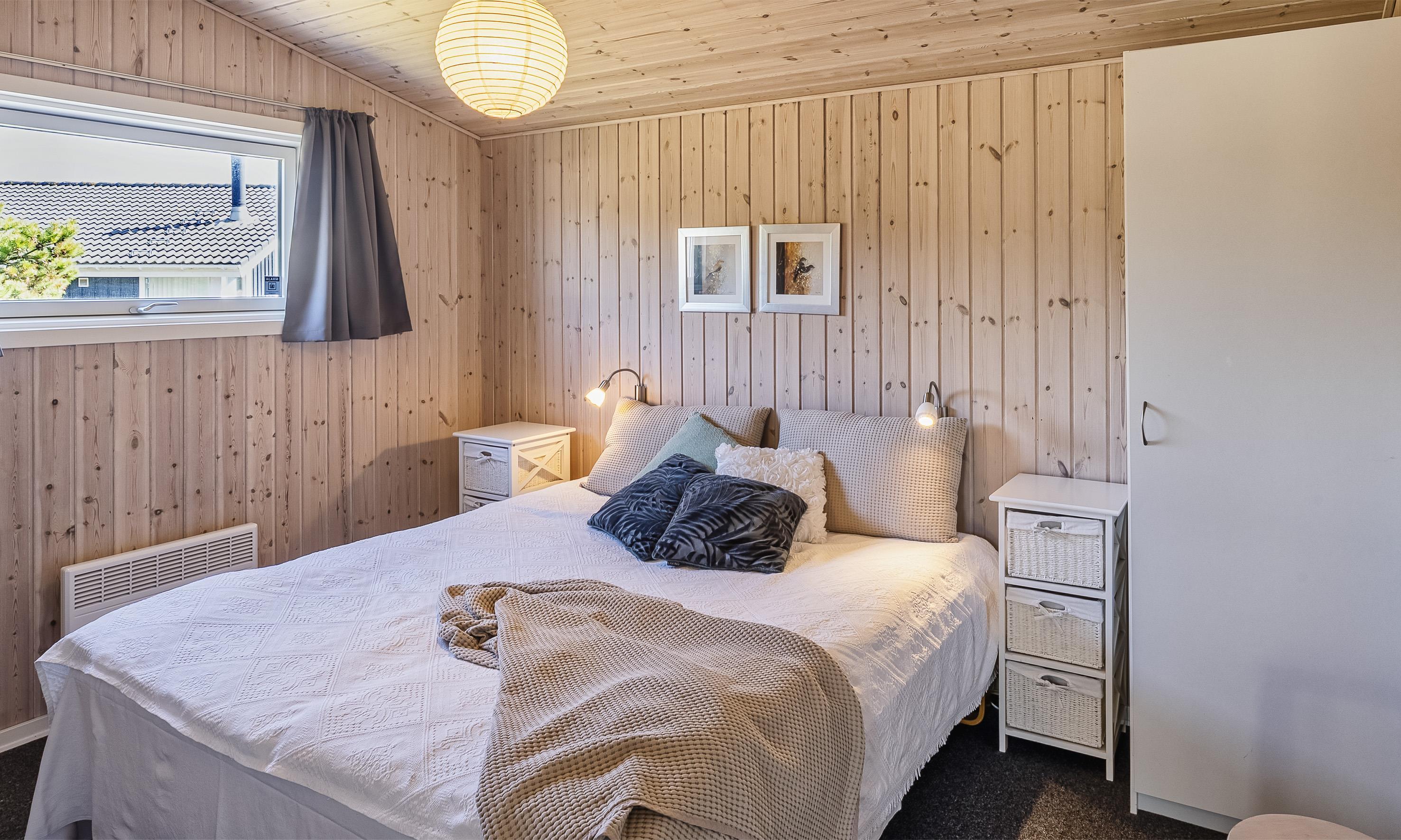 Sommerhuset byder på fire soveværelser. Der er to soveværelser med dobbeltsenge og to soveværelser med enkeltsenge, hvilket giver komfortabel soveplads til alle. (DS + DS + ES + ES)