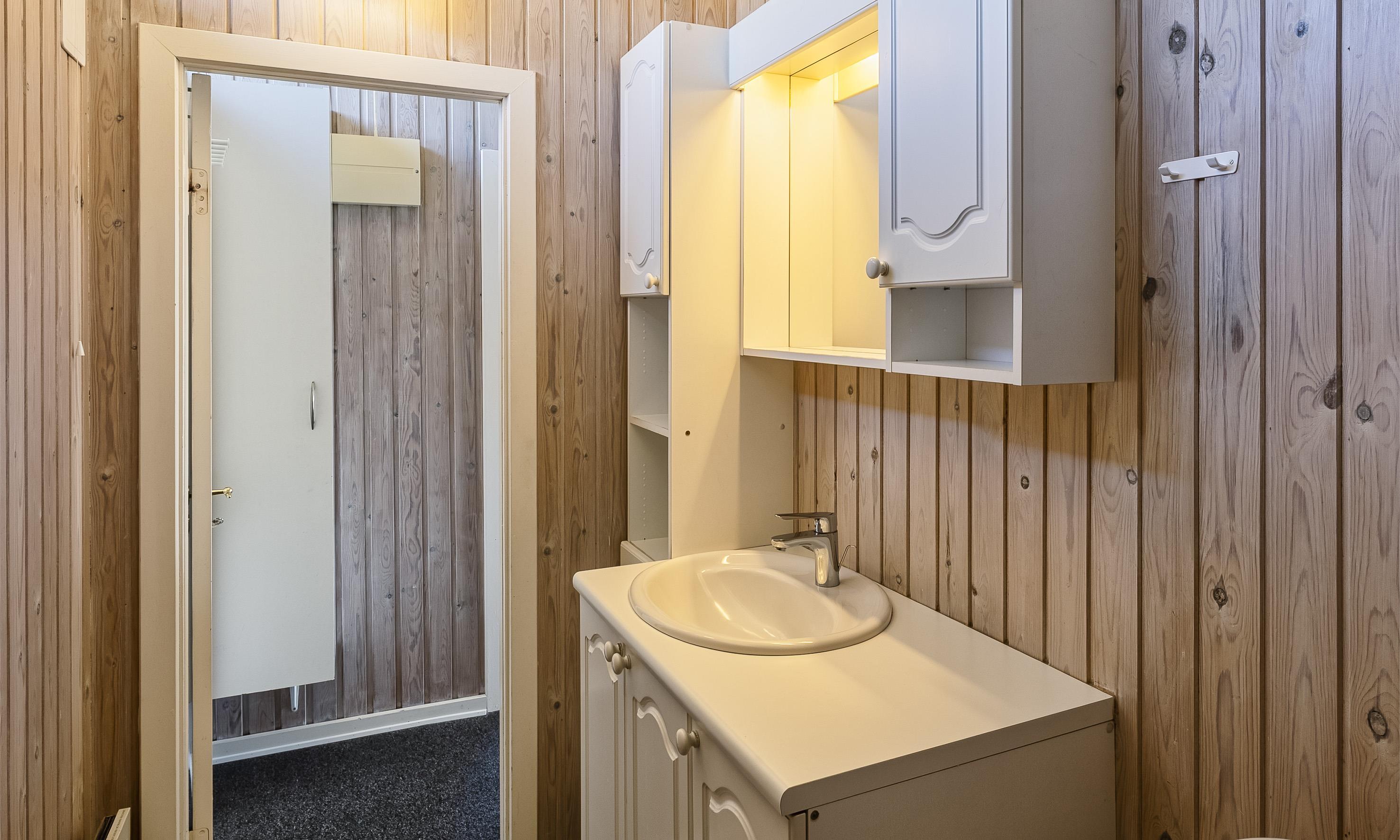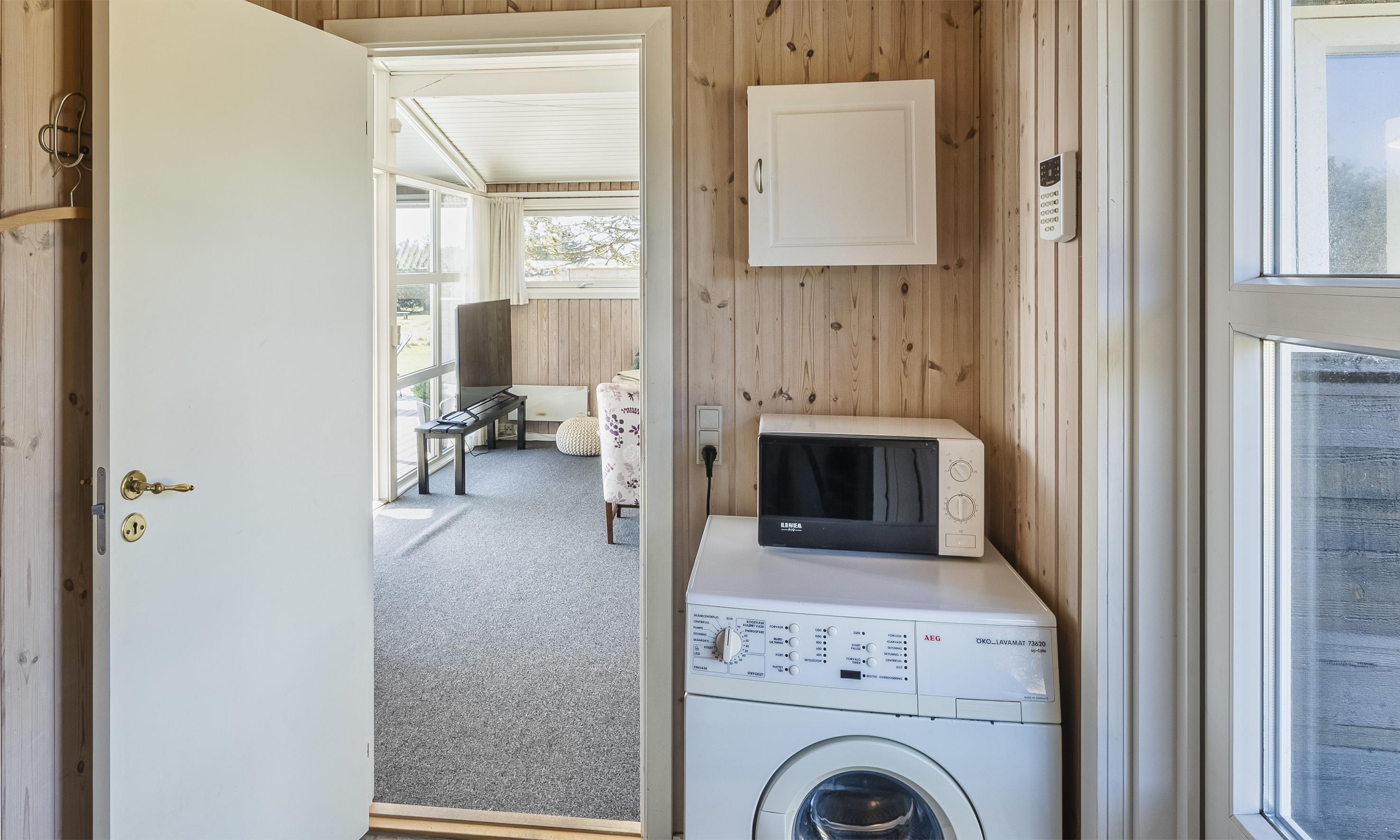 Det veludstyrede køkken gør madlavning til en leg med el-komfur, køle-fryseskab, mikroovn, kaffemaskine, opvaskemaskine og vaskemaskine. Badeværelset har toilet, håndvask og en bruseniche.