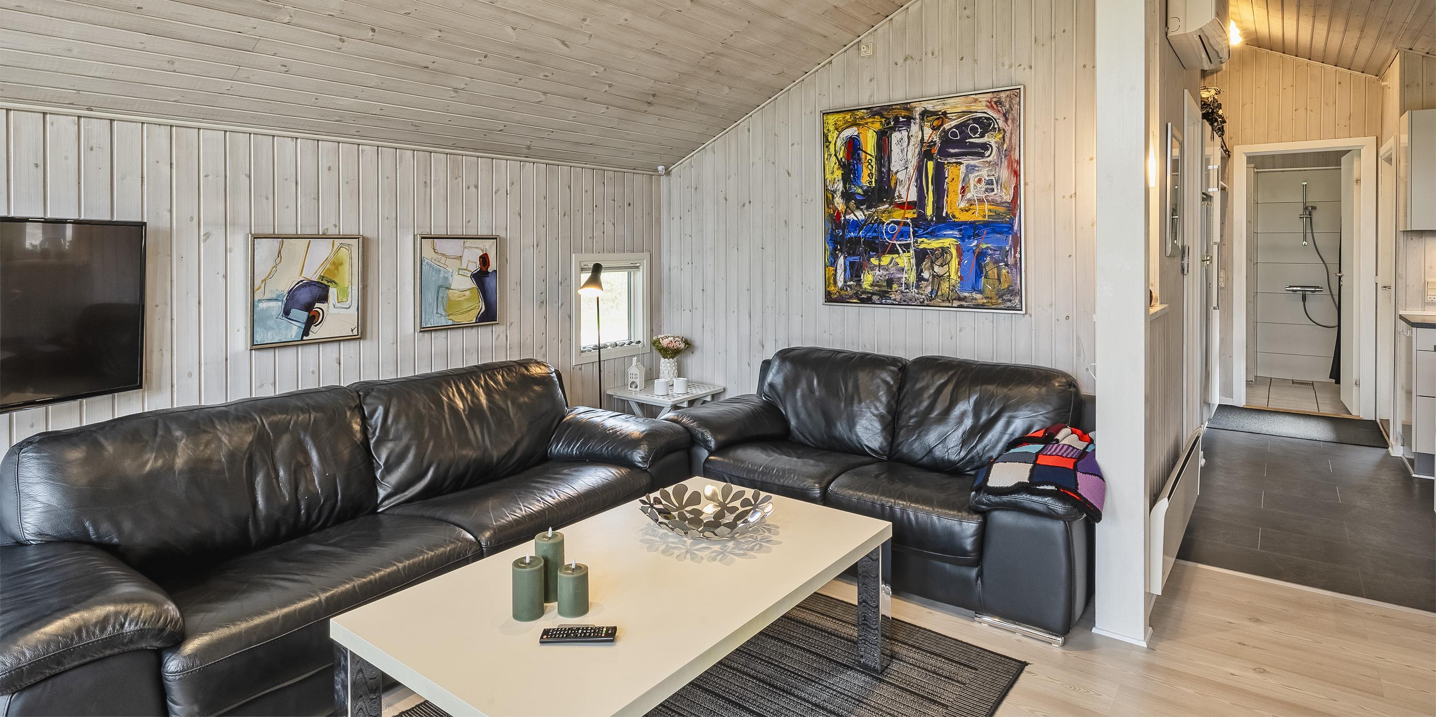 3 soveværelser. 2 med dobbeltseng 180x200 cm. 1 med 2 enkeltsenge (á 90x200 cm)