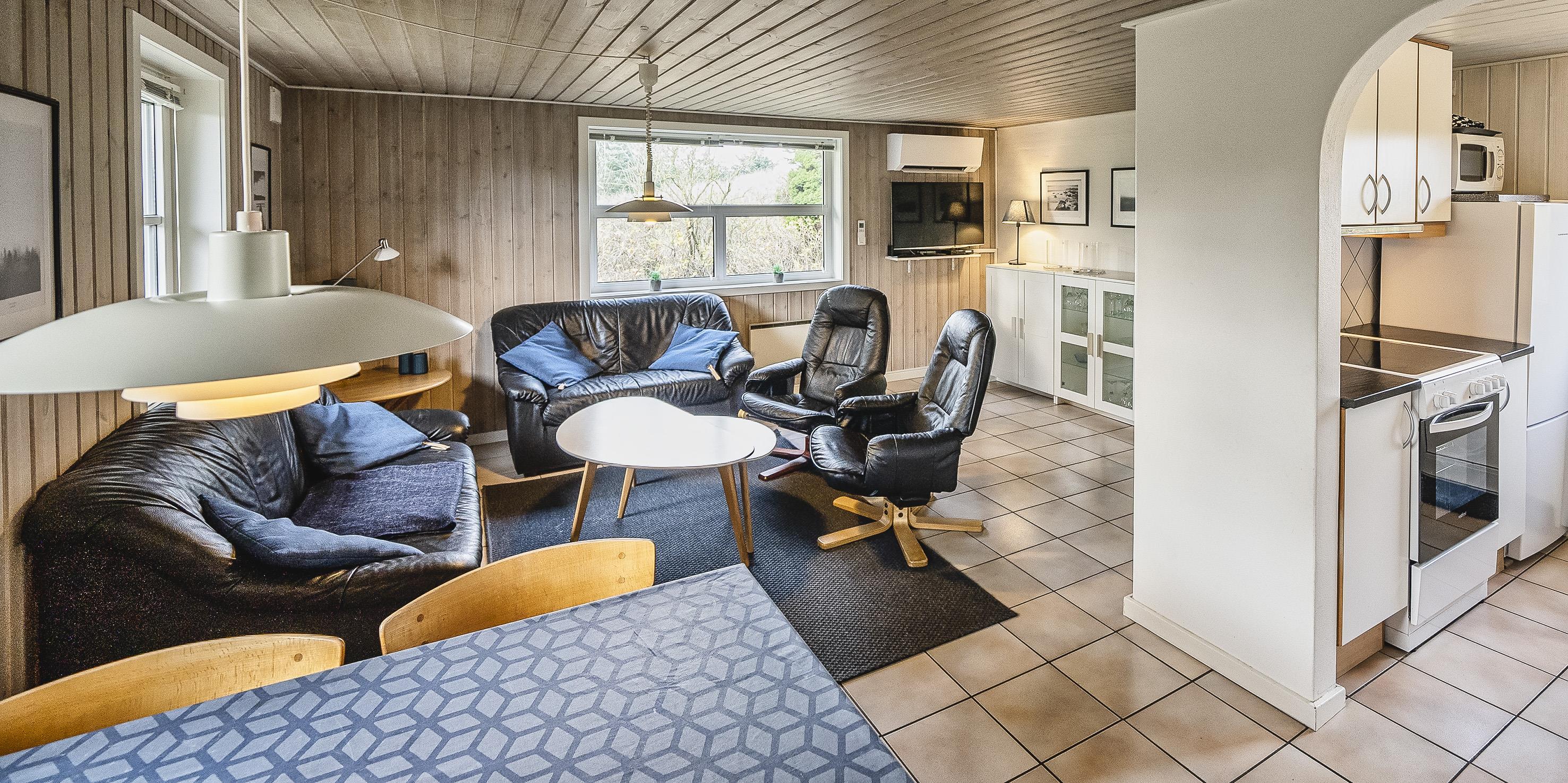 Hyggeligt sommerhus til 6 personer, ca. 800 meter fra stranden. Stue med brændeovn, varmepumpe, fjernsyn og parabol (ingen danske programmer). Køkken med mikroovn, køle-/fryseskab og opvaskemaskine. Badeværelse med bruser/wc og gulvvarme. Sauna, vaskemaskine og tørretumbler. 3 soveværelser: DS + 2S + 2S. 1 soveværelse med 1 dobbeltseng, 1 soveværelse med 2 enkeltsenge og 1 soveværelse med 1 køjeseng. 1 husdyr er tilladt. Terrasse. Trådløs Internet. Rygning er ikke tilladt. Byggeår 1961.