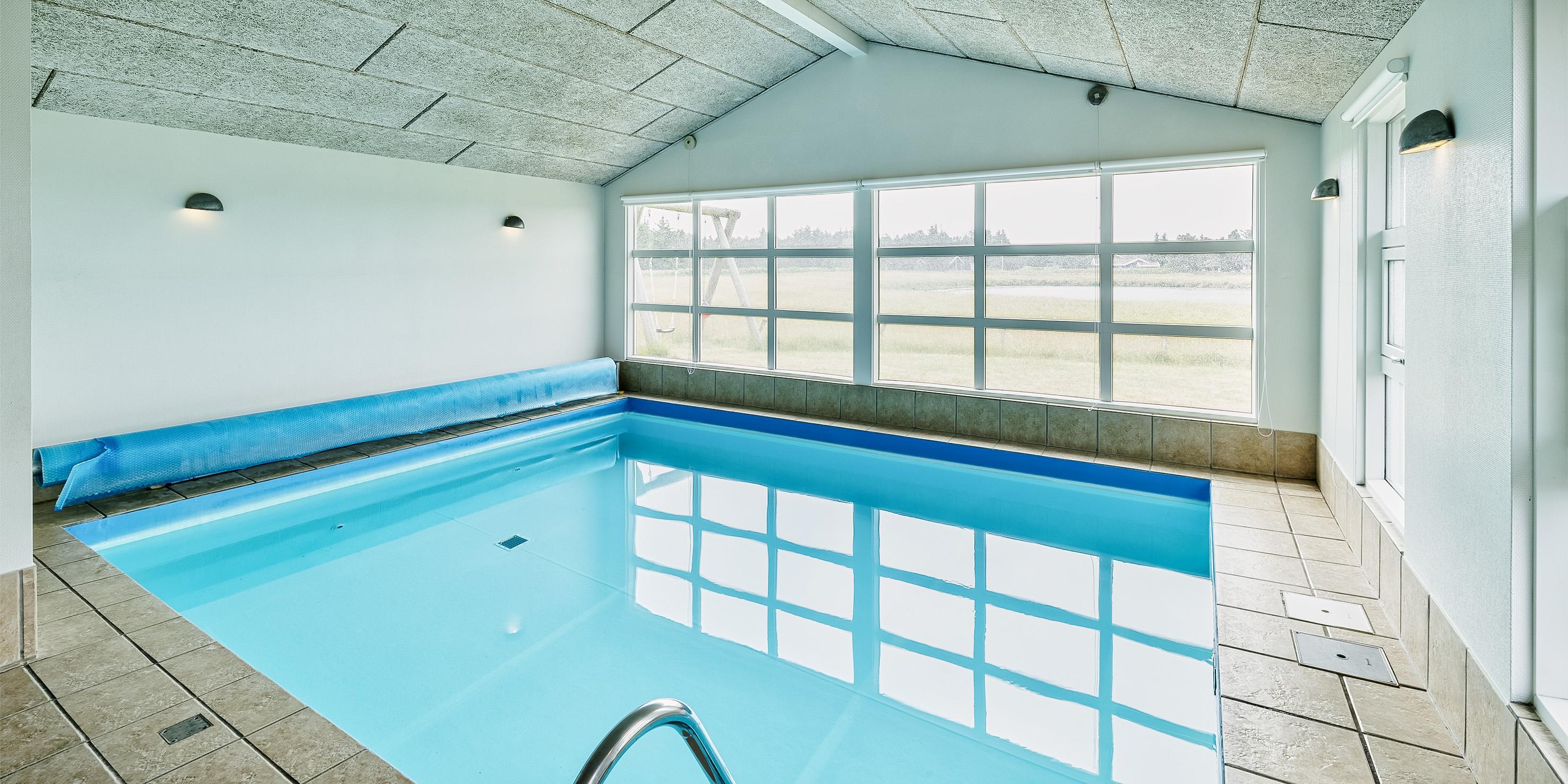 Dejligt poolhus til 8 personer, ca. 1.100 meter fra stranden, beliggende på 2.100 m2 stor grund med udsigt til naturskøn sø.