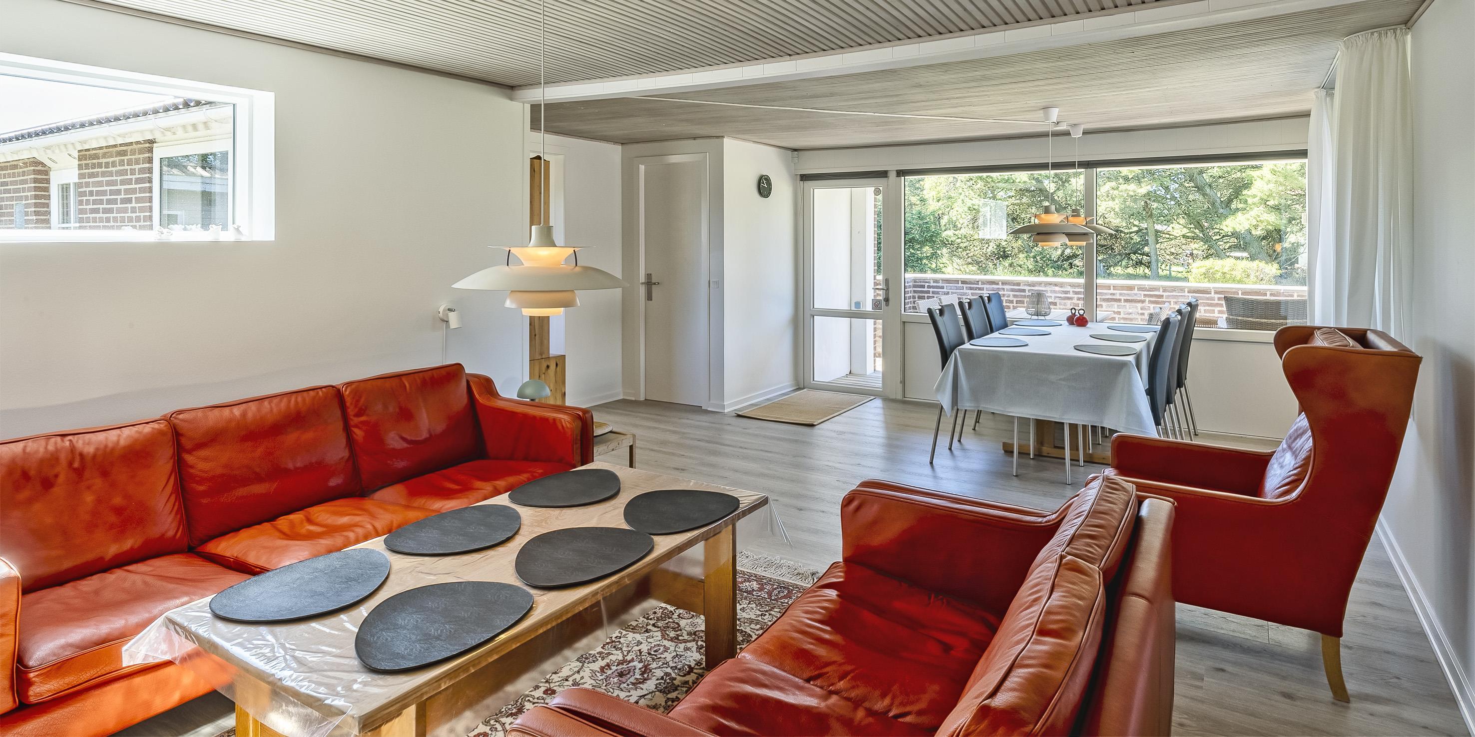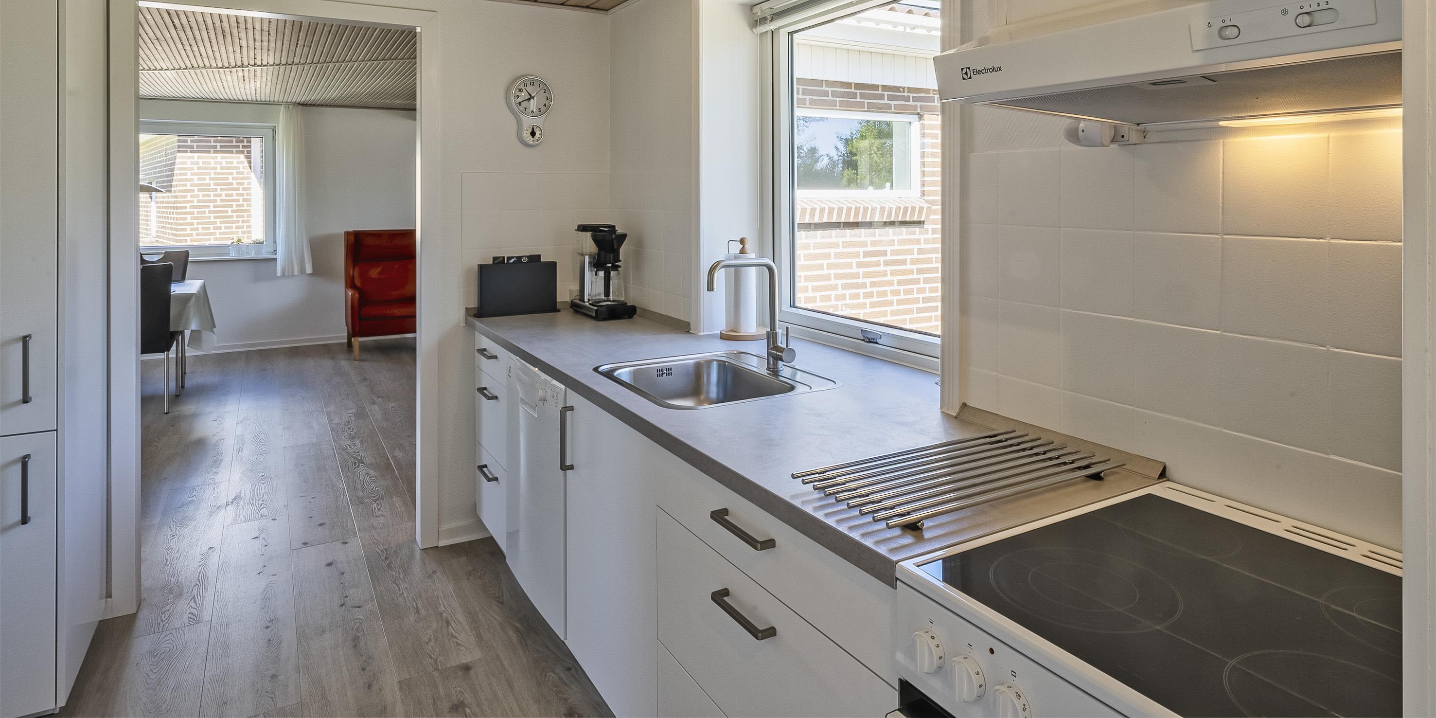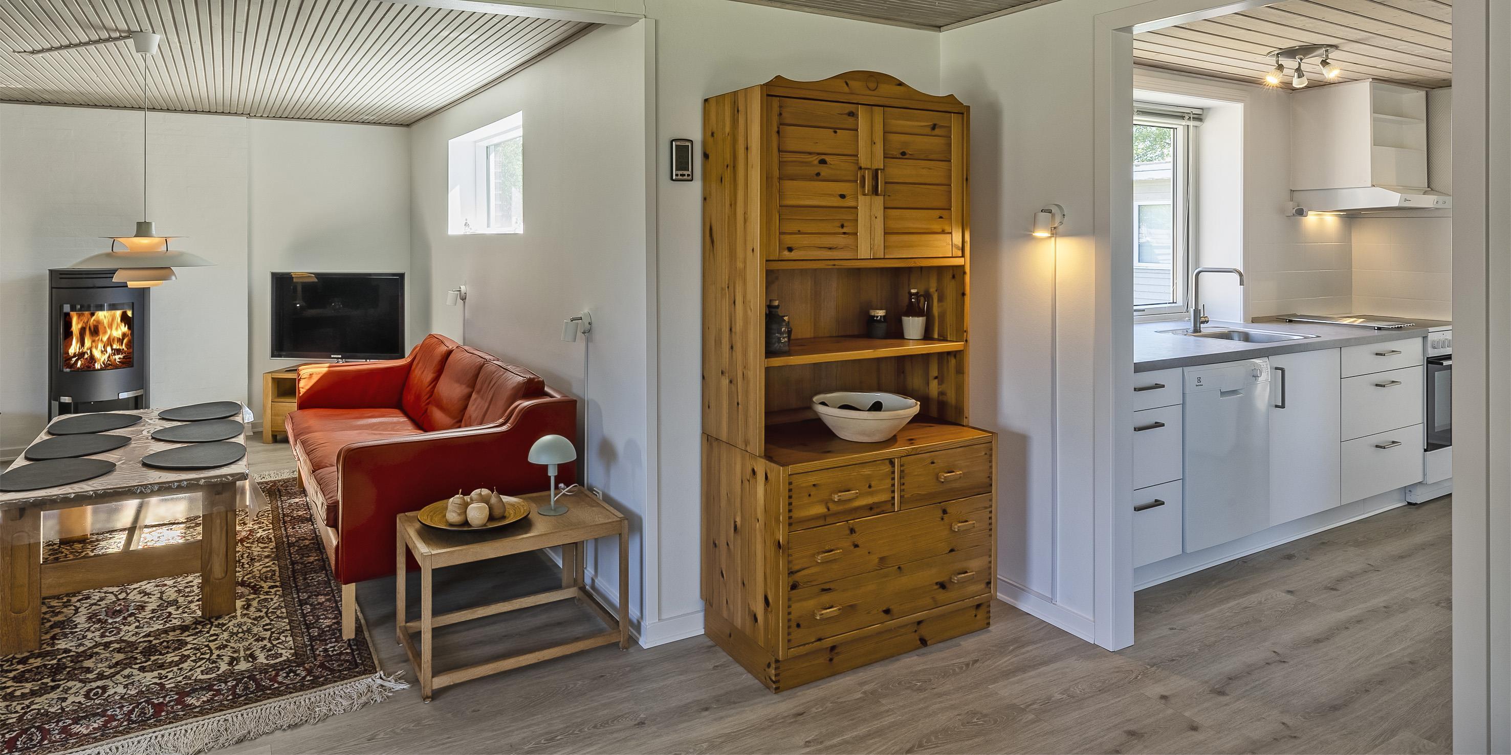 Nydeligt sommerhus til 6 personer, beliggende på naturskøn grund, ca. 1500 meter fra stranden. Huset indeholder: Entre/indgang. Entreen er rummelig med god plads til jakker og fodtøj. Fra entreen kommer man ind i åbent opholdsstue, der er indrettet med spiseplads med kig til haven, sofagruppe med kig til brændeovn og TV og Tv-signal fra stofa (sommerhuspakken). Trådløs internet. Fra opholdsstuen kommer man ind til køkkenet, i februar 2020 kommer der et helt nyt køkken ind med komfur og køleskab med lille fryser, opvaskemaskine og nye trægulve. Baggang med udgang til huset bagside og dejlig ugeneret terrasse. Fra bagindgangen forefindes der et gæstetoilet samt et værelse med en 3/4 dobbeltseng (120 x 200 cm) samt et klædeskab. Et køjerum med 2 senge af 100 x190 cm, samt et klædeskab. Fra entreen, der er indrettet med yderligere 2 sofaer som kan bruges som læseplads eller spillerum, kommer man over i en fordelingsgang. Herfra forefindes der et mastersoveværelse med 1 dobbeltseng og direkte adgang til badeværelse med bruser, vaskearrangement, wc og vaskemaskine. Varmepumpe. Huset har flere terrasser, en delvis overdækket og lukket terrasse til haven mod syd. En delvis lukket terrasse mod øst hvor maorgen kaffen kan nydes og en ugeneret åben terrasse på bagsiden af huset, hvor der ofte er at finde skygge. Til børnene er der en stor græsplæne der kan bruges til leg og boldspil, grunden er omkranset af træer. Huset ligger dejligt tæt på købmand samt mini golf anlæg. Byggeår 1965, renoveret indvendigt i 2024 og sidenhen løbende renoveret. 3 soveværelser: DS + DS + 2S.