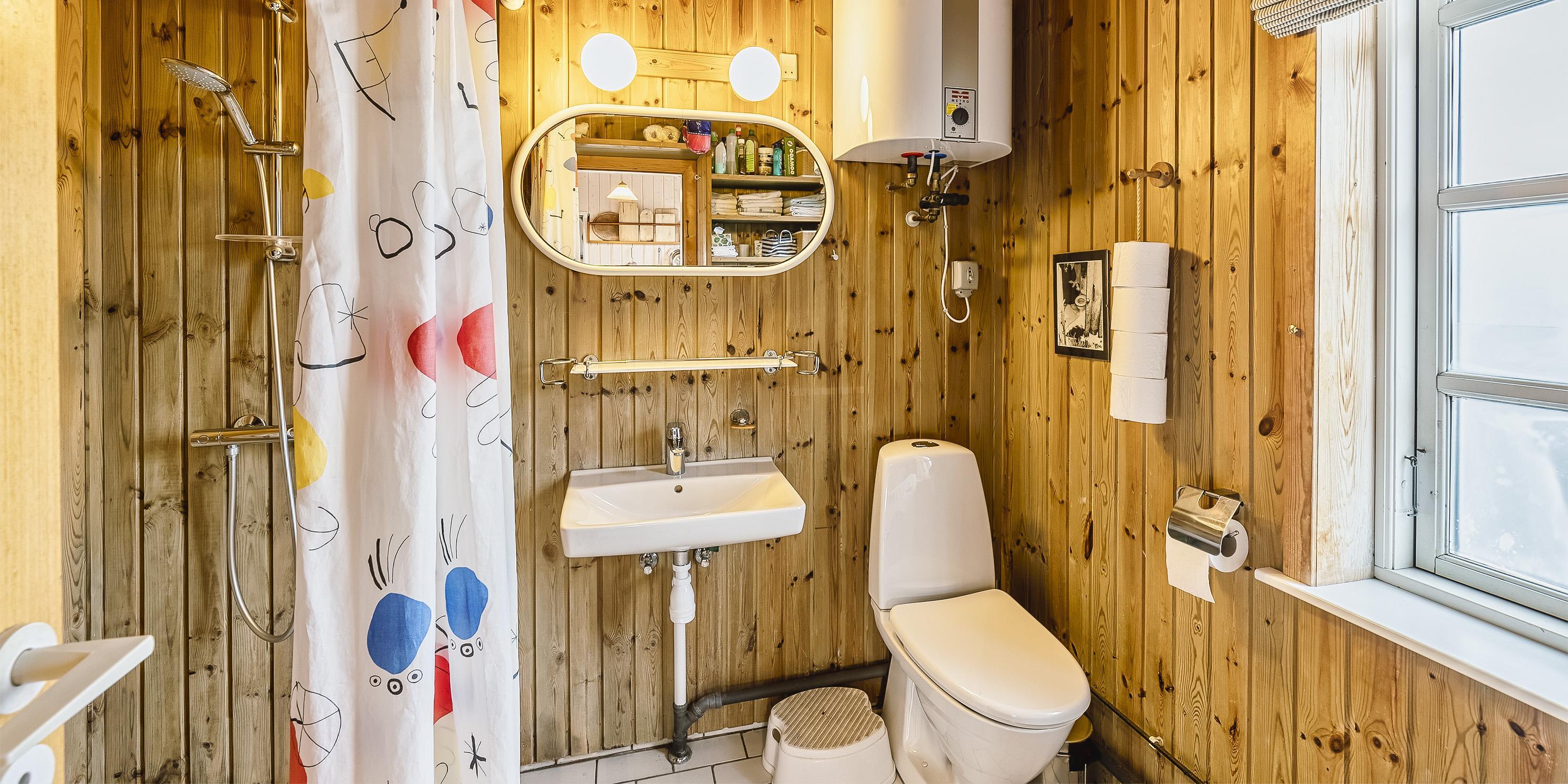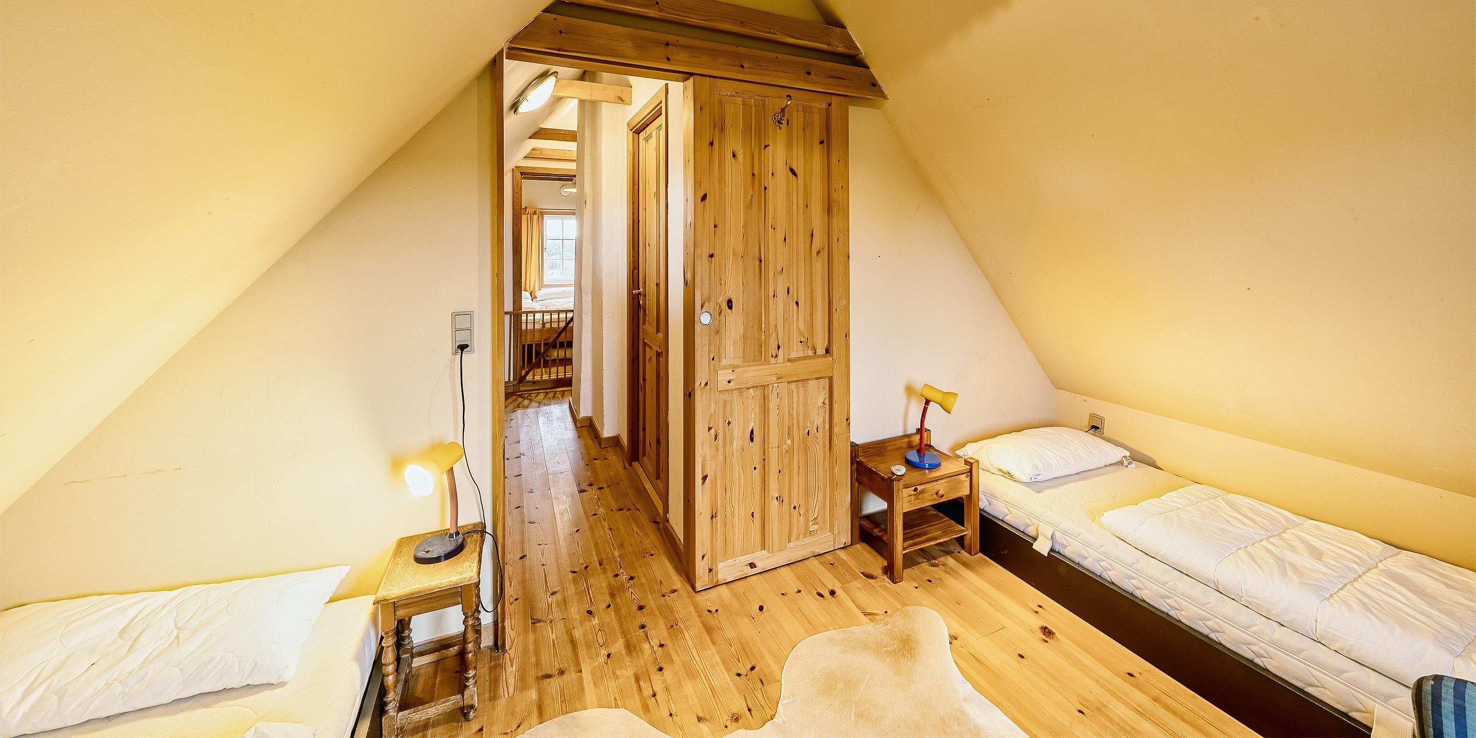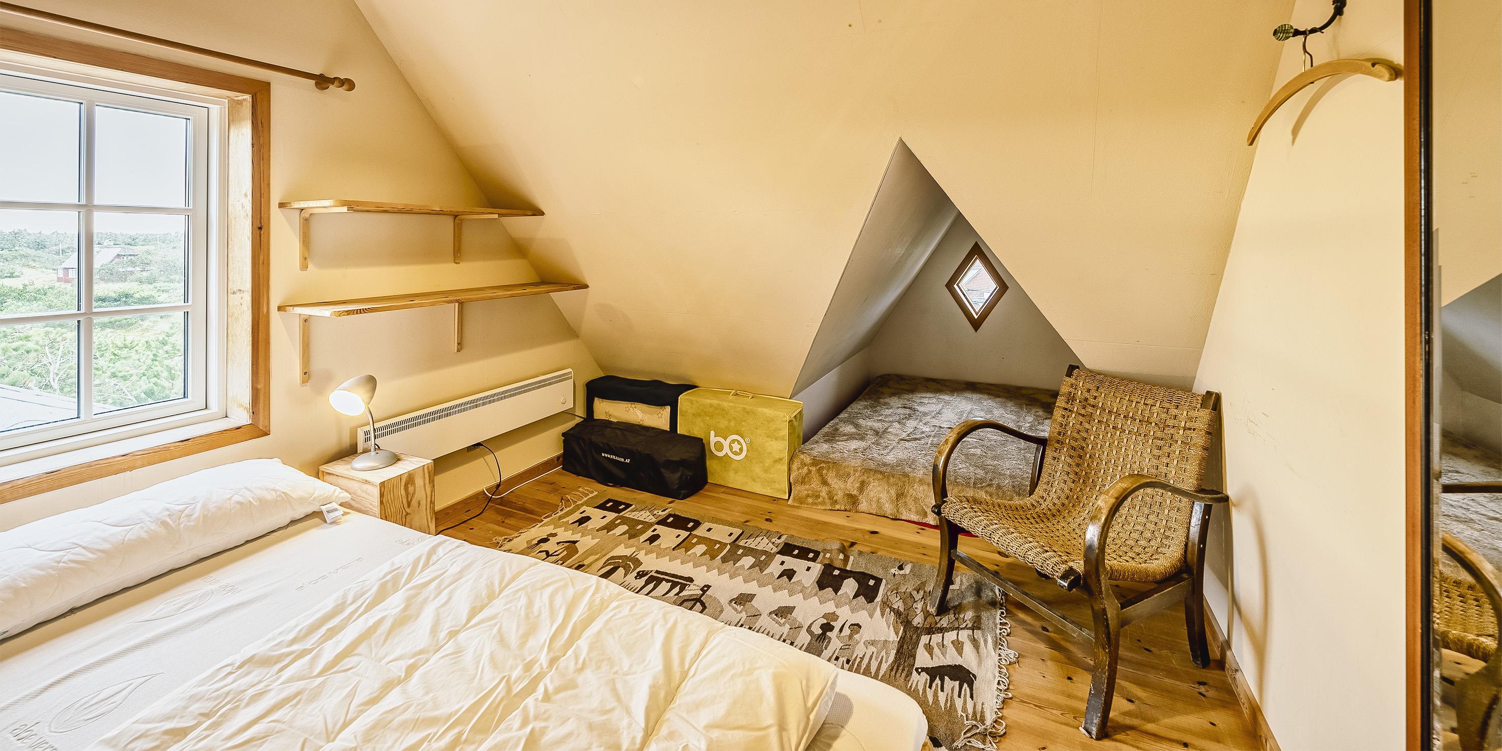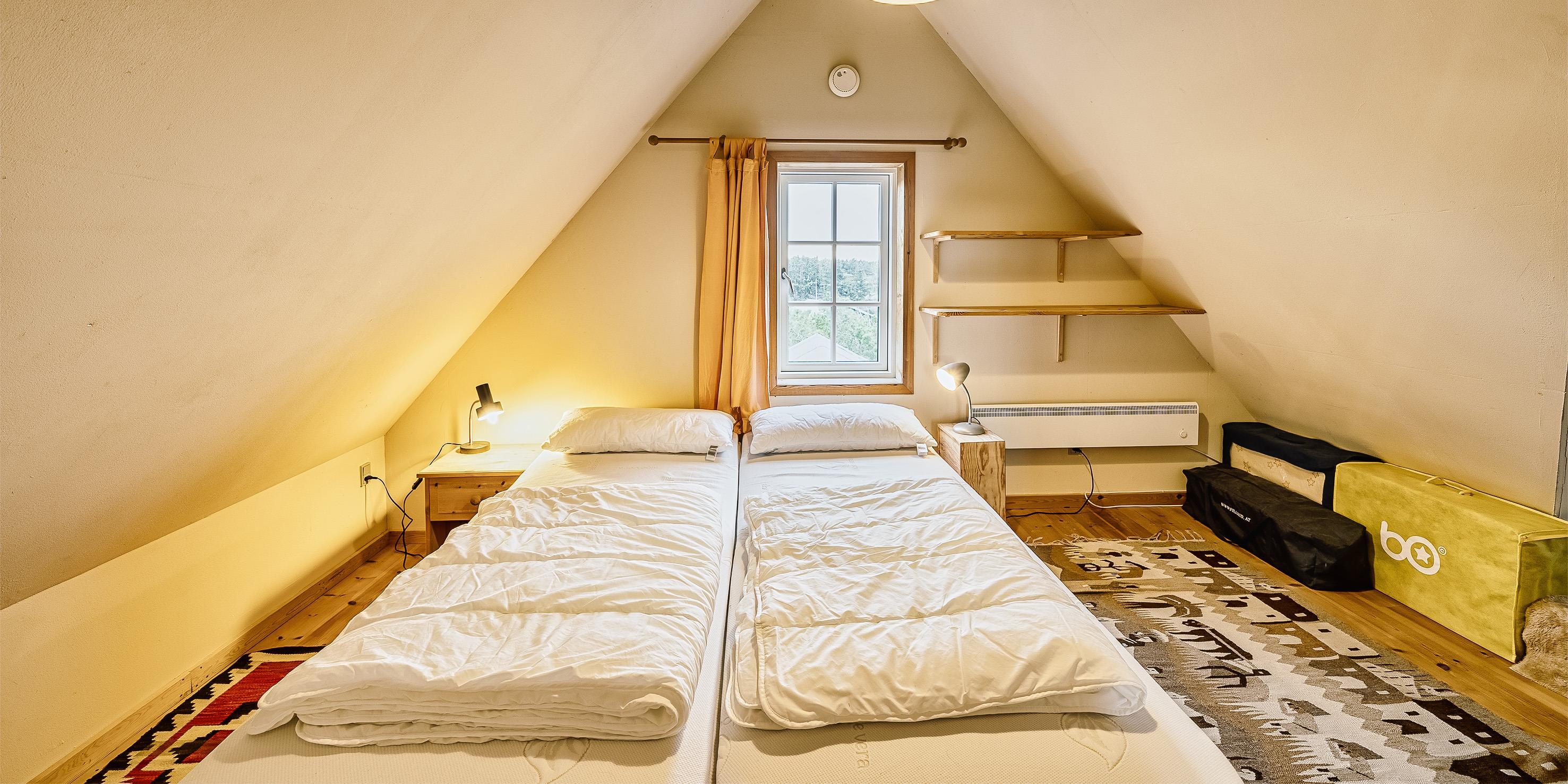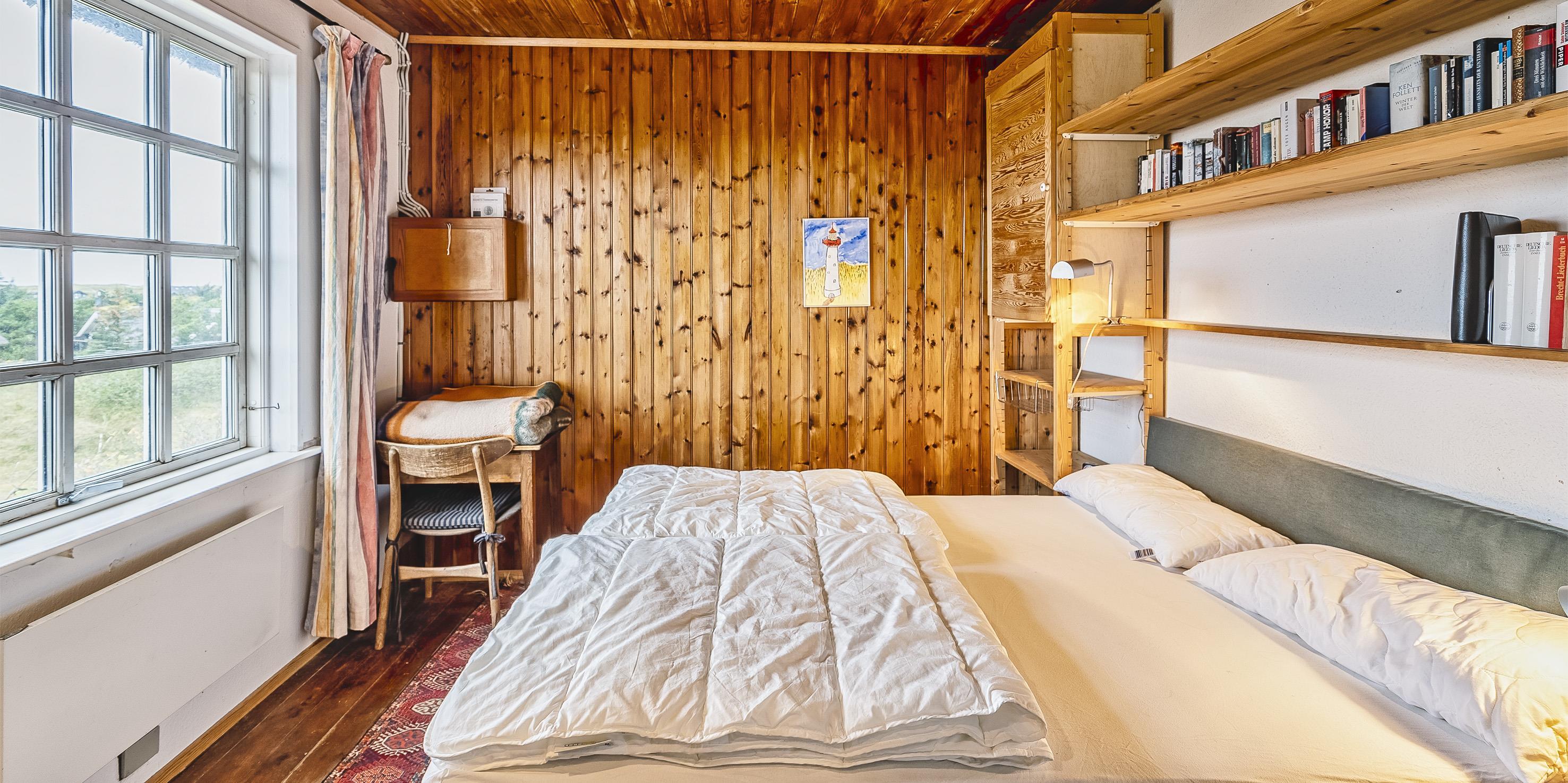 3 soveværelser. 2 med dobbeltseng 180x200 cm. 1 med 2 enkeltsenge (á 90x200 cm)