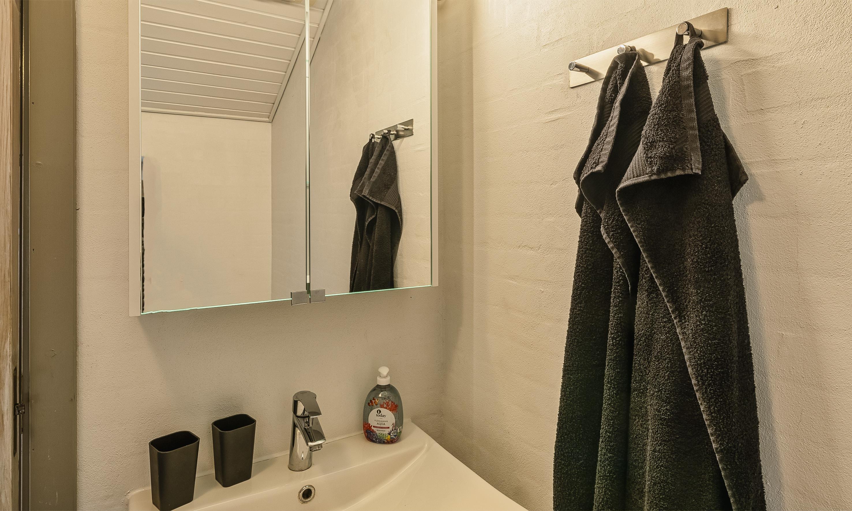 Bad med toilet, bruser og vask