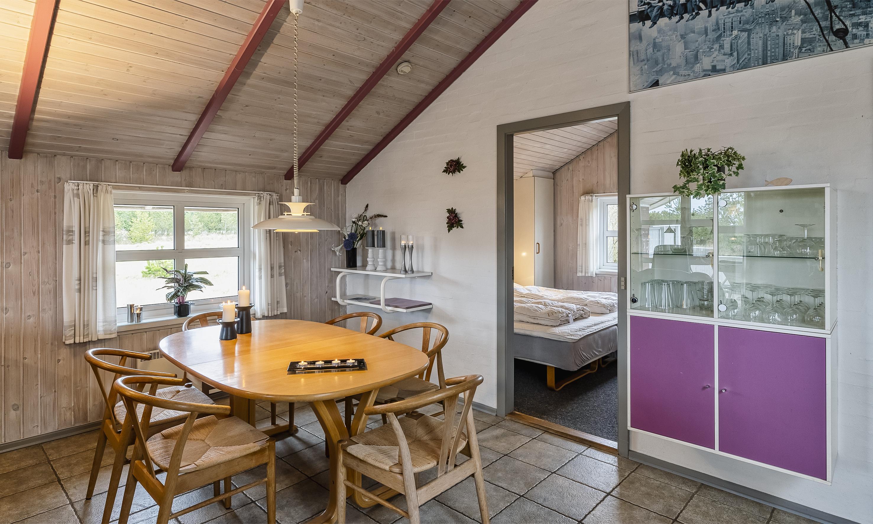 Dejlig sommer hus til 8 personer, med stor lukket terrasse, beliggende i naturskønt område med udsigt til sø, hvor I frit kan fiske. Kun 1.000 meter til stranden. Billig opvarmning med brændeovn og varmepumpe. TV med DR programmer og tyske kanaler, Trådløst fiber internet. Køkken med opvaskemaskine, ovn, mikroovn, airfreyer og 100 liters fryser. Gas grill, gæst skal selv sørge for gas. Badeværelse med wc/bruser, spa, sauna, vaskemaskine og tørretumbler. Gæstetoilet med bruser. 4 soveværelser: DS + DS + DS + 2S. 3 store soveværelser med dobbeltsenge og 1 soveværelse med køjeseng. Rygning er ikke tilladt. Bygget i 1989. Løbende renoveret. Begge badeværelser gennemgik en renovering i foråret 2018.