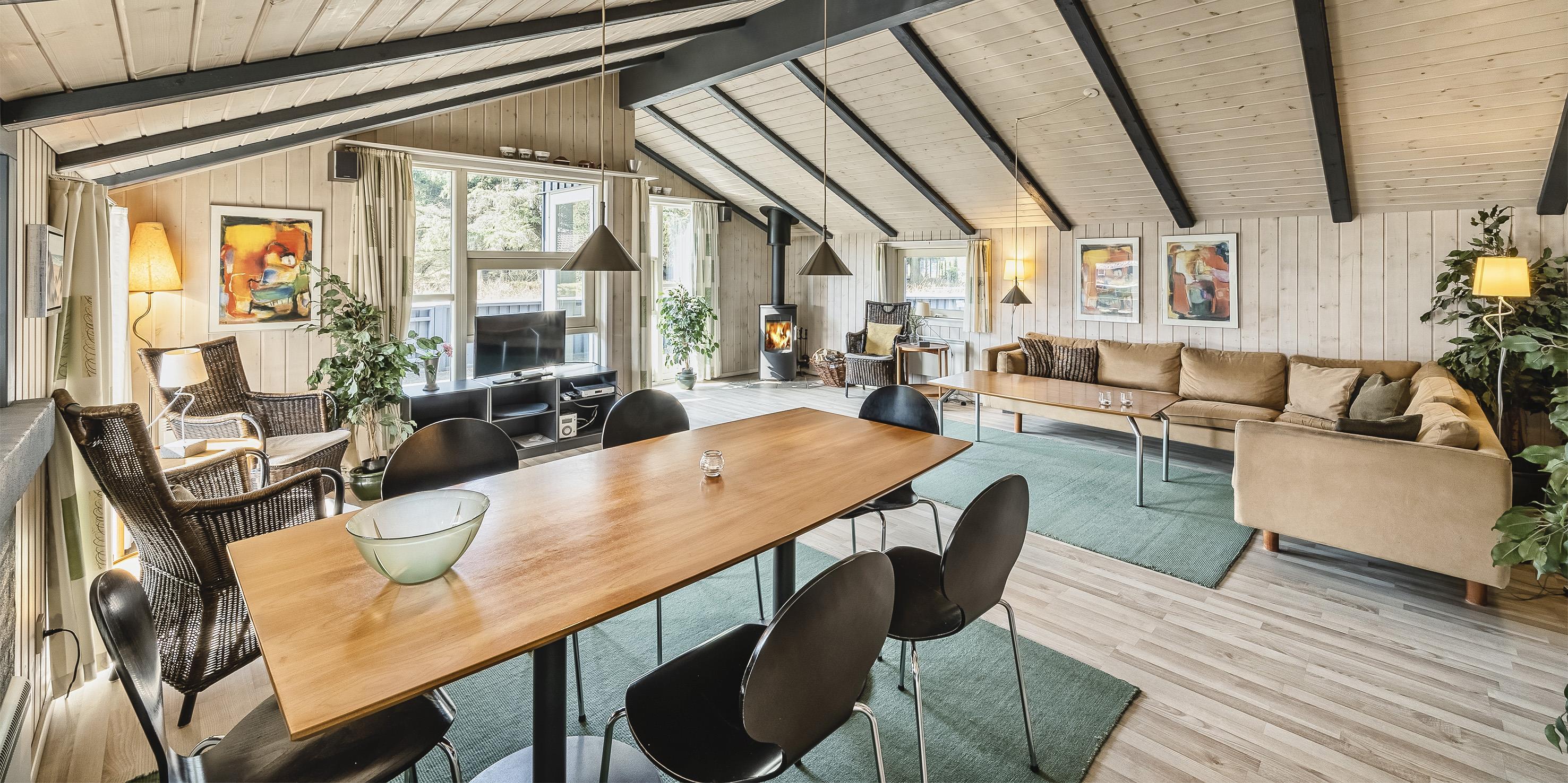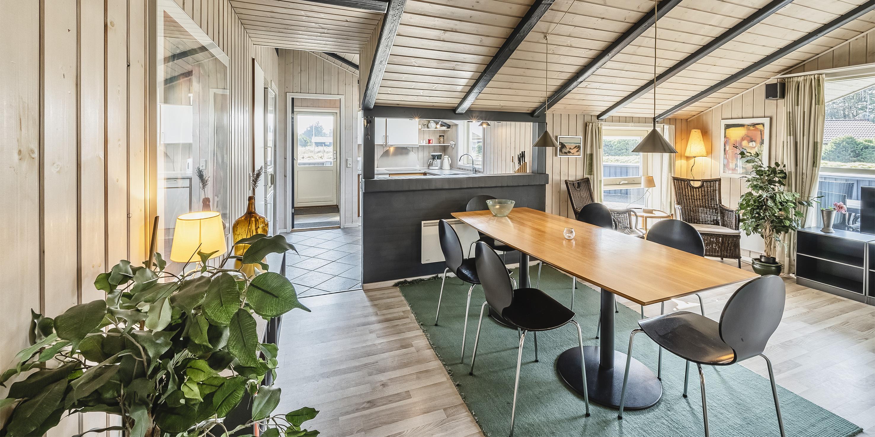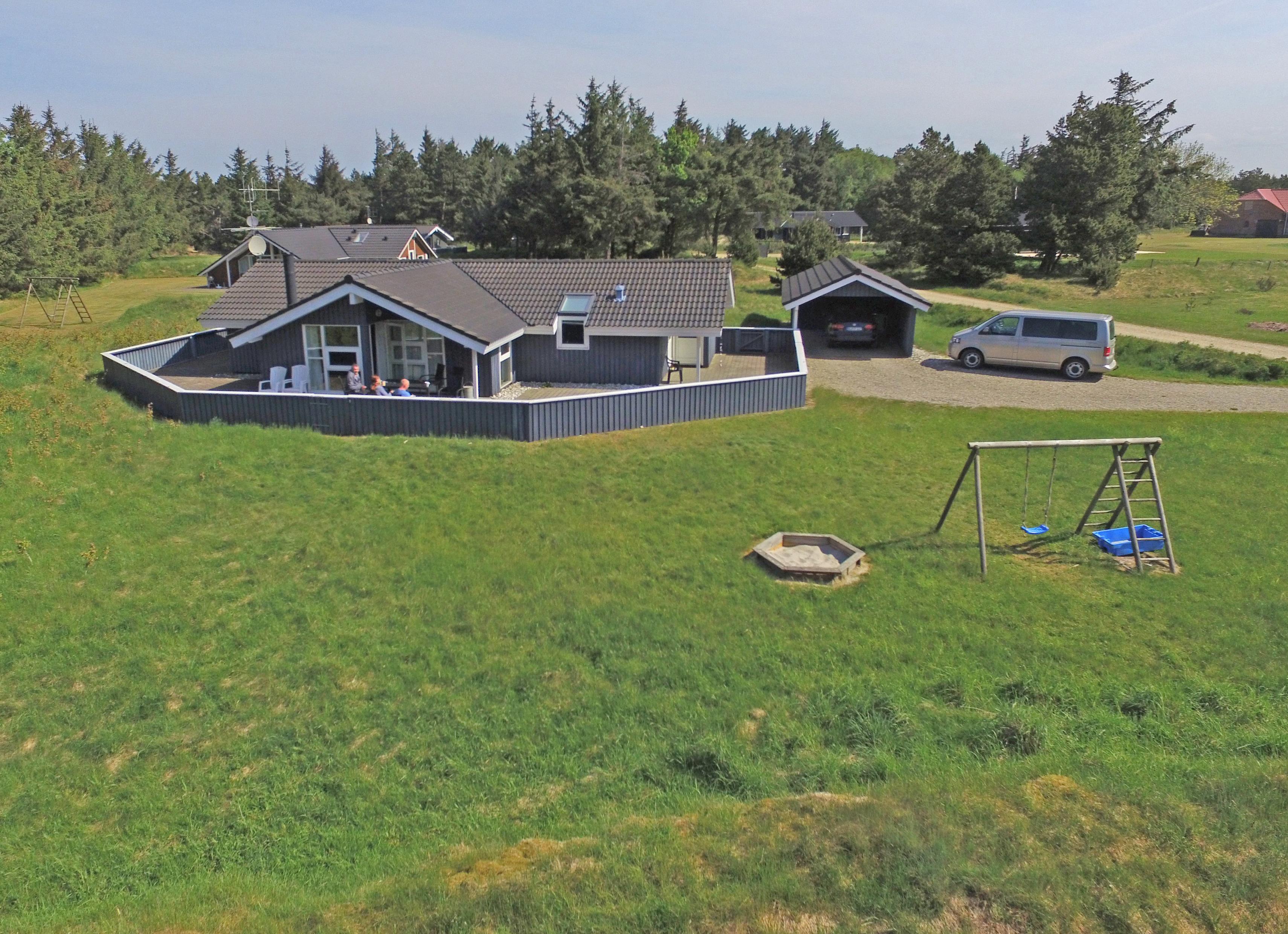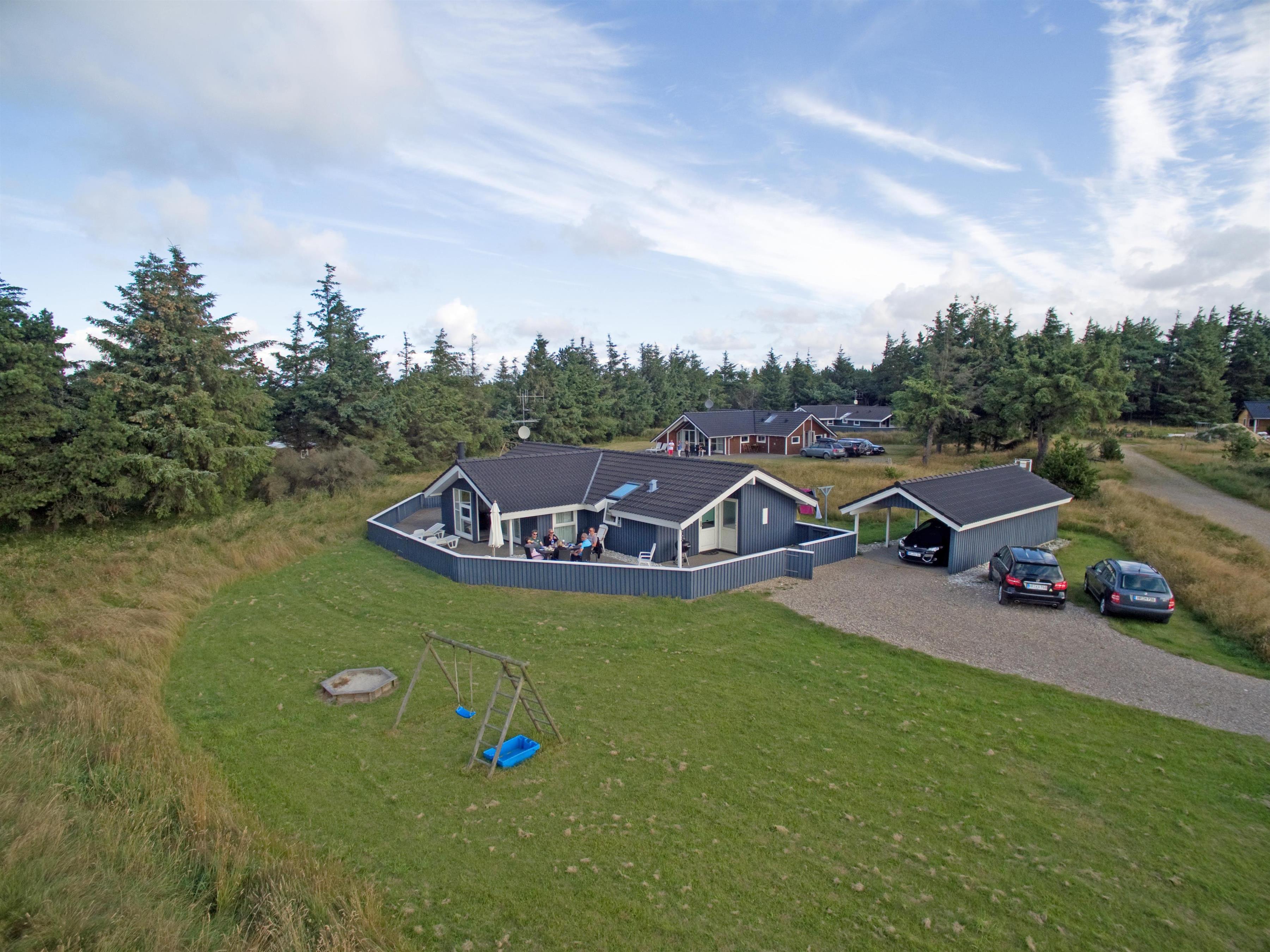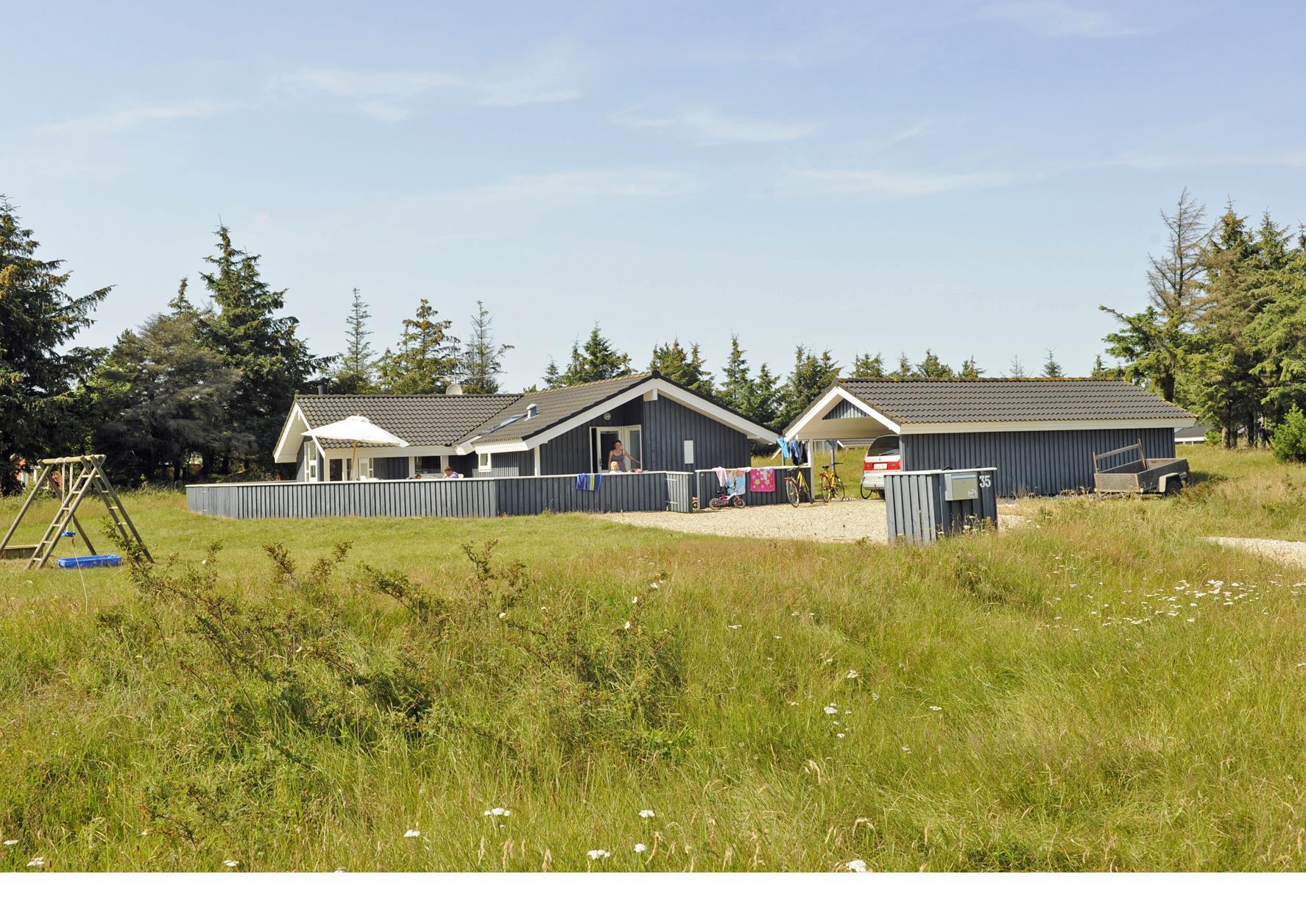 Smagfuldt sommerhus til 6 personer, beliggende på naturskøn grund, ca. 1.800 meter fra stranden. Stue med brændeovn, fjernsyn og parabol (DR programmer) samt åbent køkken med opvaskemaskine og mikroovn. Badeværelse med bruser/wc, spa og sauna. Gæstetoilet. Vaskemaskine og tørretumbler. 3 soveværelser: DS + DS + DS. Husdyr er ikke tilladt - med undtagelse af én hund. Stor lukket terrasse. Carport. Trådløs Internetadgang. Adgang til Oksbøl Badeland 2026. Rygning ikke tilladt. Byggeår 2001.