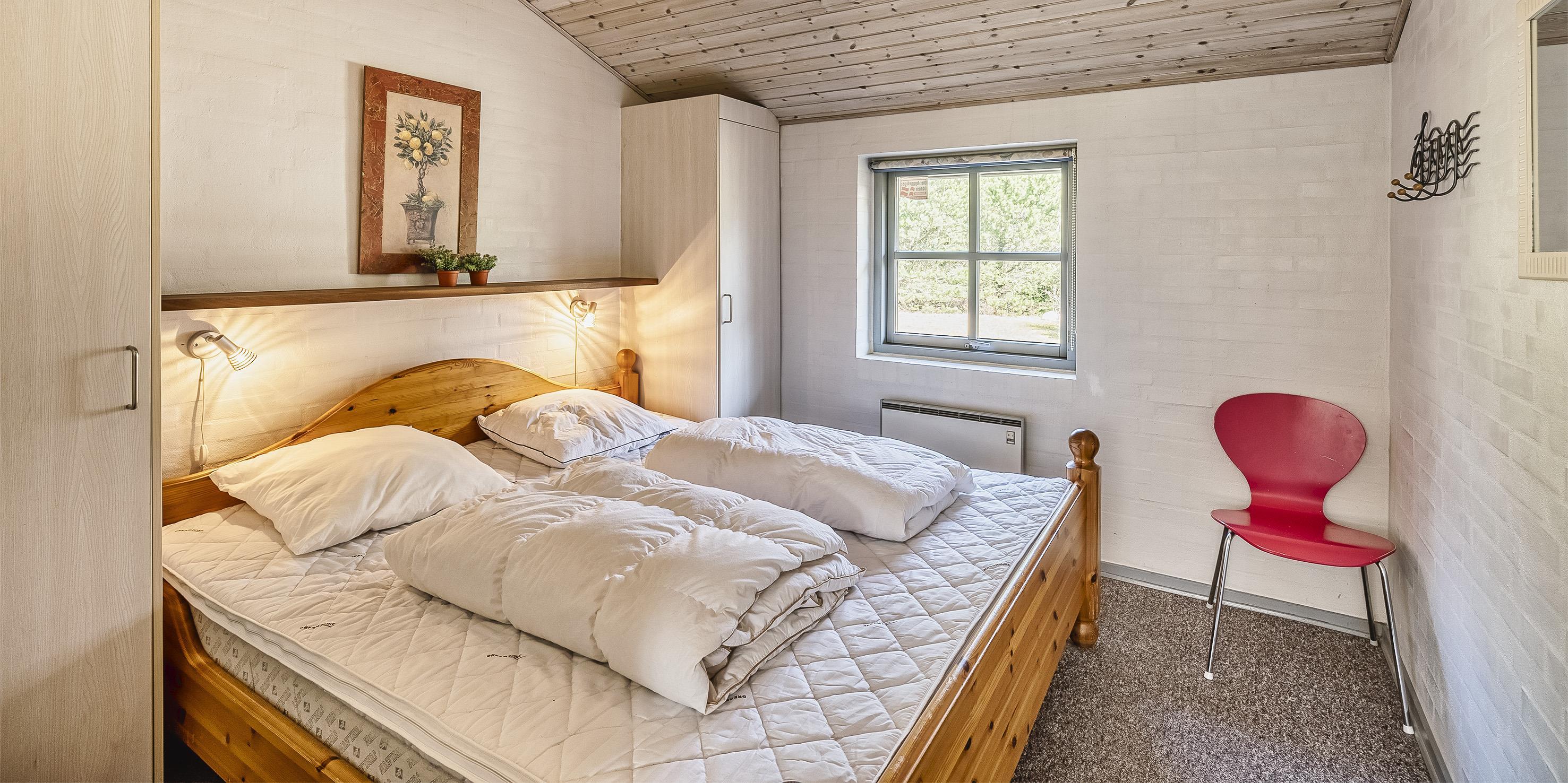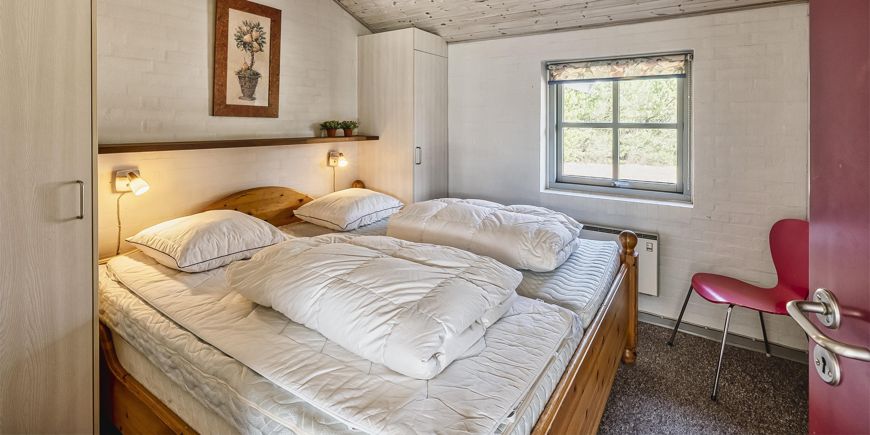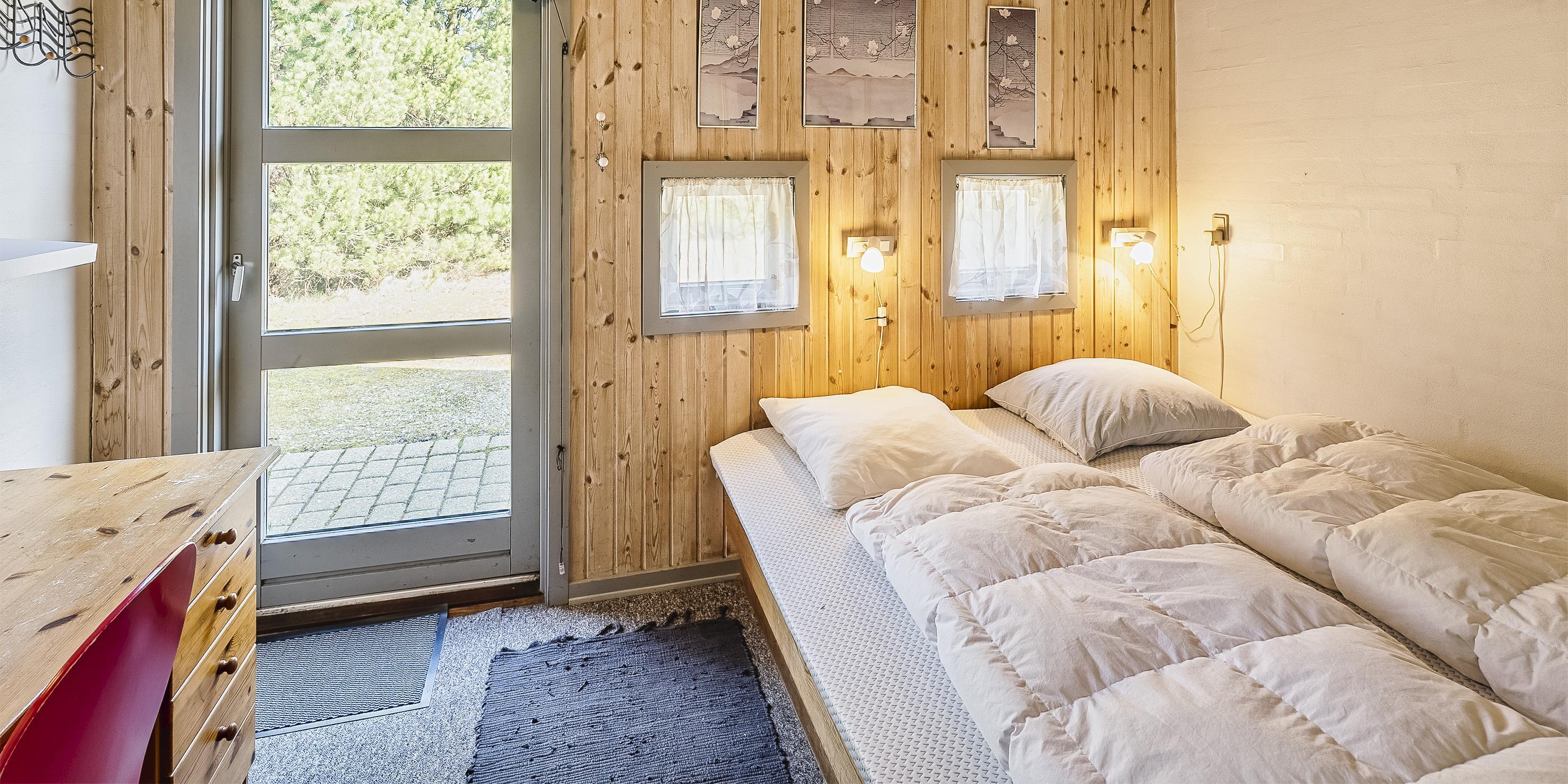 4 soveværelser. 2 med dobbeltseng 180x200 cm. 1 med smal dobbeltseng (140x200 cm). 1 med køjeseng.