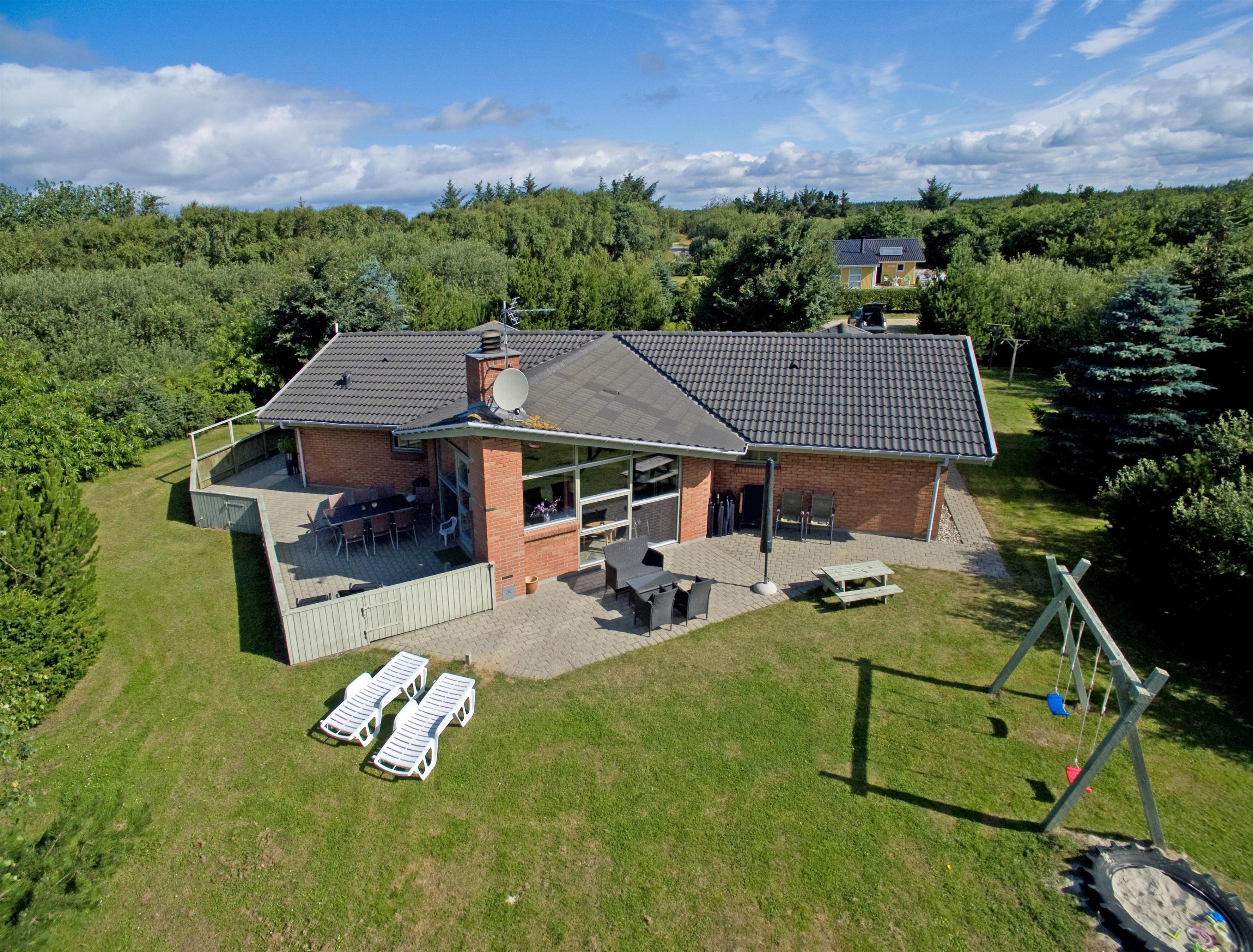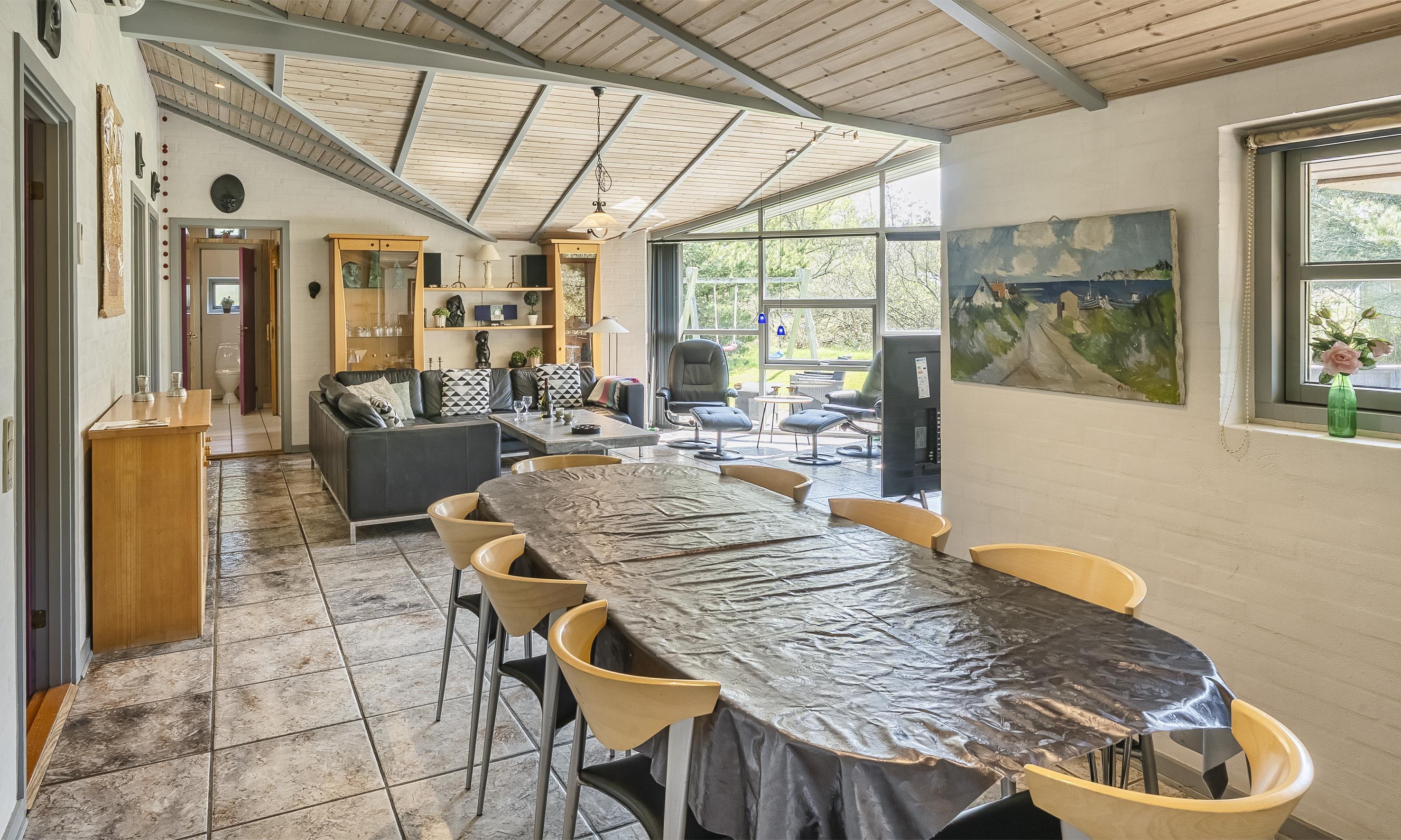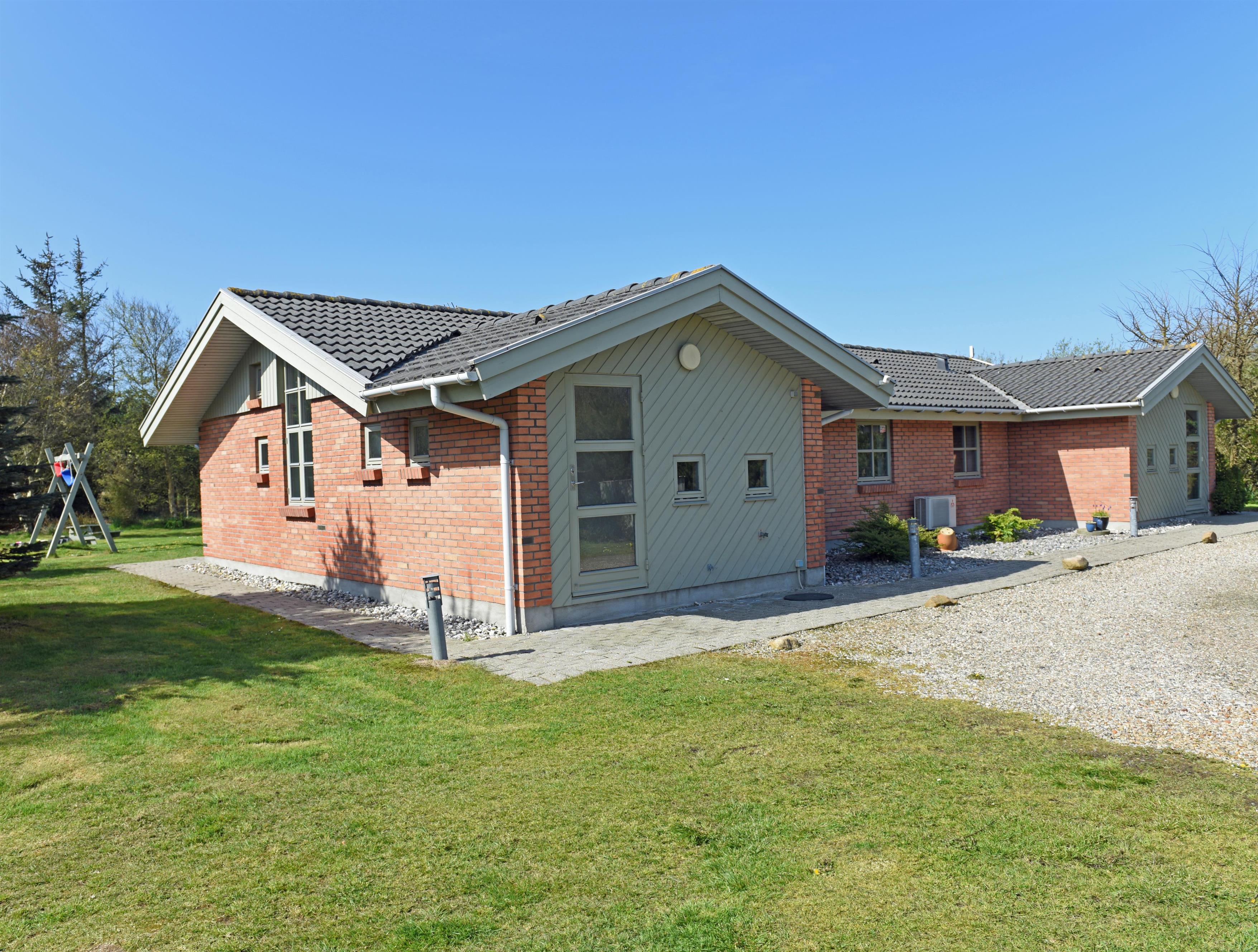 Smagfuldt sommerhus til 8 personer, beliggende på stor naturgrund, ca. 1.000 meter fra stranden. Åbent køkken med opvaskemaskine. Stue med brændeovn og fjernsyn (DR programmer). Badeværelse med bruser/wc og spa. Gæstetoilet med bruser. Sauna, vaskemaskine og tørretumbler. 4 soveværelser: DS + DS + DS + 2S. 2 soveværelser med hver 1 dobbeltseng, 1 soveværelse med smal dobbeltseng og 1 soveværelse med 1 køjeseng (90 x 200). Stor lukket terrasse. Husdyr er ikke tilladt! Varmepumpe. Trådløs internet. Byggeår 1995.