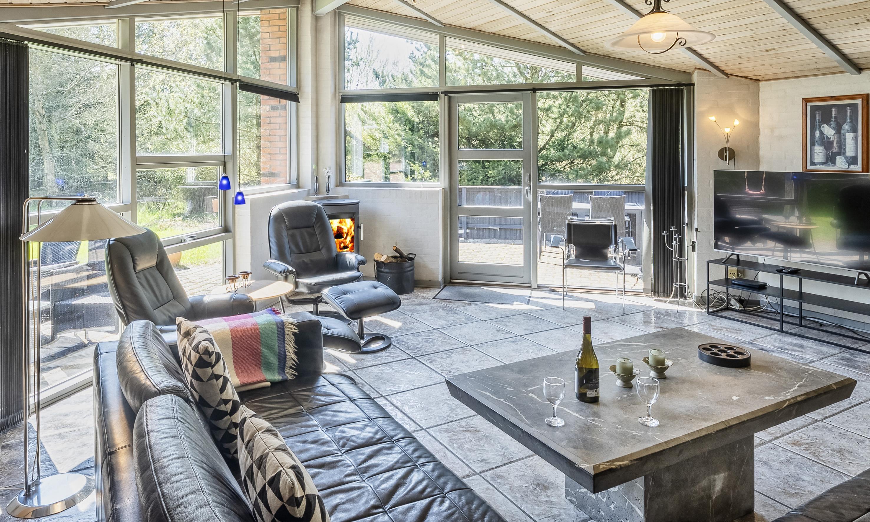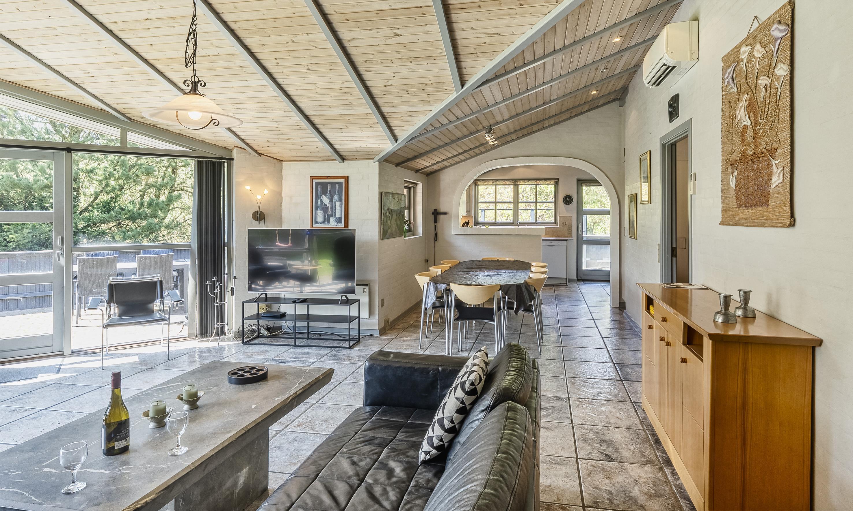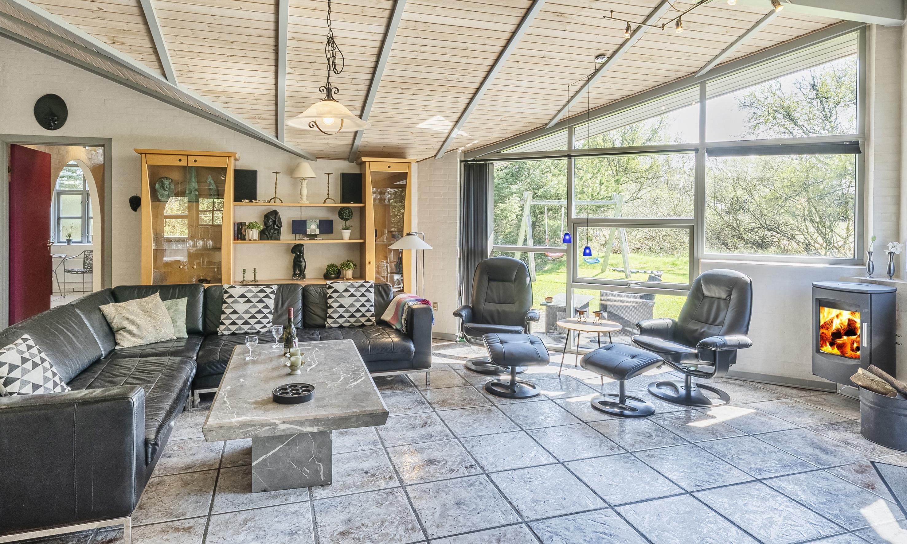 Smagfuldt sommerhus til 8 personer, beliggende på stor naturgrund, ca. 1.000 meter fra stranden. Åbent køkken med opvaskemaskine. Stue med brændeovn og fjernsyn (DR programmer). Badeværelse med bruser/wc og spa. Gæstetoilet med bruser. Sauna, vaskemaskine og tørretumbler. 4 soveværelser: DS + DS + DS + 2S. 2 soveværelser med hver 1 dobbeltseng, 1 soveværelse med smal dobbeltseng og 1 soveværelse med 1 køjeseng (90 x 200). Stor lukket terrasse. Husdyr er ikke tilladt! Varmepumpe. Trådløs internet. Byggeår 1995.