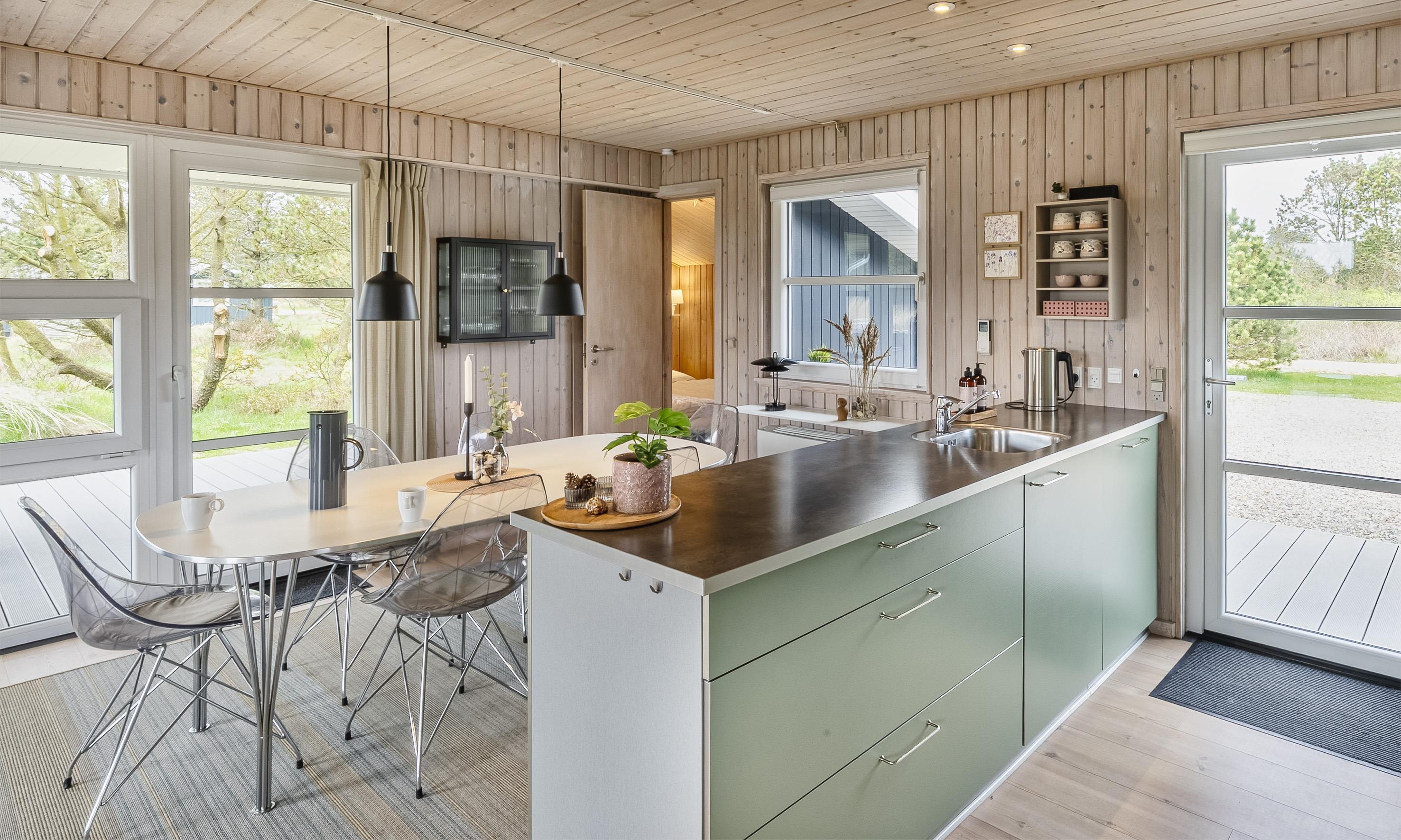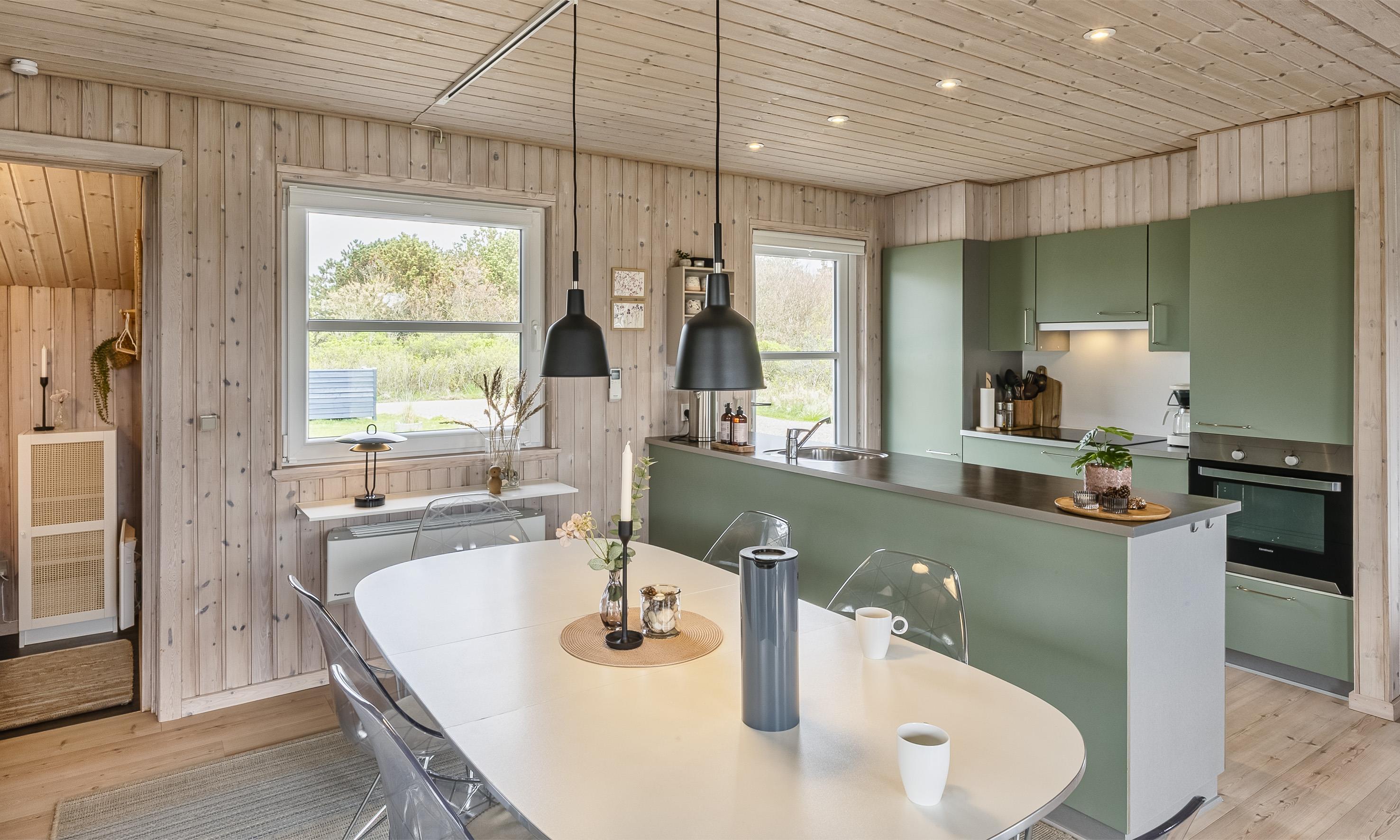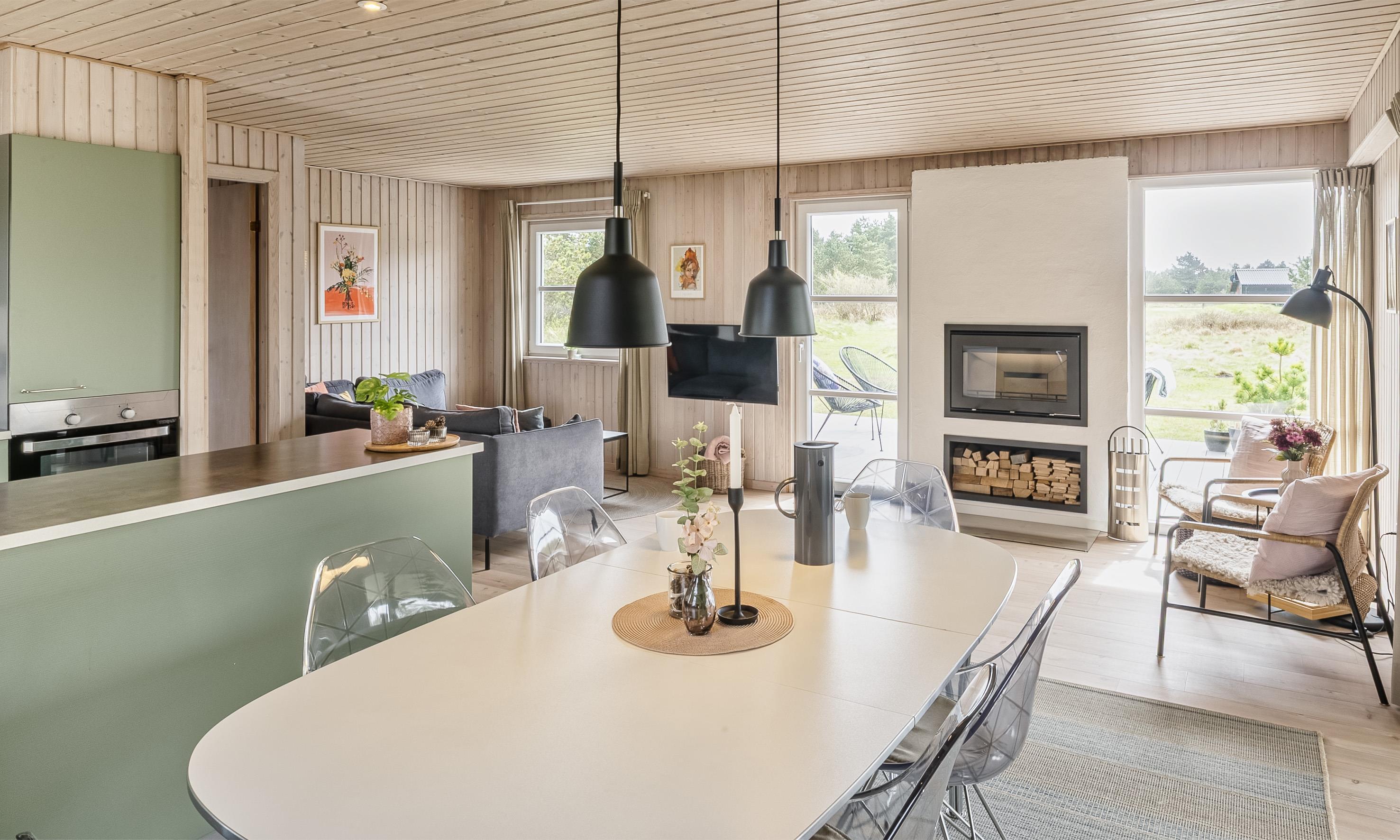 Hyggeligt, nyrenoveret sommerhus beliggende på skøn naturgrund. Stuen har plads nok til 6 personer. Stranden ligger ca. 1000 meter fra huset inden for gåafstand. God parkering til rådighed ved huset. Opholdsstuen er i åbent plan med spiseplads og køkken. Et hyggeligt sofahjørne med en fantastisk udsigt. Mellem sofahjørnet og læsehjørnet i huset er der en hængende pejs. Dette giver en hyggelig varme. Tyske tv-programmer kan også modtages. Der er YouSee-appen til at se tv og Smart TV. Desuden er der også Bluetooth-højttalere. Det moderne og veludstyrede køkken har komfur med keramisk kogeplade, ovn, mikroovn, opvaskemaskine og køleskab med fryser. Badeværelset er udstyret med gulvvarme og har håndvask, toilet og bruser. I alt tre soveværelser er tilgængelige for gæsterne. Alle tre soveværelser er udstyret med dobbeltsenge (DB + DB + DB). Sommerhuset har internetforbindelse (W-Lan). Sommerhuset er opført i 1978 og flot renoveret i 2024. Der er tre skønne terrasseområder omkring huset, hvor en af dem er også delvist dækket. Her kan du følge solen på alle tider af dagen og krydre med en kop kaffe om eftermiddagen eller med en grill. (El-grill kun til afbenyttelse om sommeren)