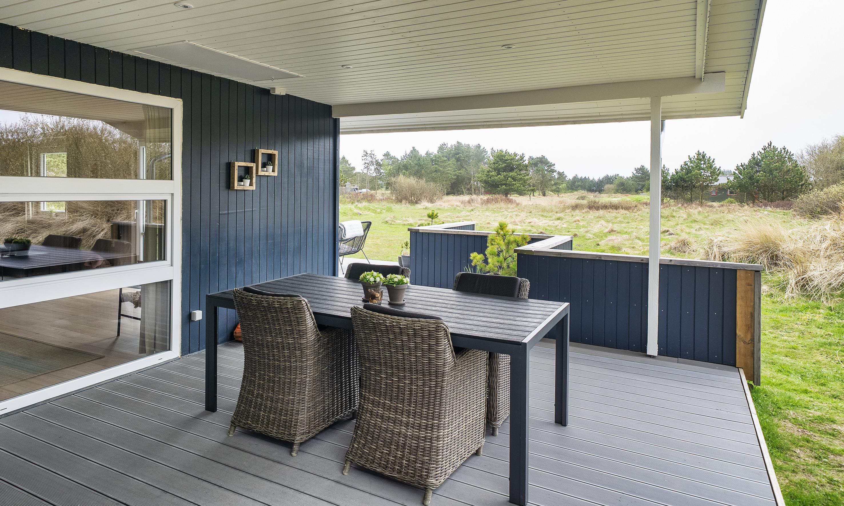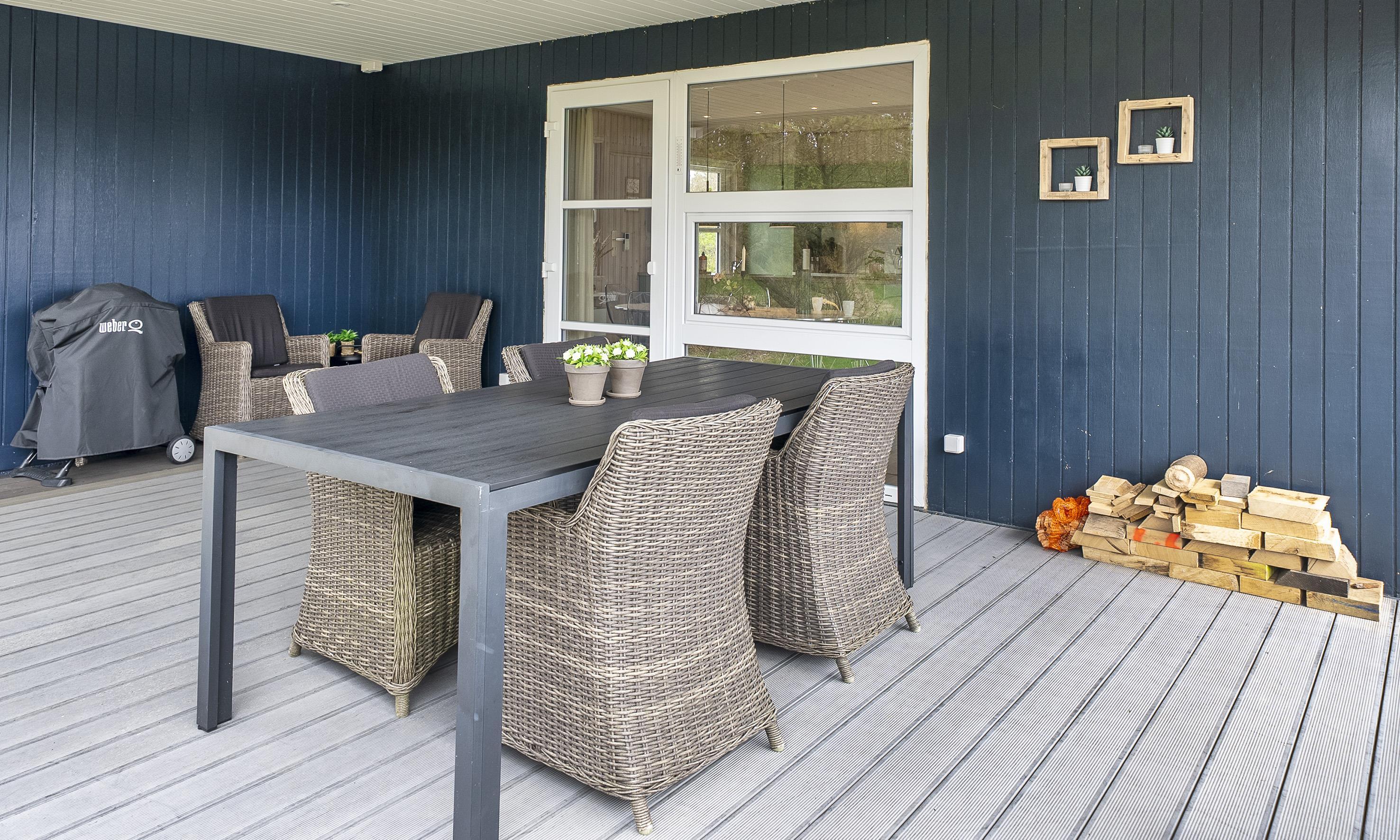 Delvis overdækket terrasse.
