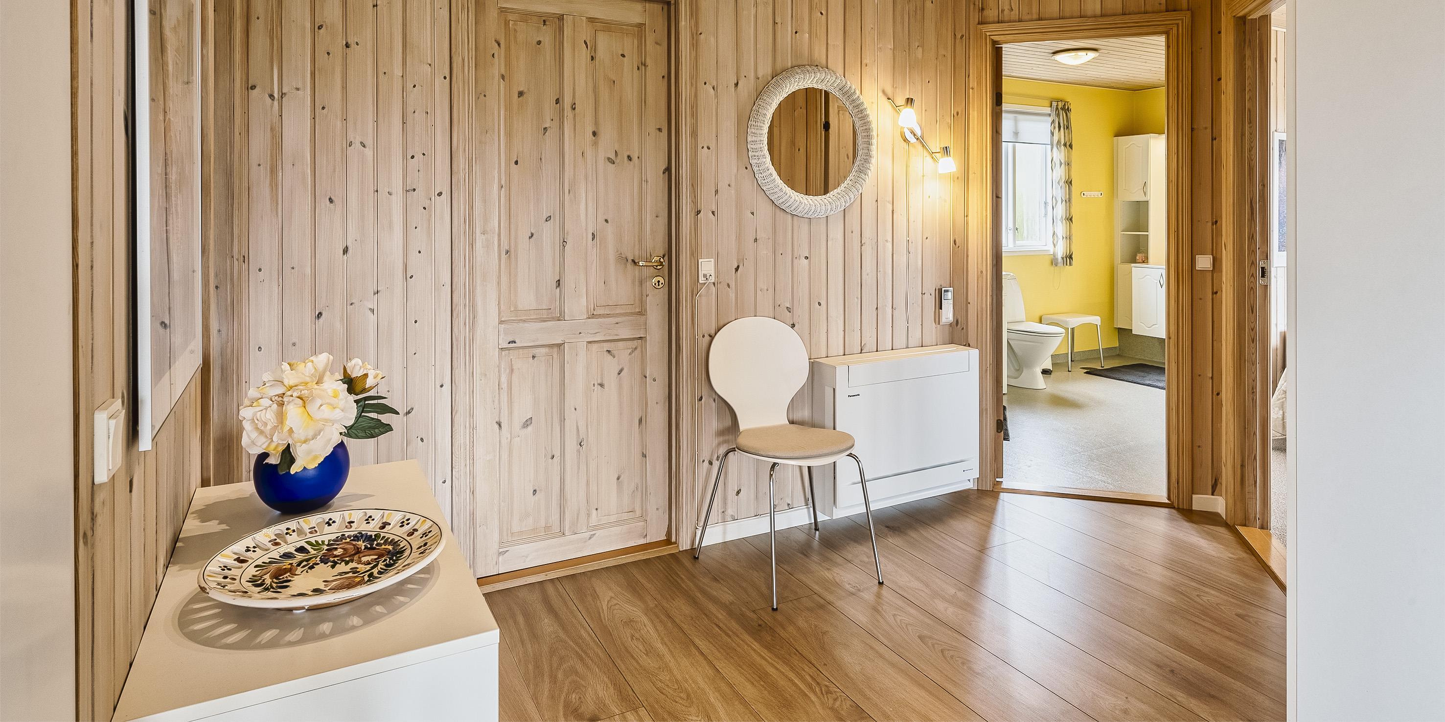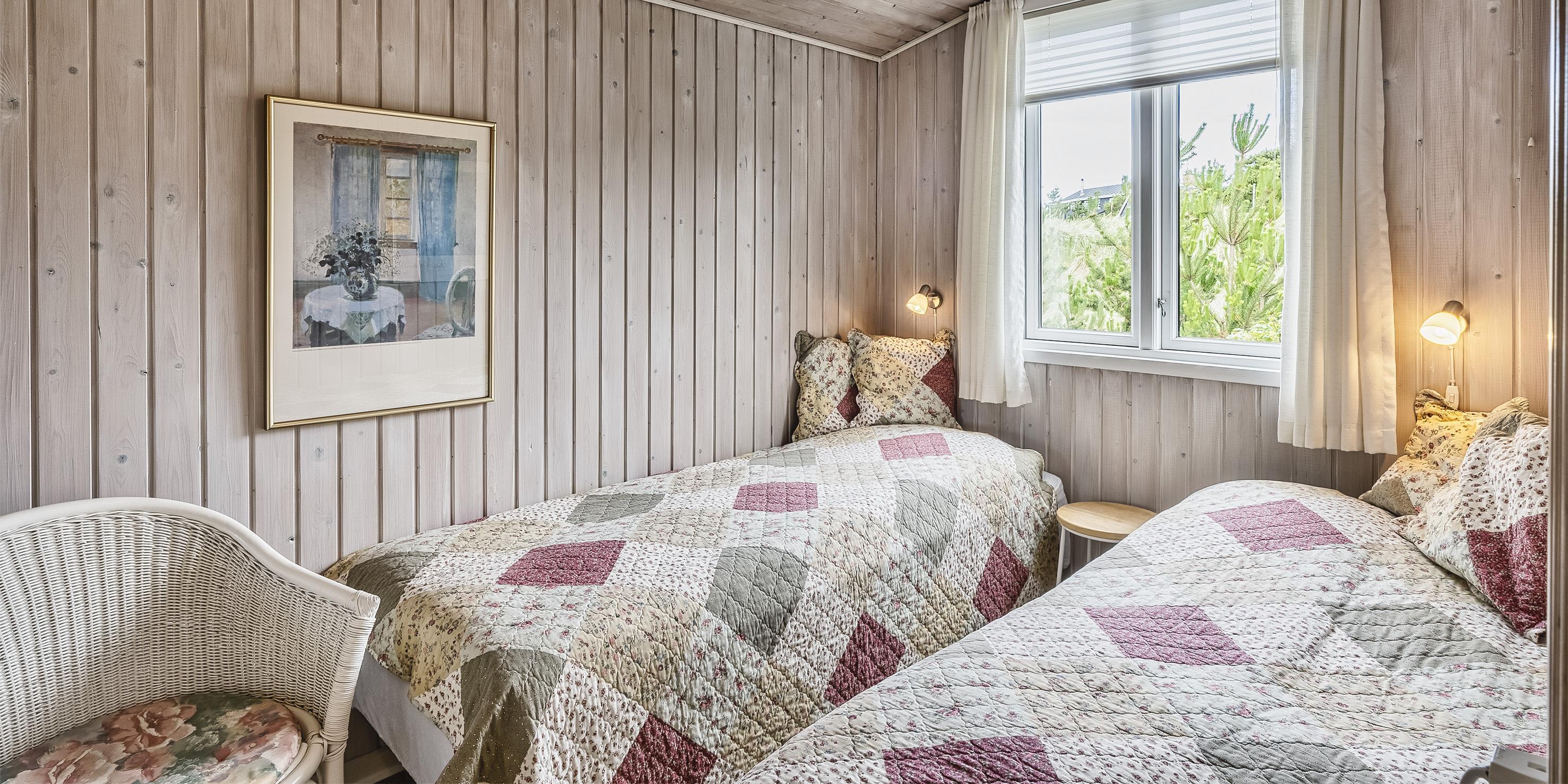 2 soveværelser. 1 med dobbeltseng 180x200 cm. 1 med 2 enkeltsenge.