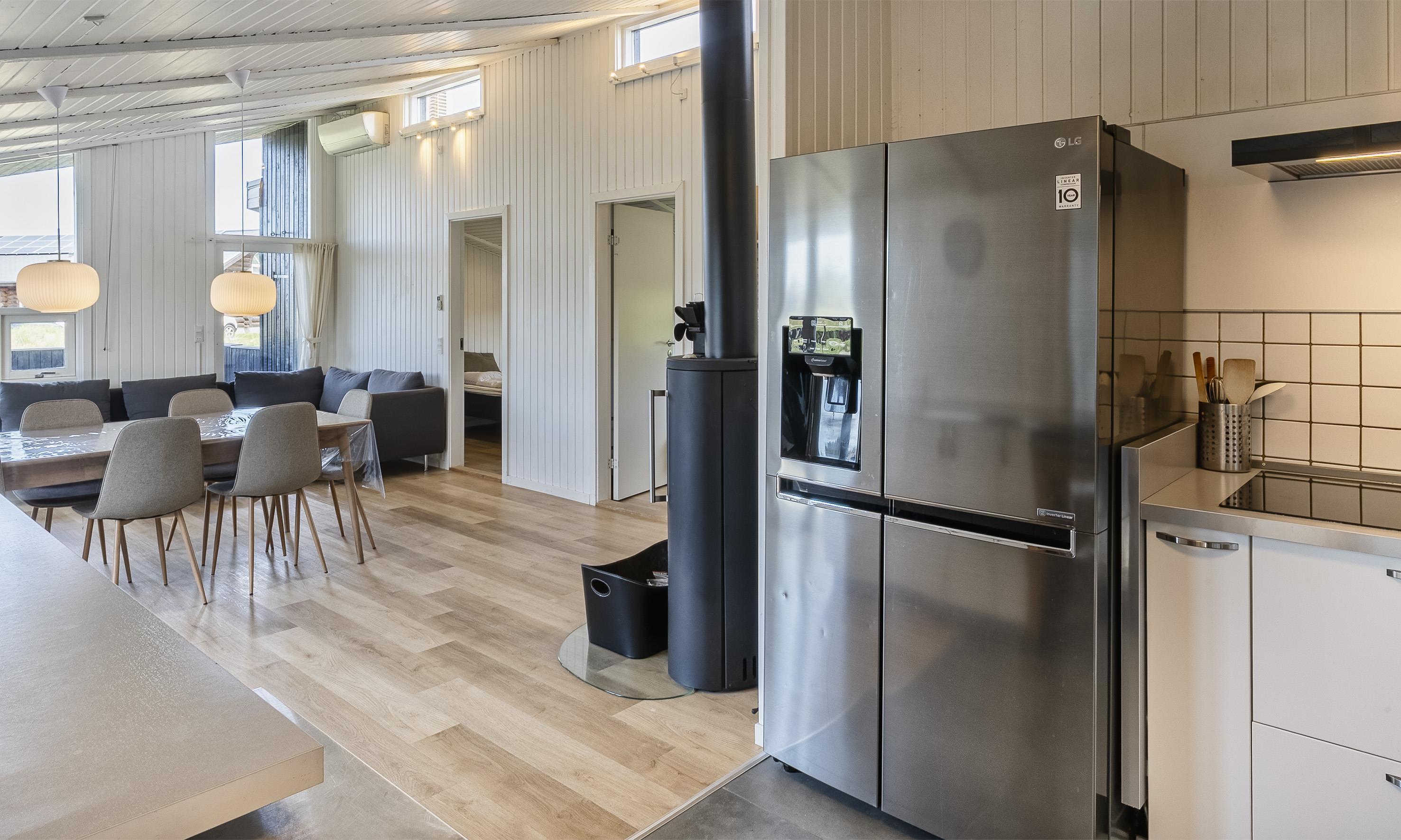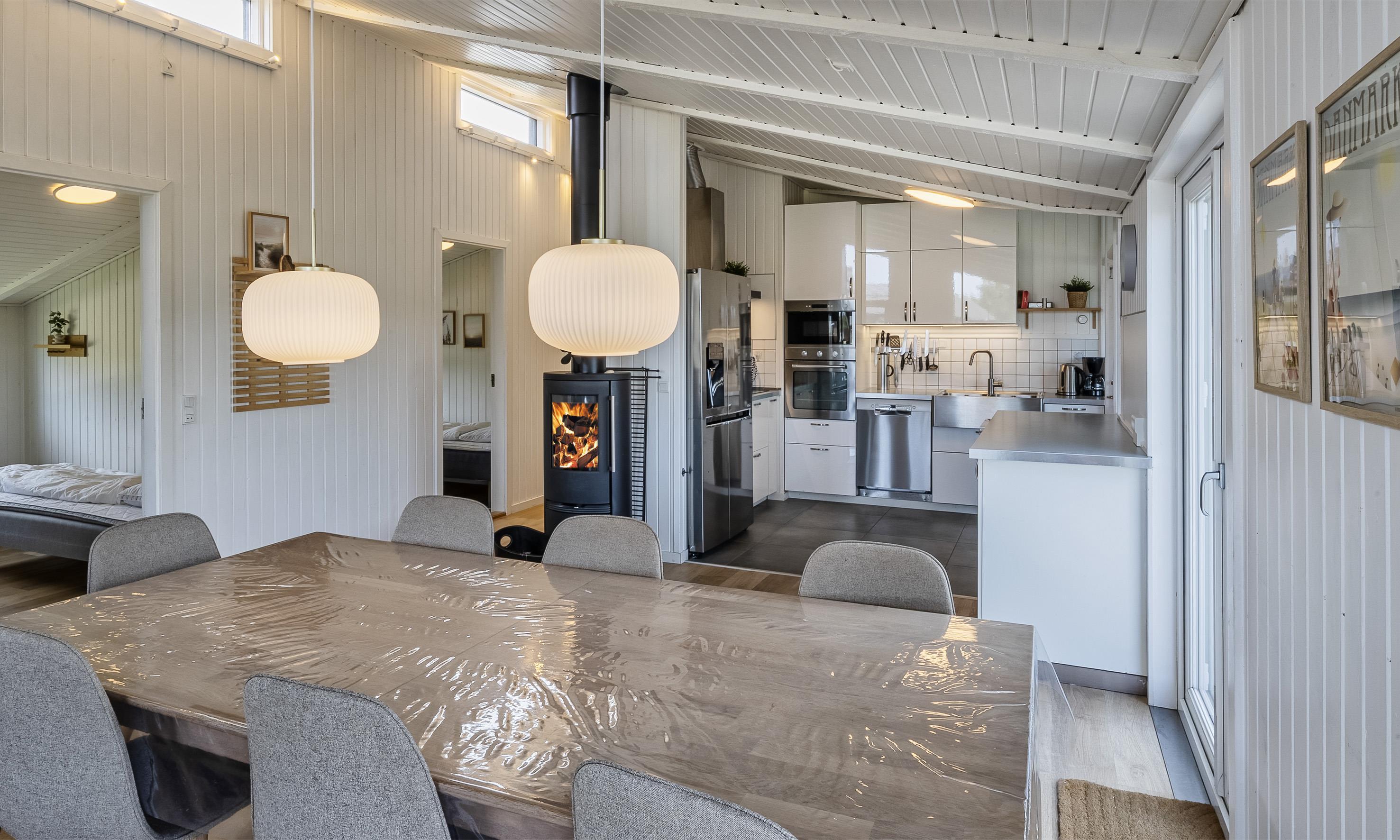 Huset indeholder: 5 soverum med DS+DS+DS+2S+2S. Dejligt lyst køkken med Microovn, opvaskemaskine, køleskab og fryser. Den velindrettede stue er i åbent forbindelse med køkken og indeholder brændeovn, smart-v med danske og tyske kanaler samt der er mulighed for streming. Der er internetadgang. Der er varmepumpe i huset.