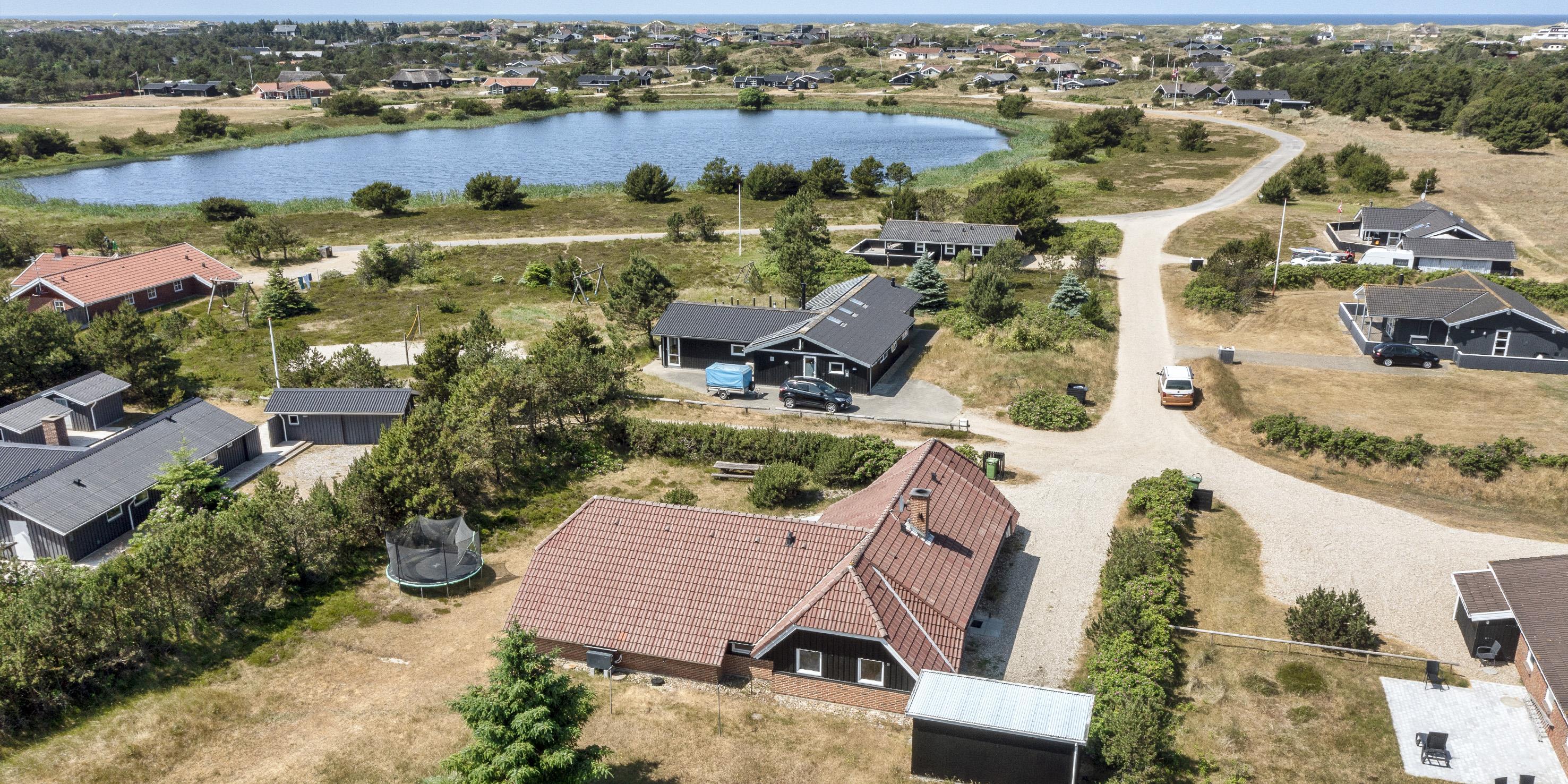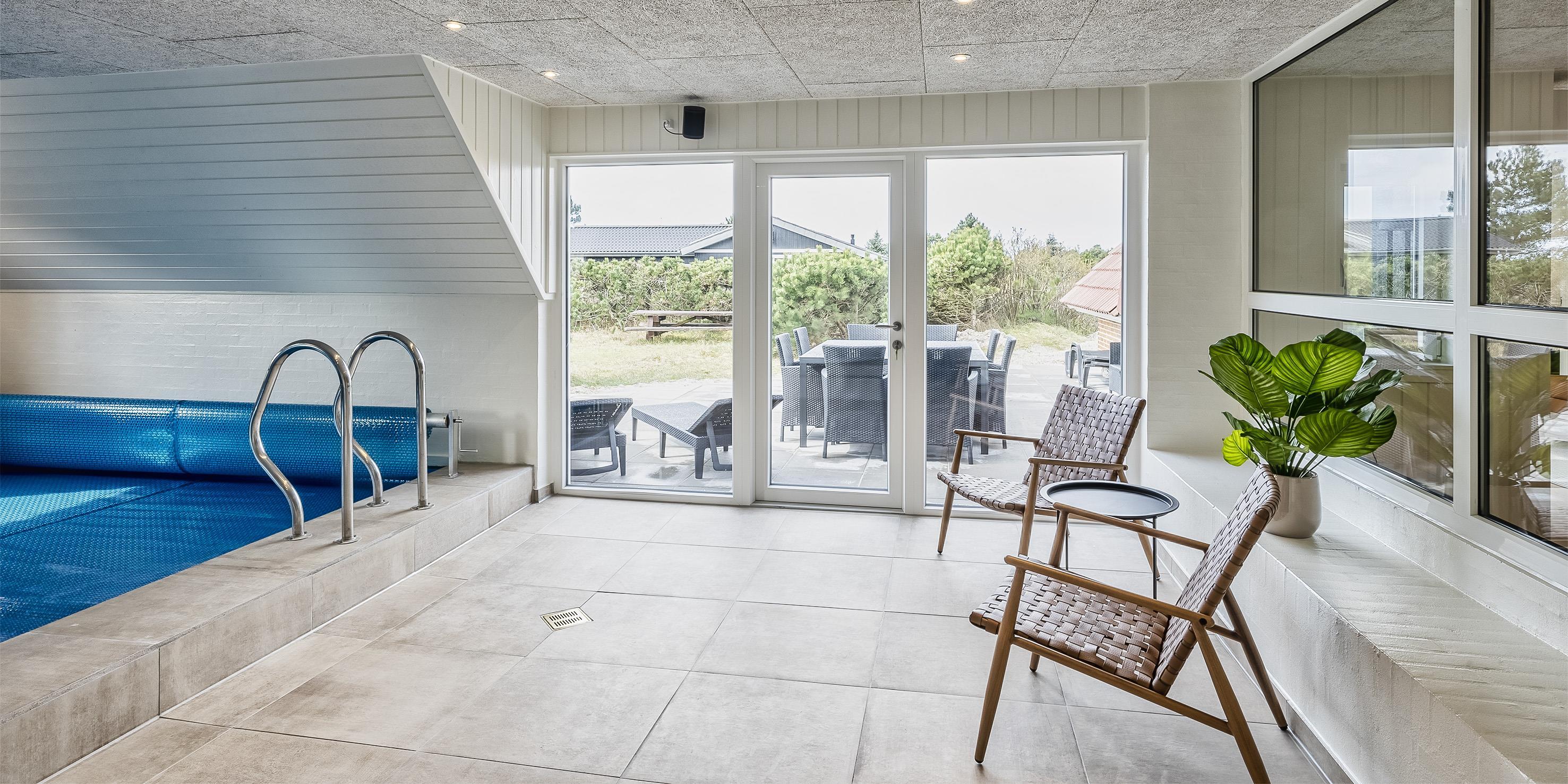 Meget flot poolhus på 182 m2 til 10 personer, beliggende på en dejlig naturgrund tæt på skovområde og søen ved Jafdalvej, ca. 900 meter fra stranden. Huset ligger på en blind vej.