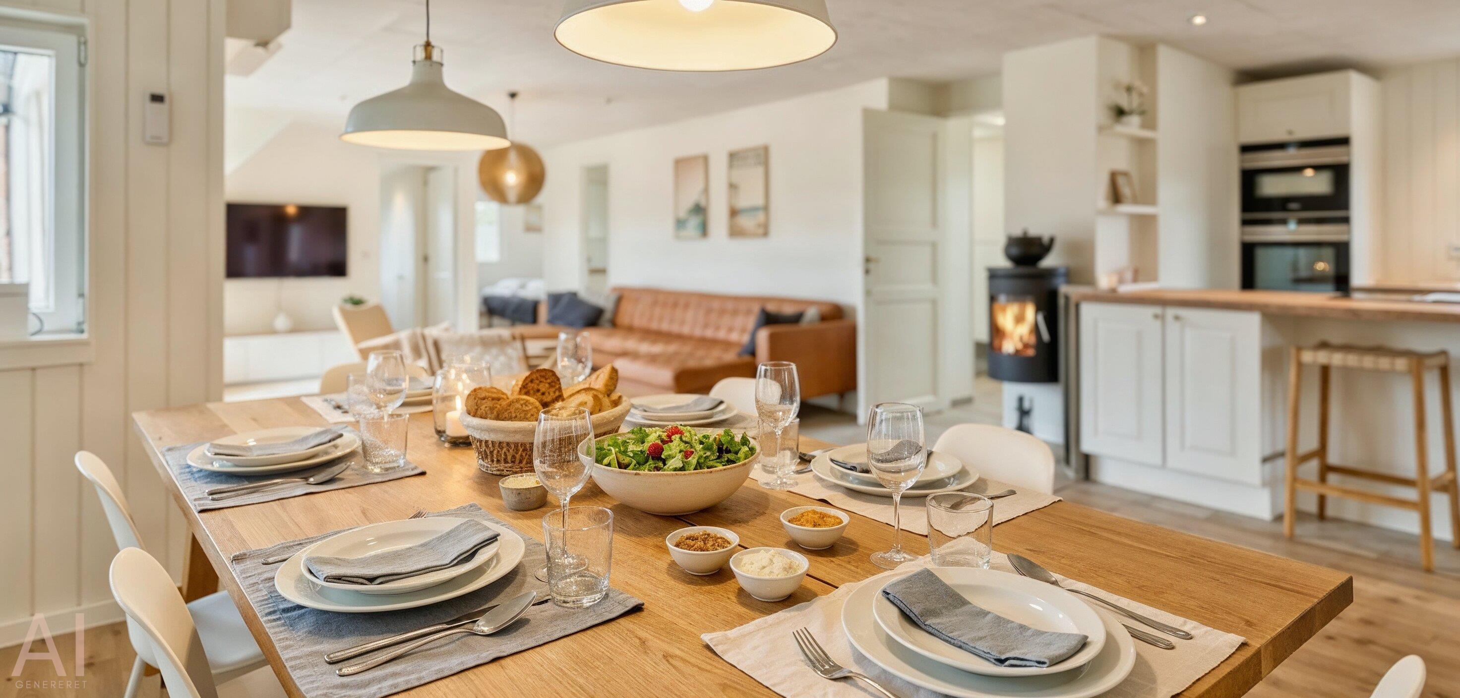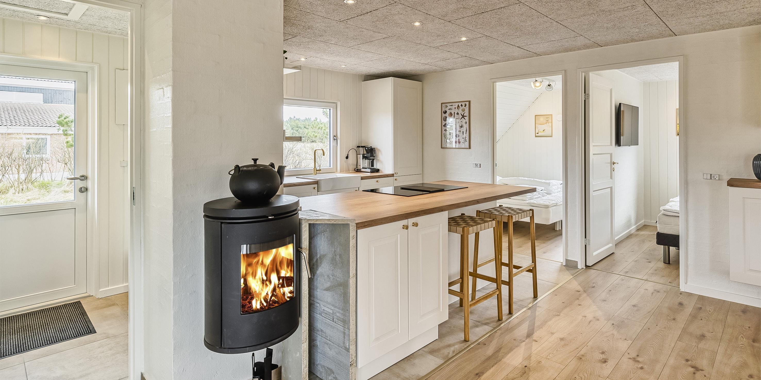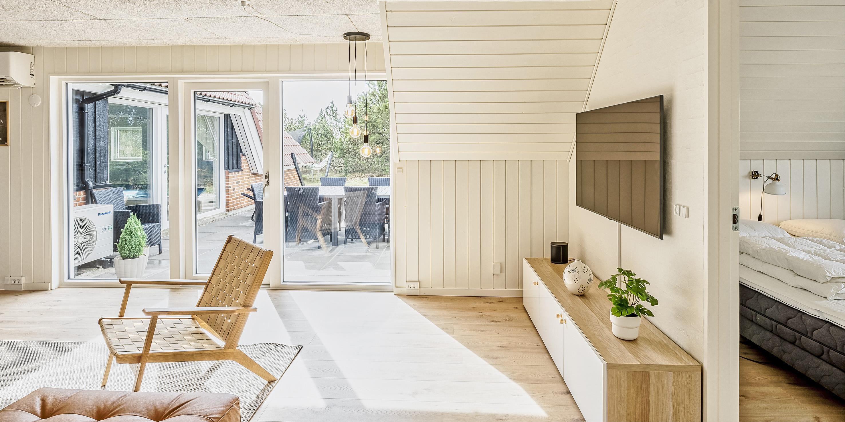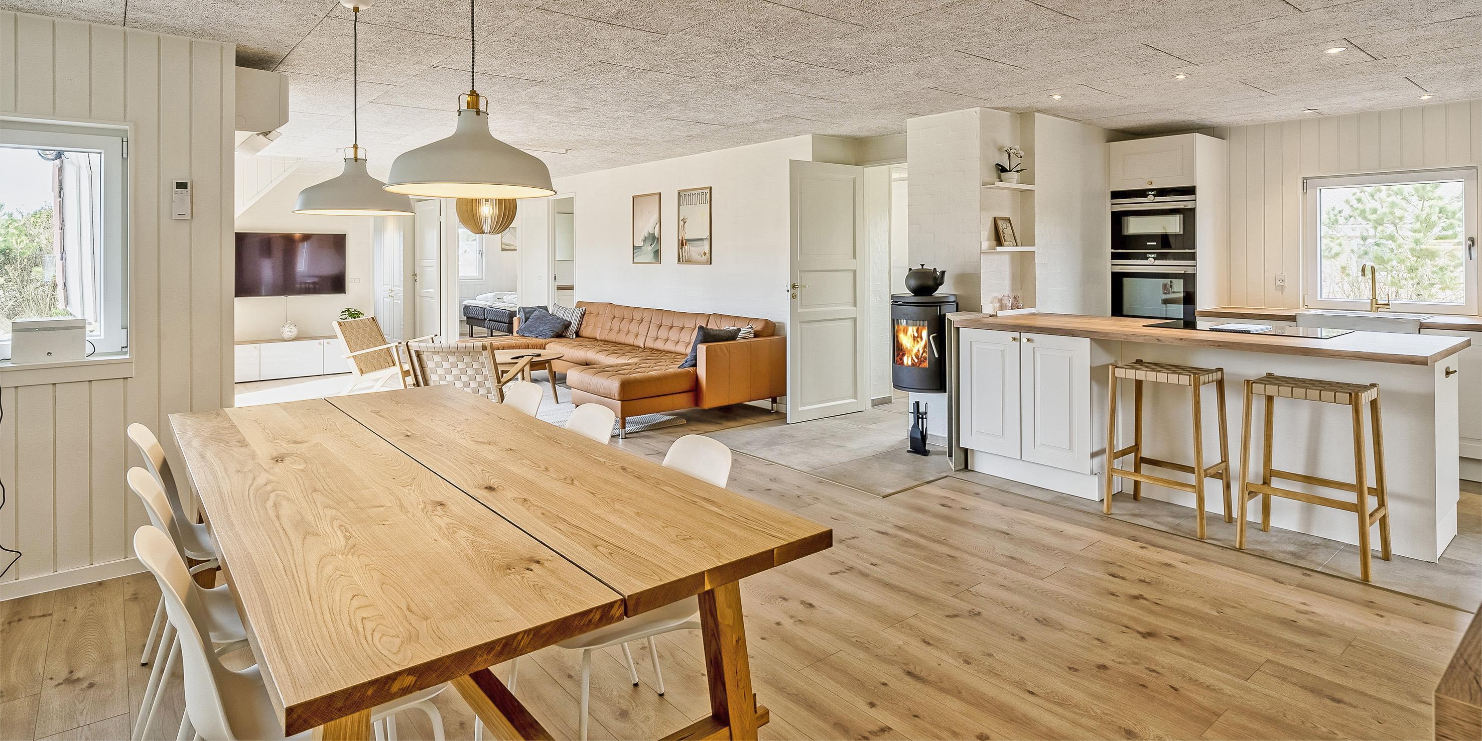Huset indeholder: Nyt lyst køkken med opvaskemaskine, mikroovn og køle-/frysekombination. Køkkenet er i åben forbindelse med spiseplads og stuen. Stuen er indrettet i lyse nordiske farver. Stue med ny brændeovn, Smart-tv og YouSee App, hvor de danske programmer kan streames fra. Fra spisepladsen har man udsyn til poolrummet. 5 soveværelser: DS + DS + DS + DS + 2S. 4 gode soveværelser med hver 1 dobbeltseng og 1 soveværelse med 2 enkeltsenge. 2 badeværelser med bruser/wc. Begge badeværelser er nyrenoverede og lysnet. Poolrum med swimmingpool (ca. 7,25 meter x 3,20 meter x 1,30 meter dybt), stor standvandsspa ( til ca. 6 personerog sauna. Huset har også en vaskemaskine og tørretumbler. Trådløs Internetadgang. Laderstander til el-bil.
