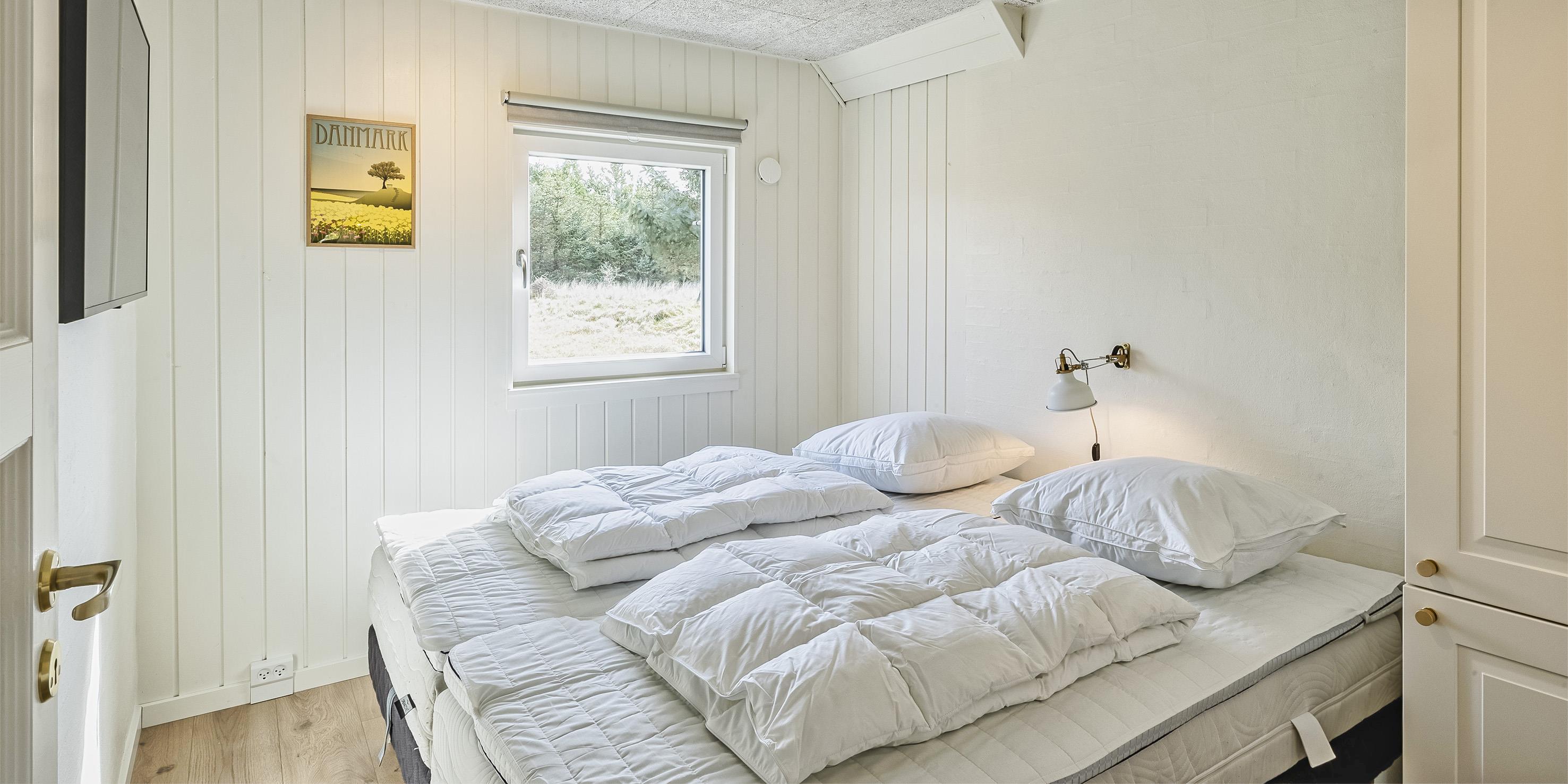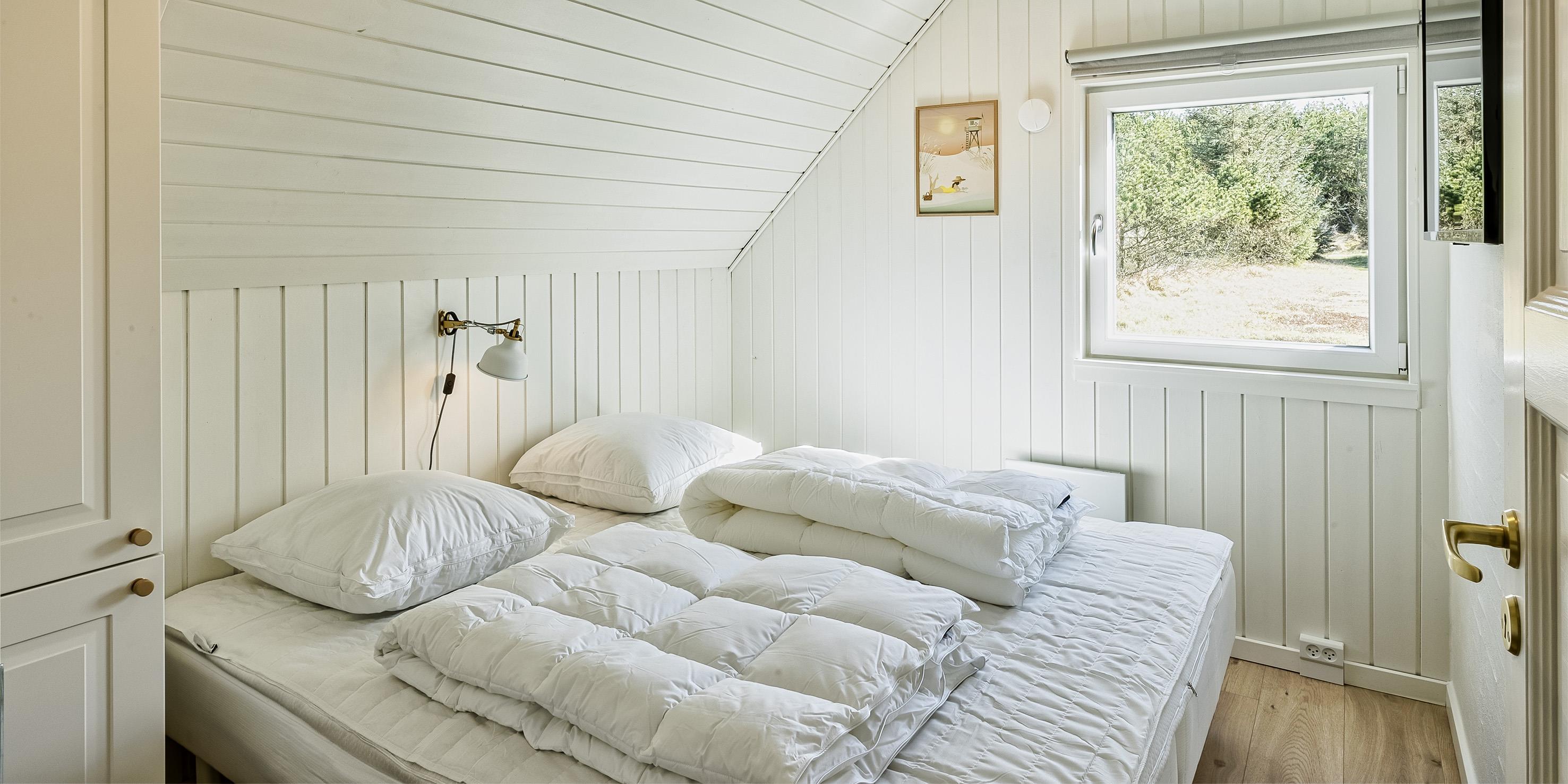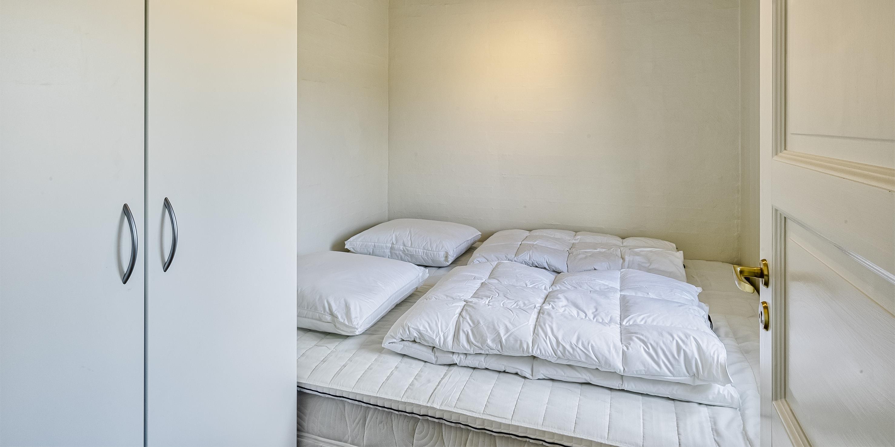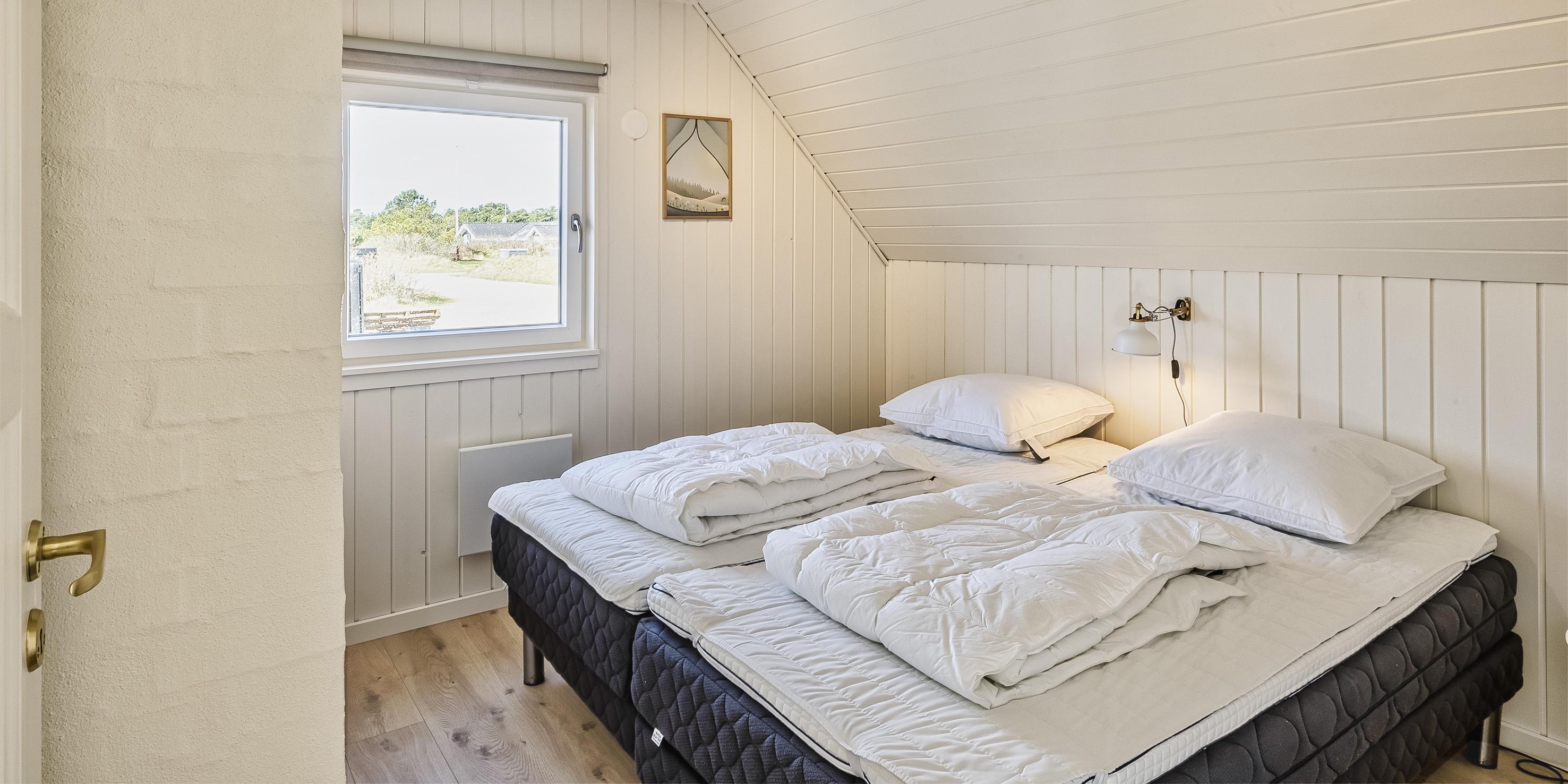 5 soveværelser. 4 med dobbeltseng 180x200 cm. 1 med 2 enkeltsenge (á 90x200 cm)