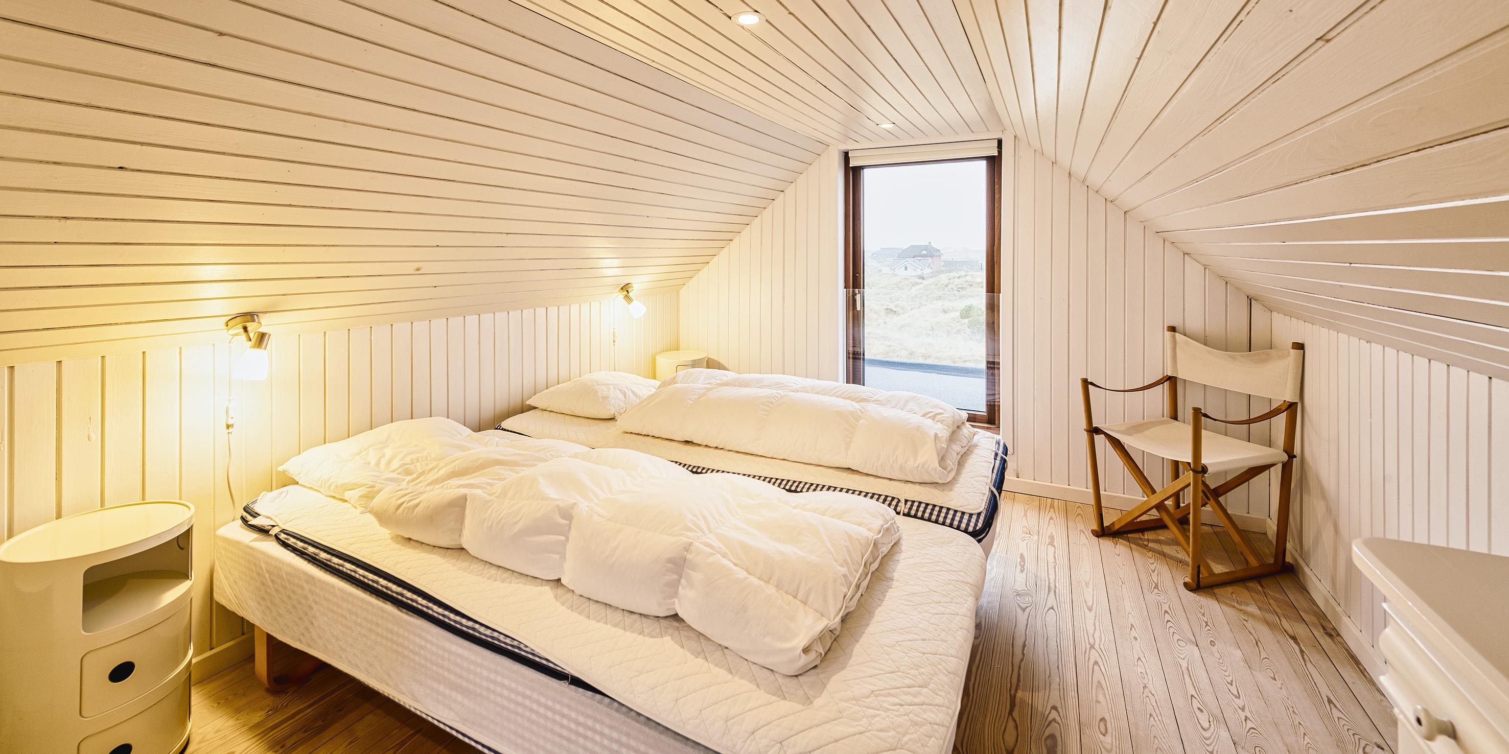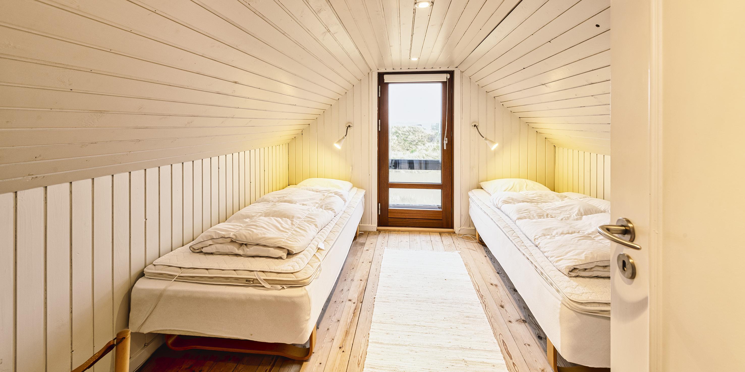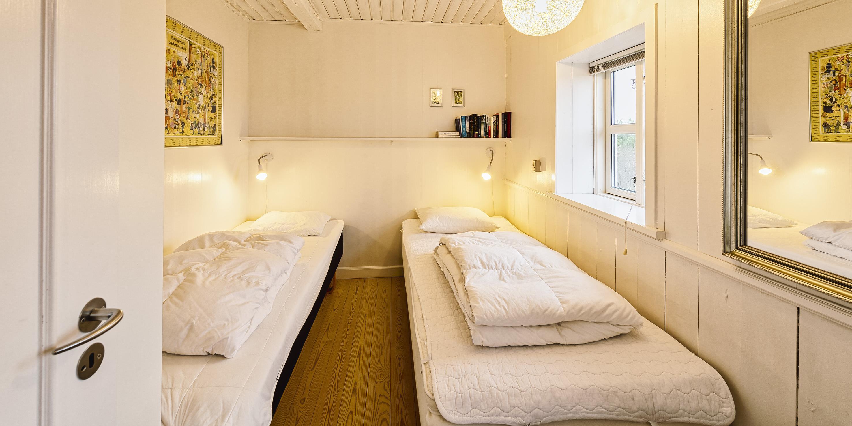 3 soveværelser. 1 med dobbeltseng 180x200 cm. 2 værelser med 2 enkeltsenge (á 90x200 cm)