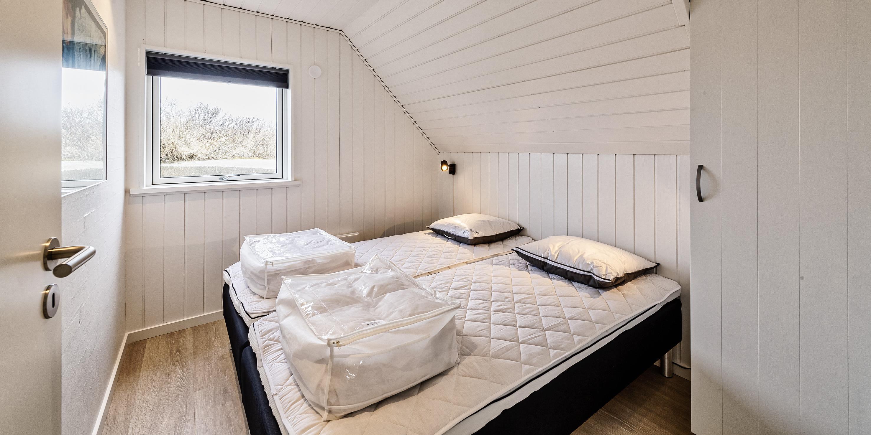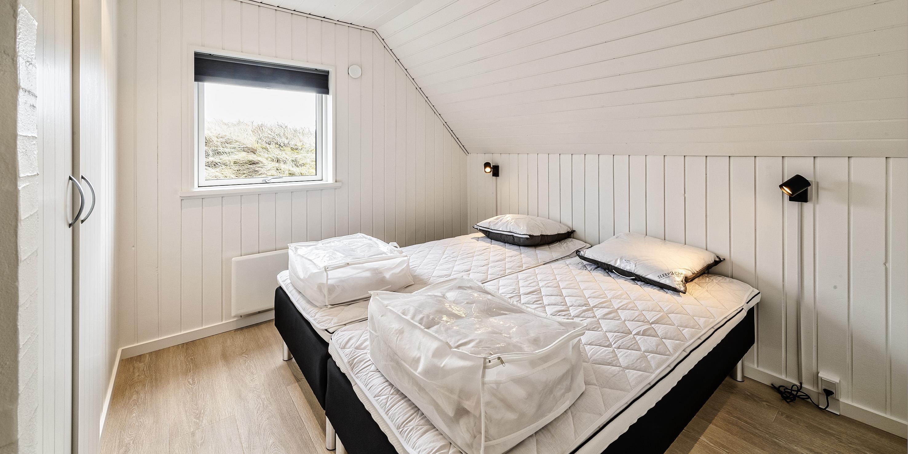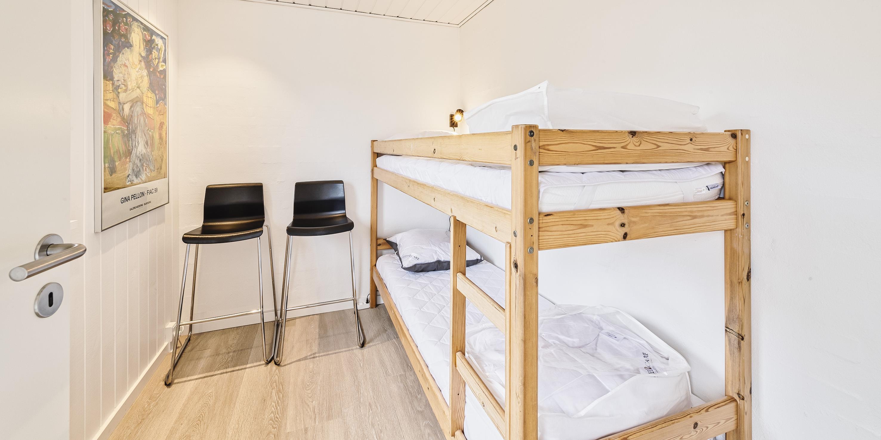 5 soveværelser. 4 med dobbeltseng 180x200 cm. 1 med køjeseng.