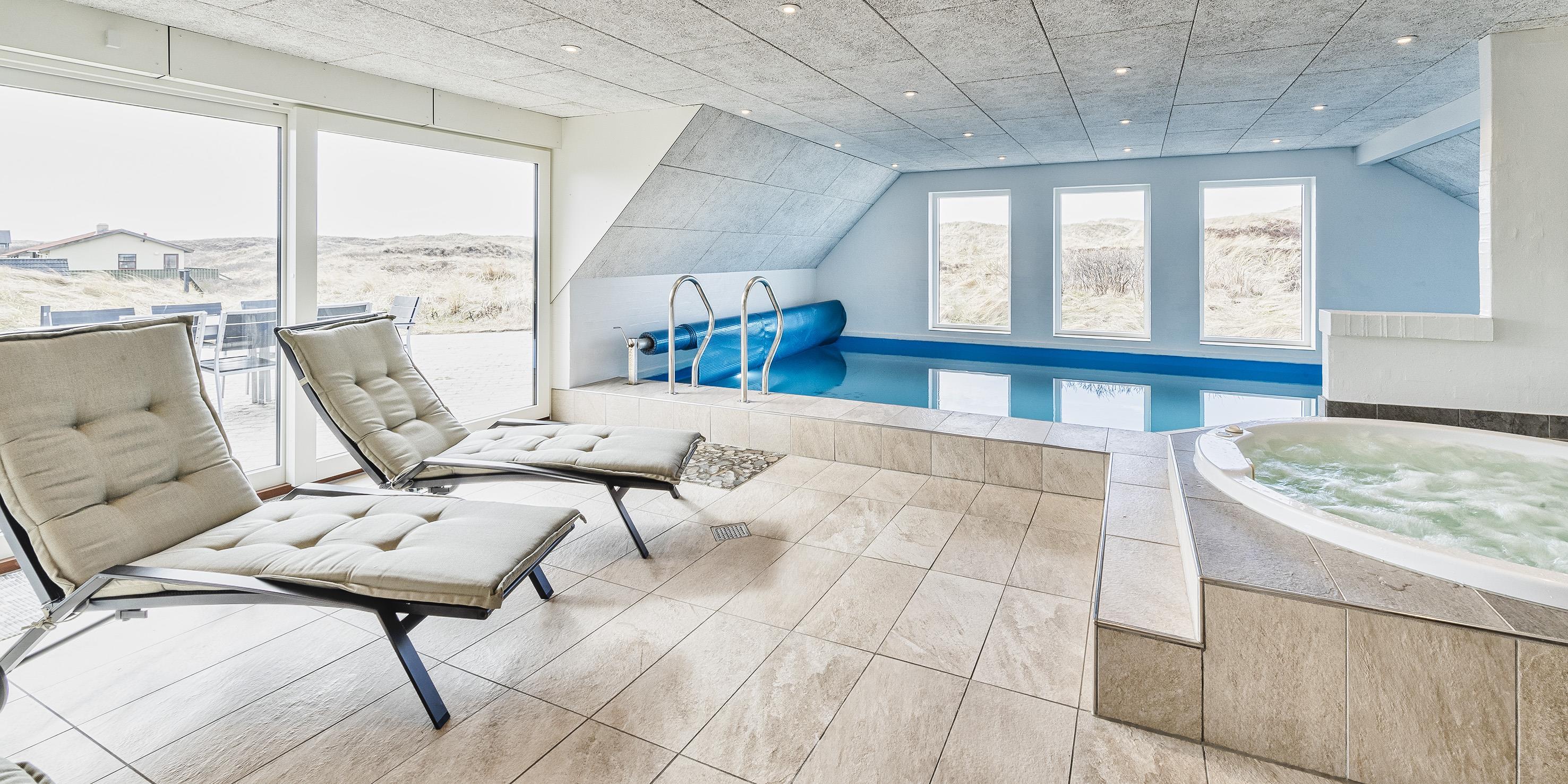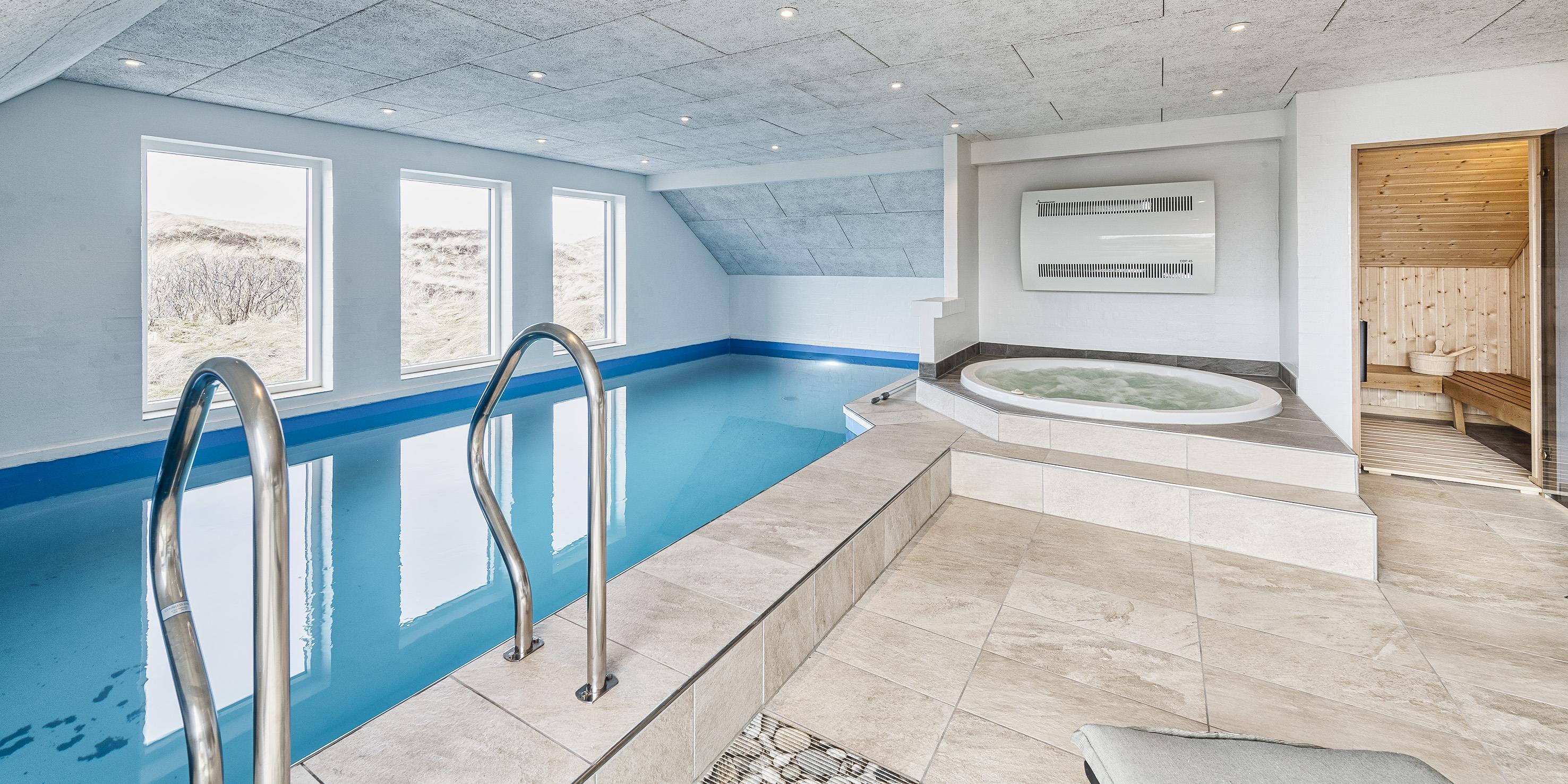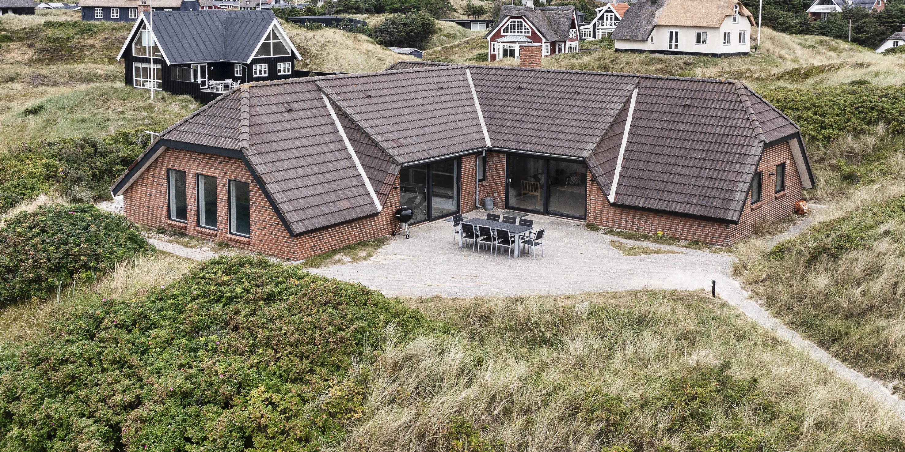 Lyst og renoveret pool hus til 10 personer, beliggende på toppen af en klitgrund der ligger ugeneret for forenden af en blind vej. Grunden er en 2000 m2 stor klitgrund med blot 100 meter til stranden. Hele herligheden er op grænsende til det frede klitlandskab og med en fantastisk ugeneret panoramaudsigt fra stuen og pool afdelingen.