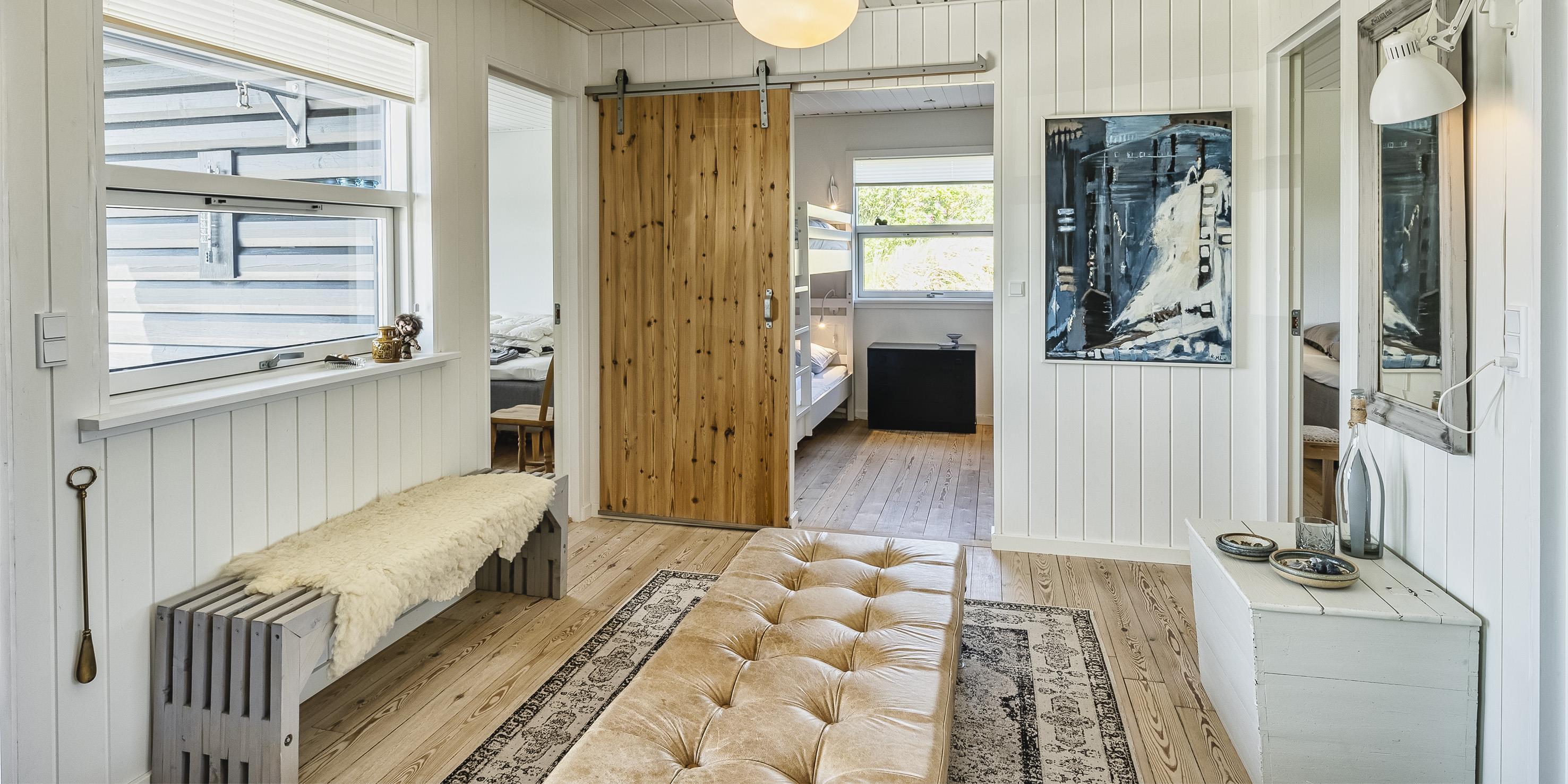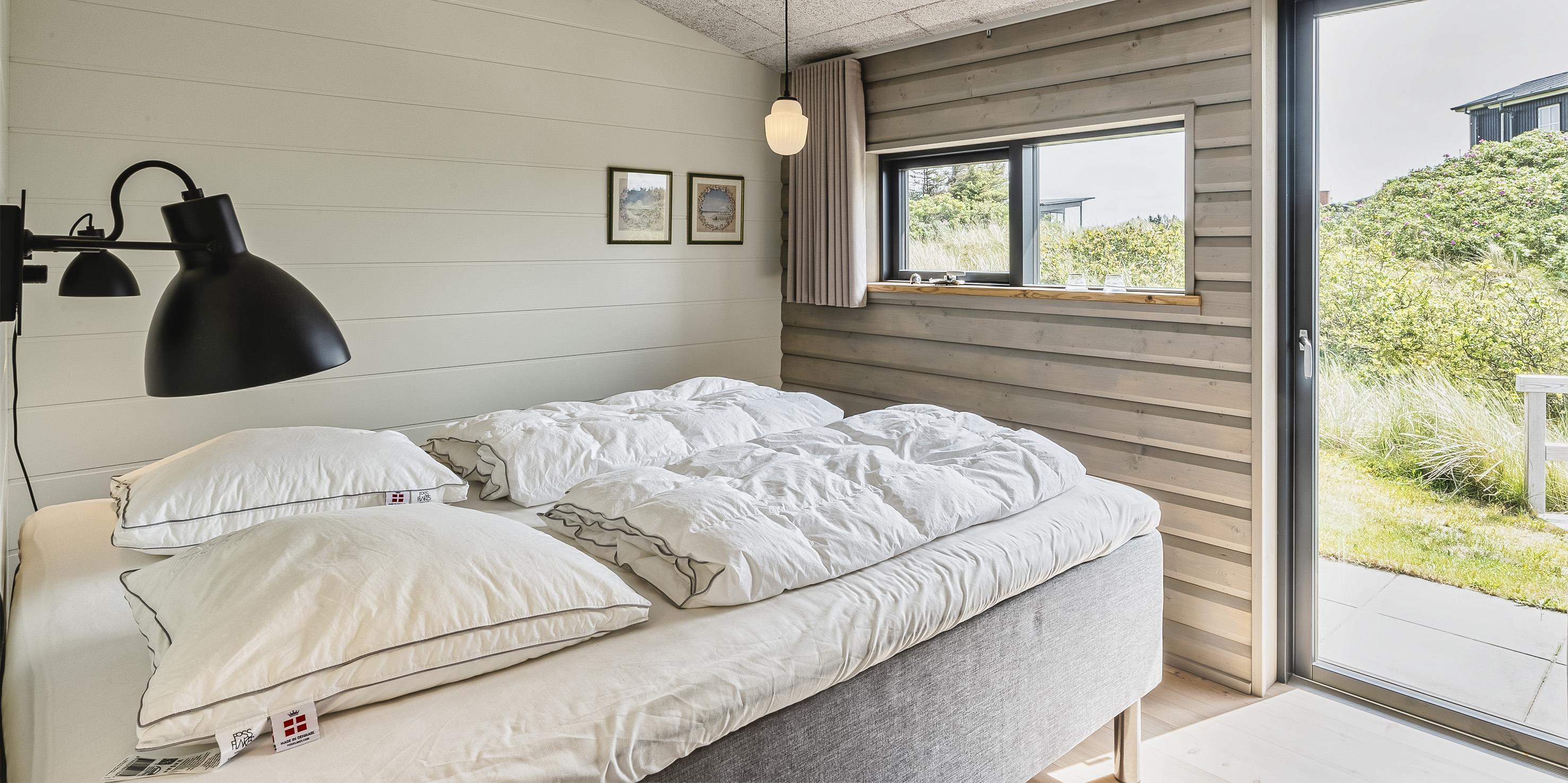 4 soveværelser. 3 med dobbeltseng 180x200 cm og 2 med køjeseng.