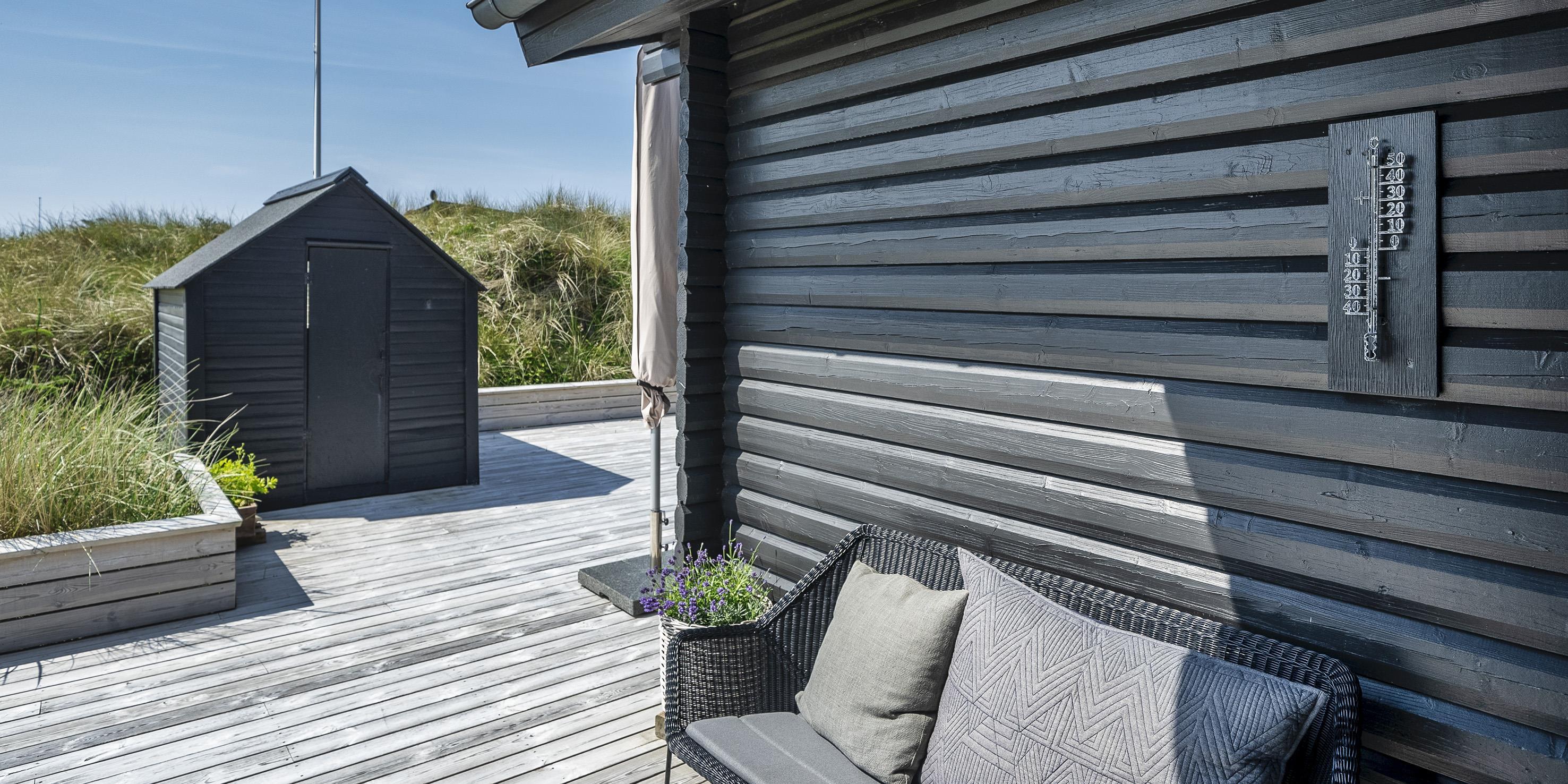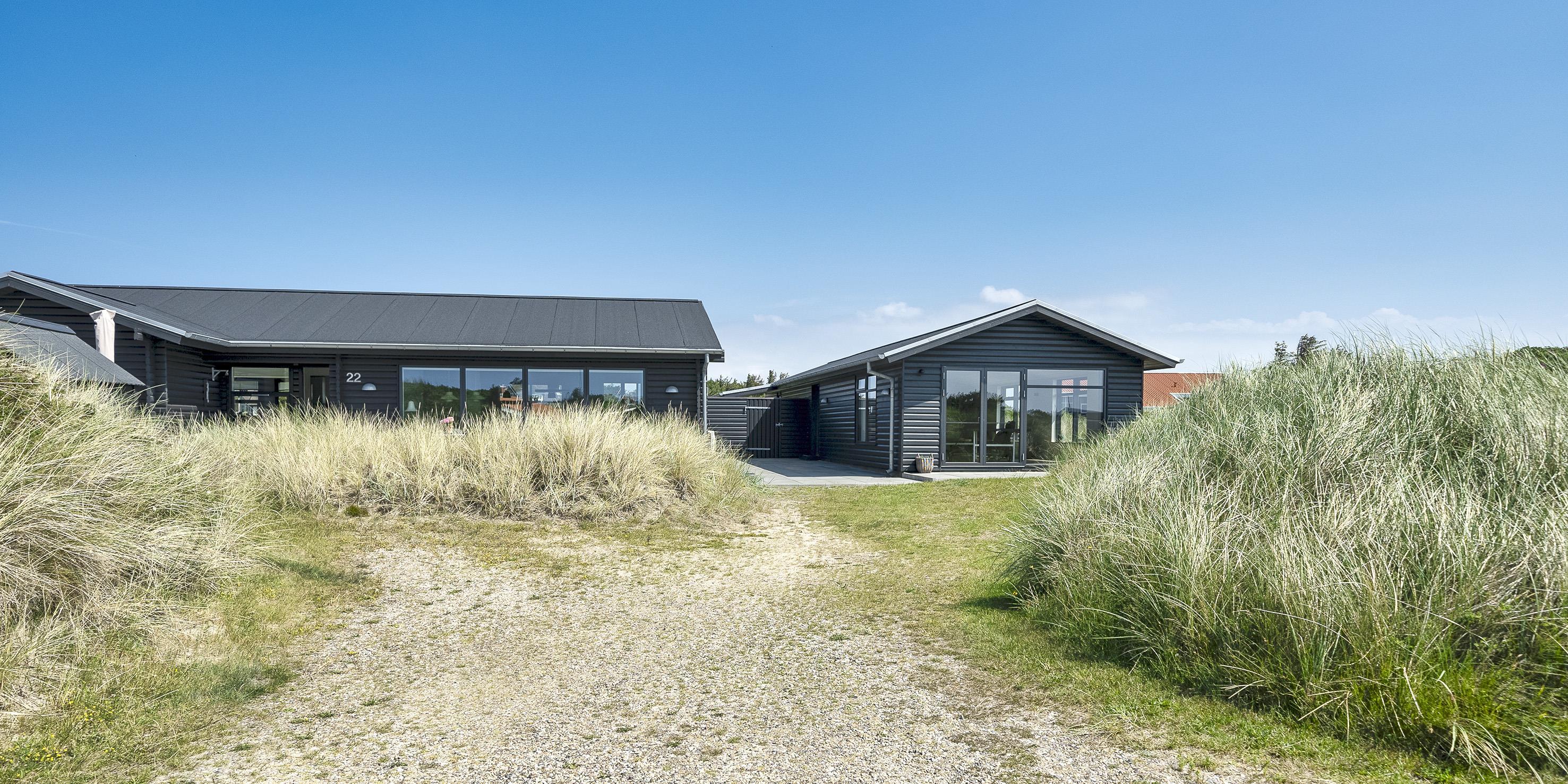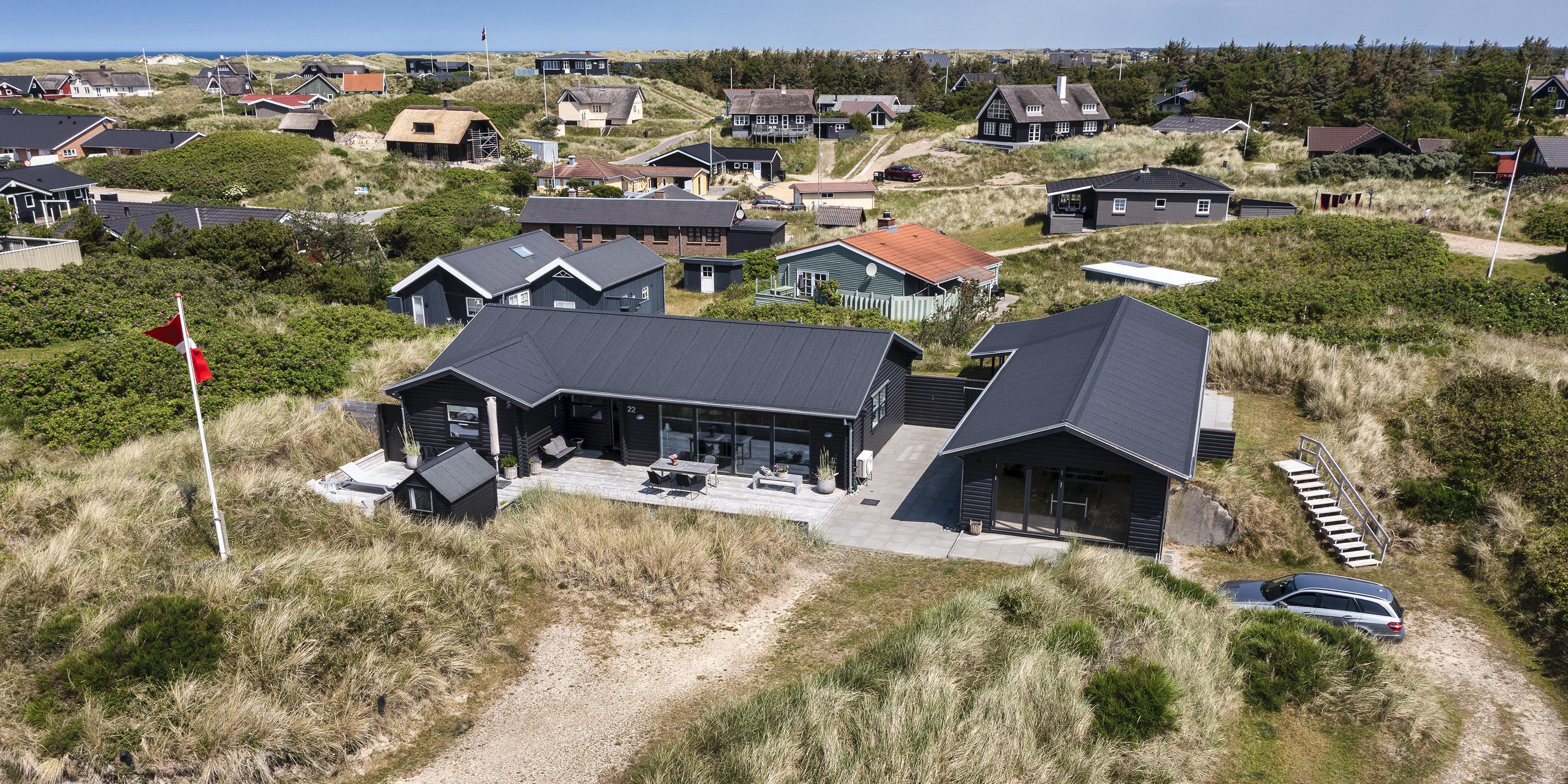 De udvendige faciliteter byder på flotte solnedgange, der kan nydes fra de omkringliggende terrasser. Sommerhuset ligger på en klitgrund, ca. 200 meter fra stranden samt kort afstand til indkøb og restaurant.