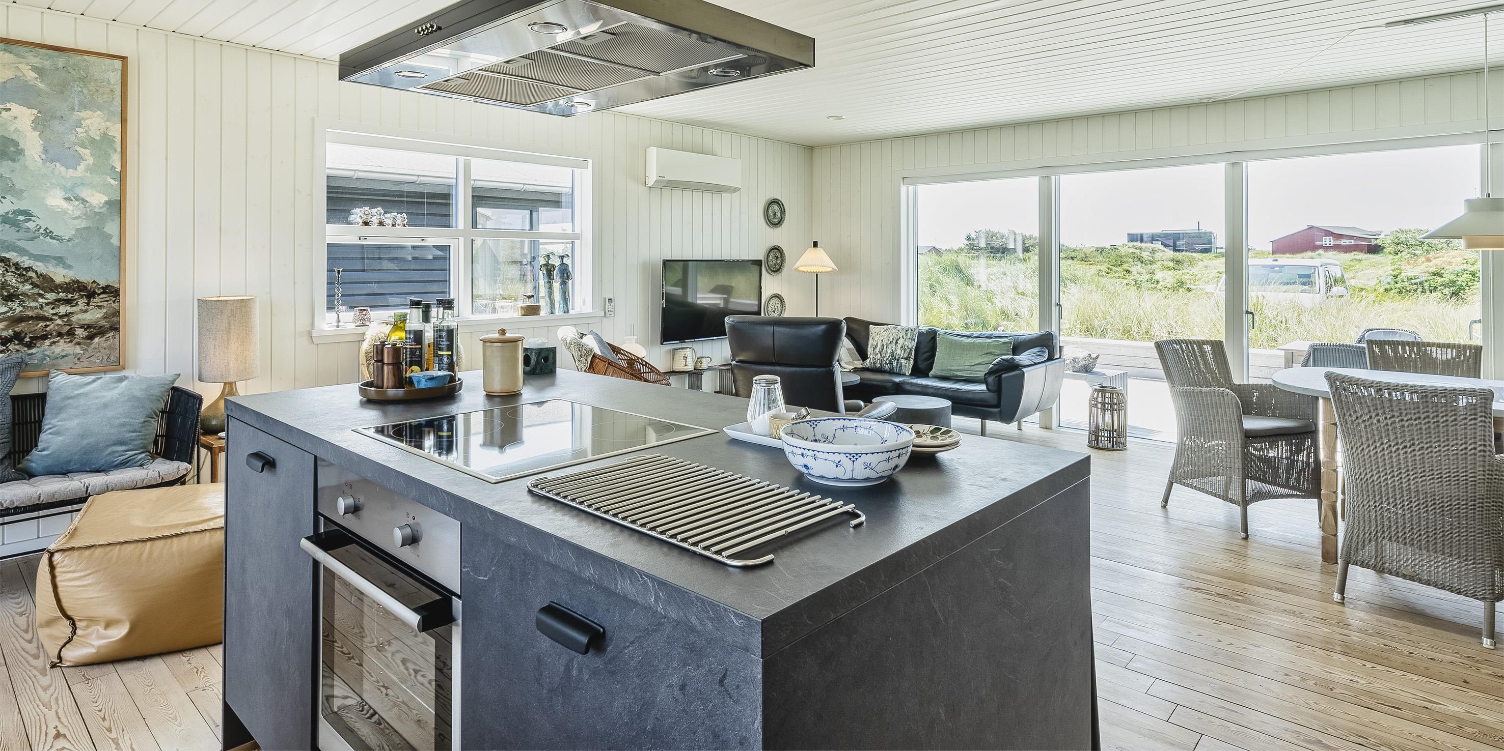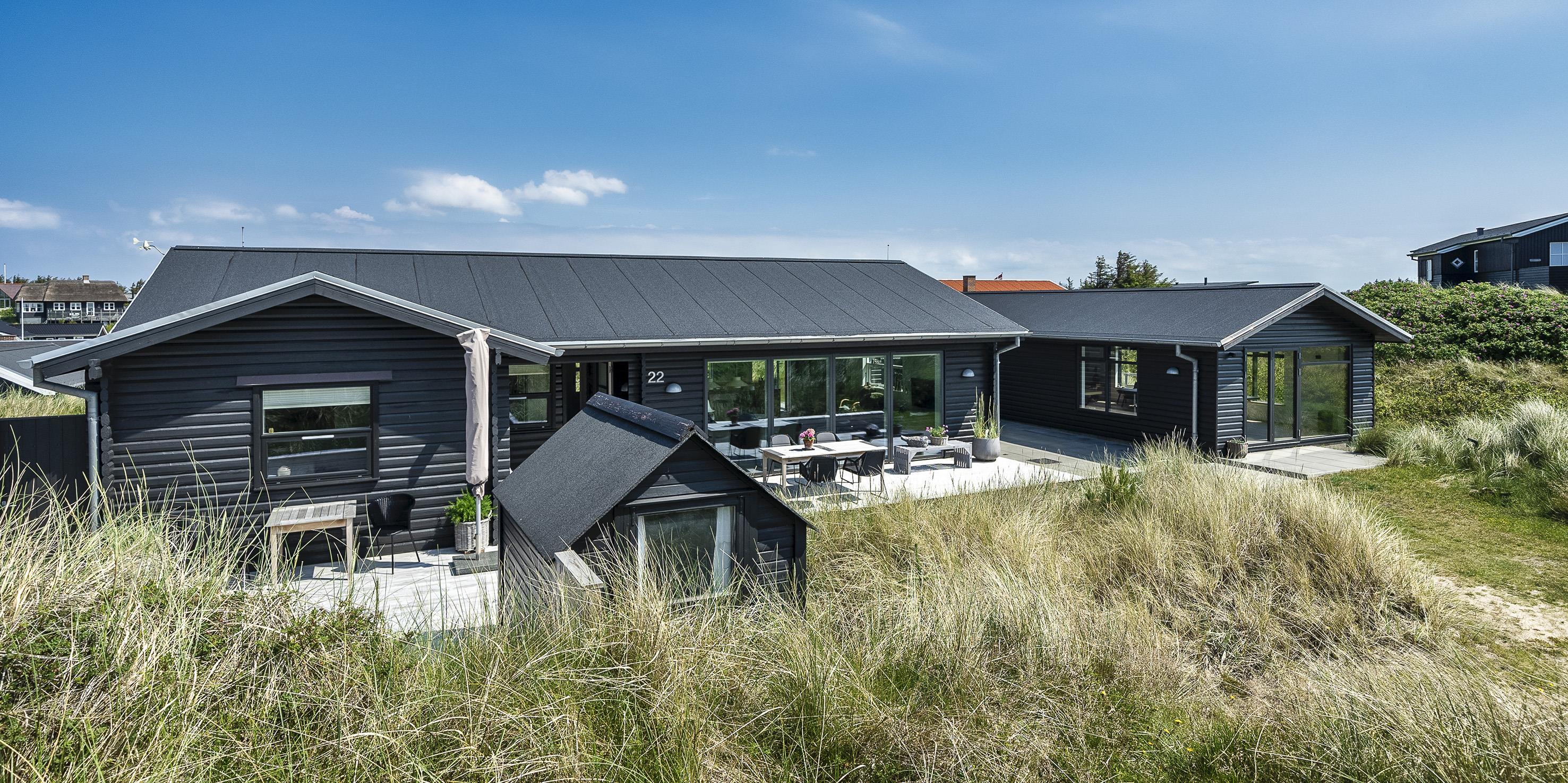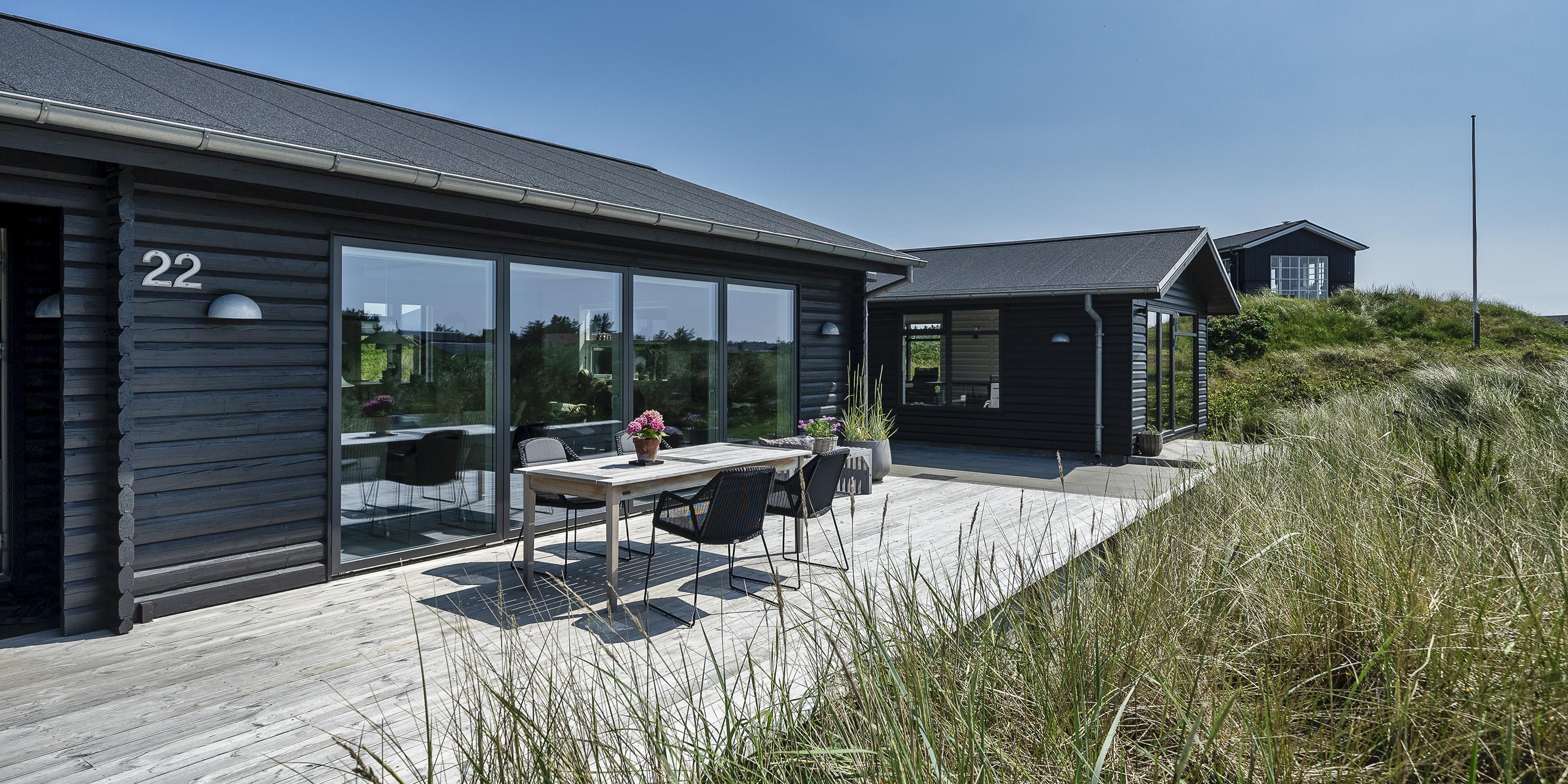 Spændende nyrenoveret sommerhus til 6 kræsne gæster samt 2 børn i Vejers Strand. Sommerhuset er renoveret i kvalitetsmaterialer, i et moderne og trendy design, som passer godt ind i omgivelserne. Sommerhuset er på i alt 185 m2 inklusive anneks.