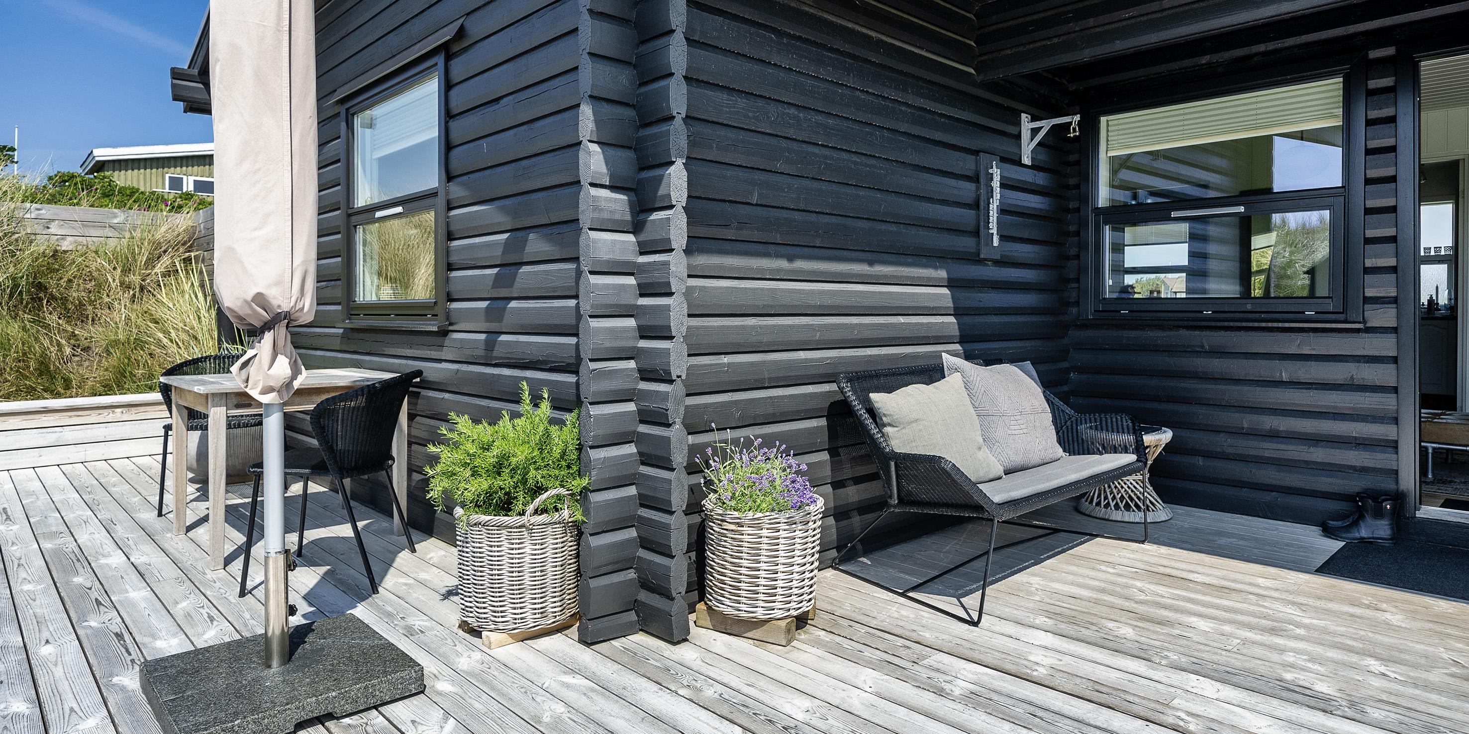 Huset har et dejlig stort terrassemiljø på alle sider af huset. Der er udebruser, der er tilsluttet om sommeren.