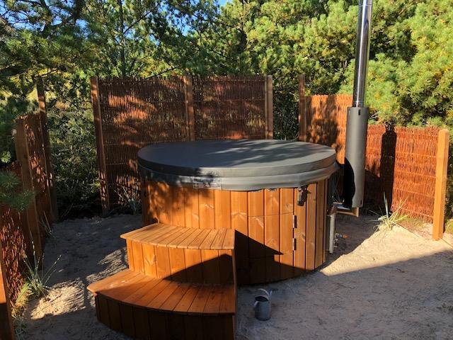 Udeområdet er designet til at give jer mange skønne timer udendørs. På den hyggelige naturgrund er der både tænkt på store og små feriegæster, så hele familien kan nyde gode stunder sammen. Højdepunktet er uden tvivl det dejlige vildmarksbad, hvor I kan slappe helt af under åben himmel, især om aftenen når stjernerne titter frem.