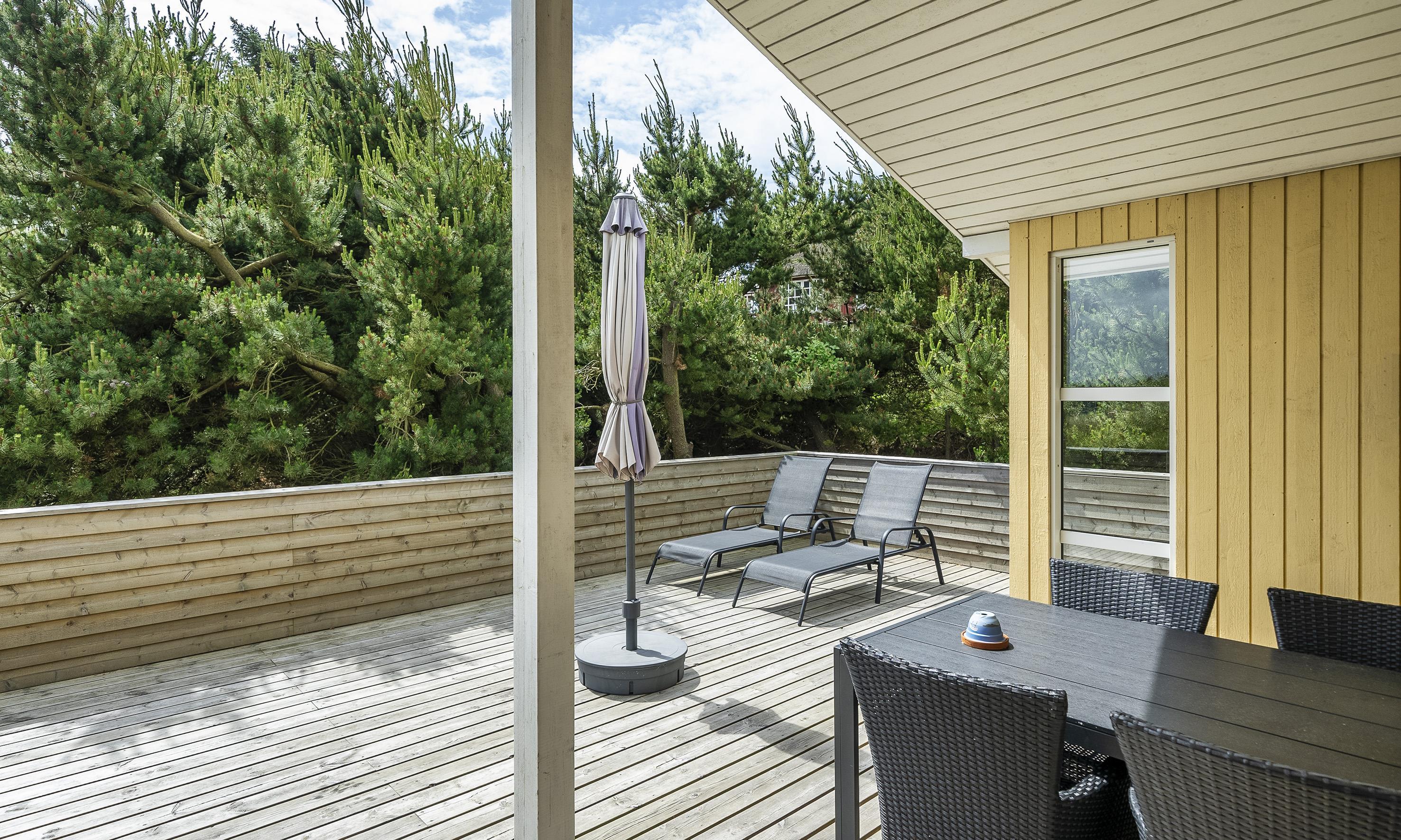 Sommerhuset har to terrasser, hvor I kan tilbringe tid i det dejlige ferievejr. Den østvendte terrasse er perfekt til morgenkaffen, mens den sydvendte terrasse giver jer mulighed for at nyde solen det meste af dagen. Her finder I havemøbler og liggestole, så I kan slappe af i solen, mens børnene leger i sandkassen eller gynger på gyngestativet. Om aftenen kan I samles til en lækker middag, tilberedt på grillen.