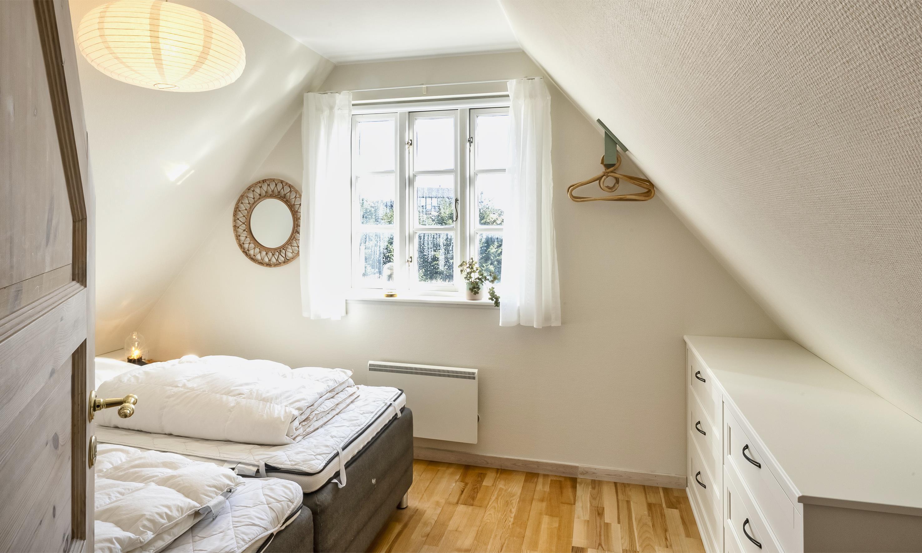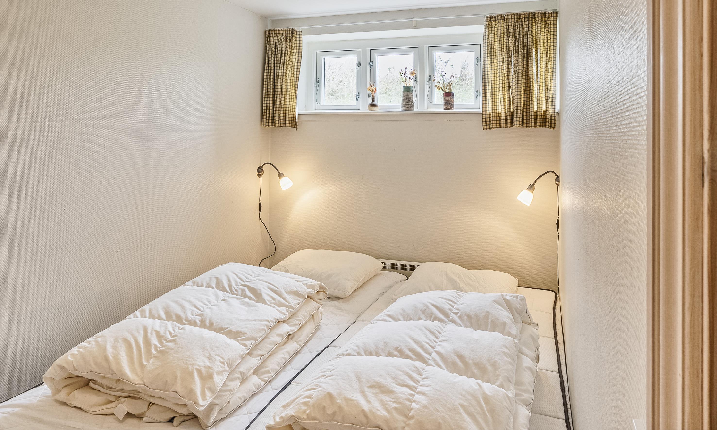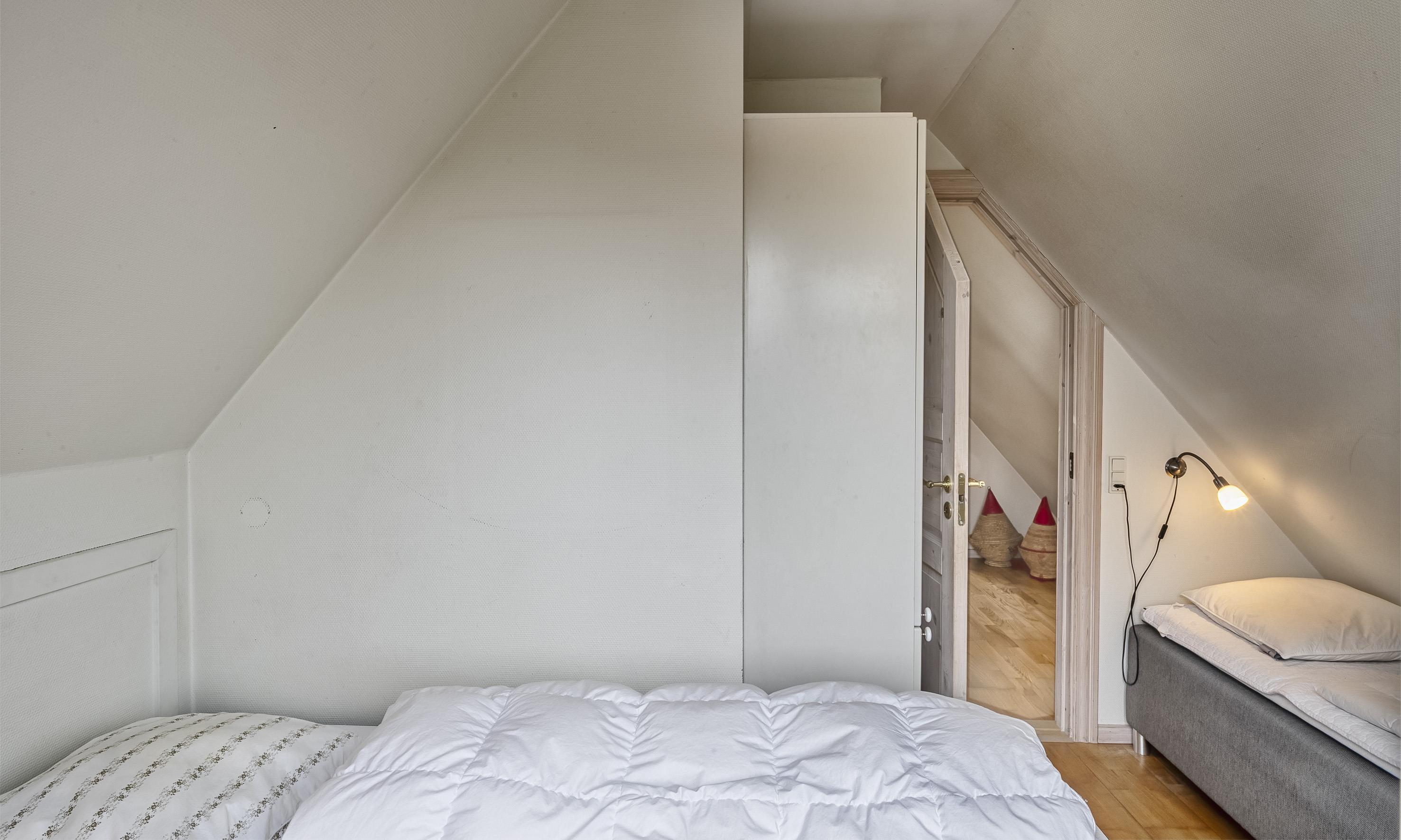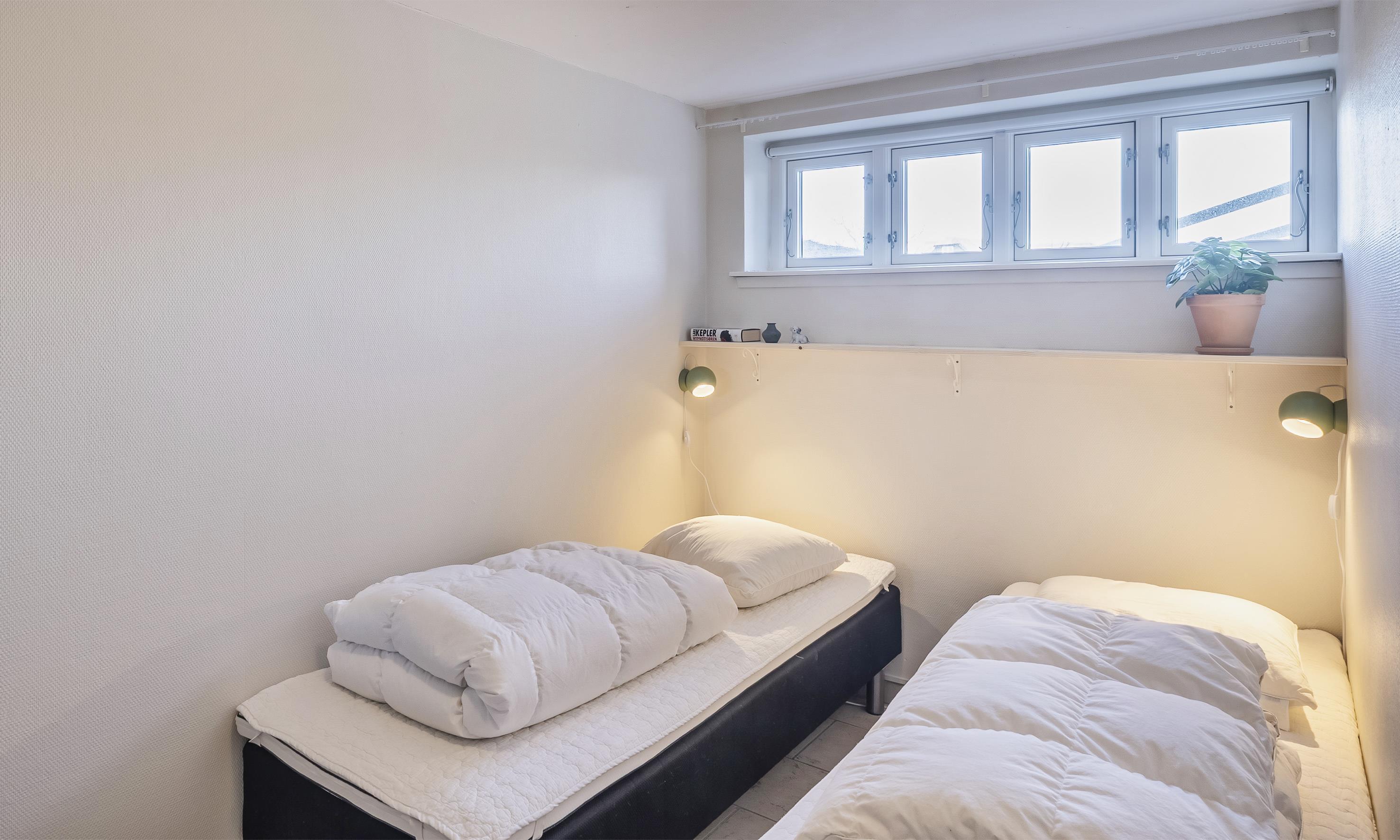 3 soveværelser. 2 med dobbeltseng 180x200 cm. 1 med 2 enkeltsenge (á 90x200 cm)