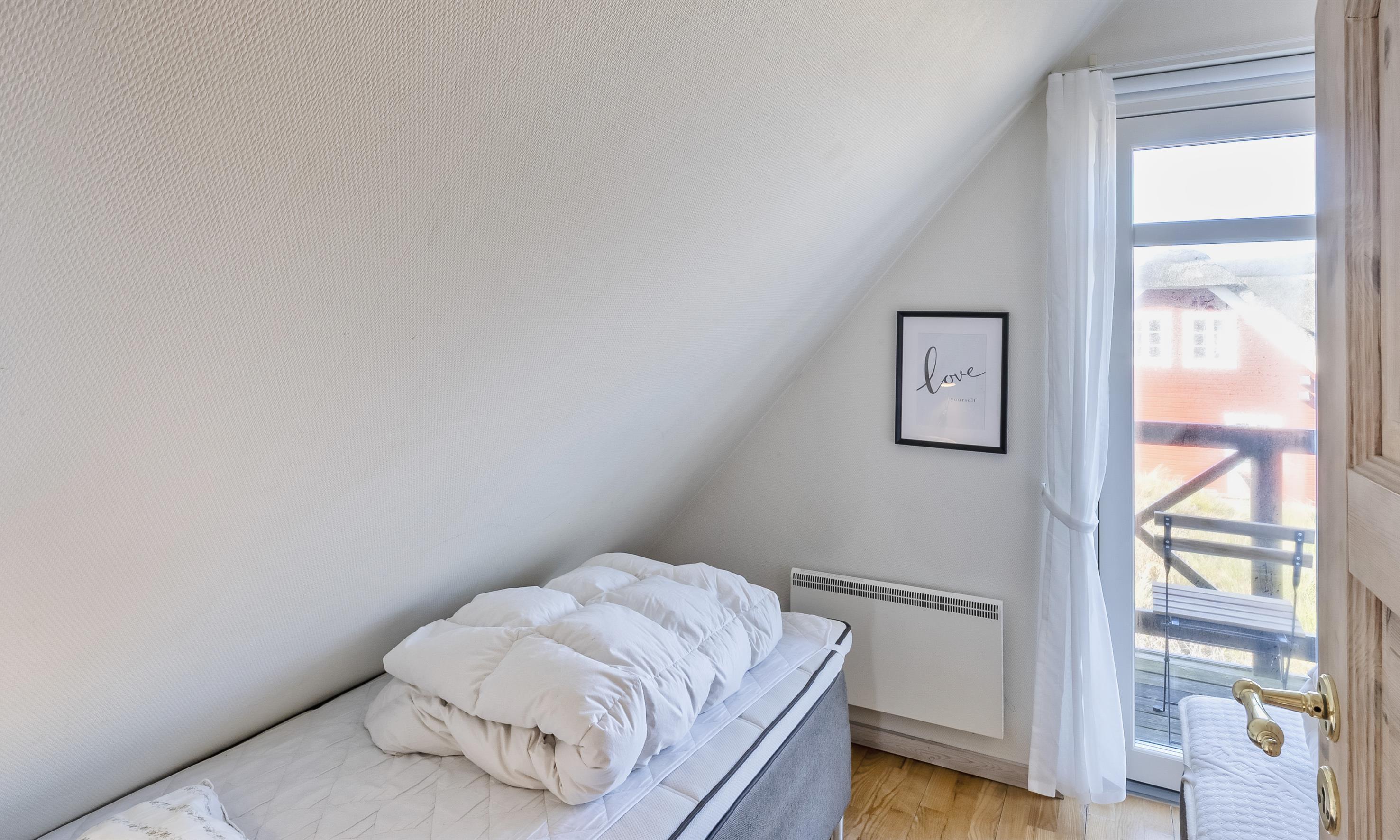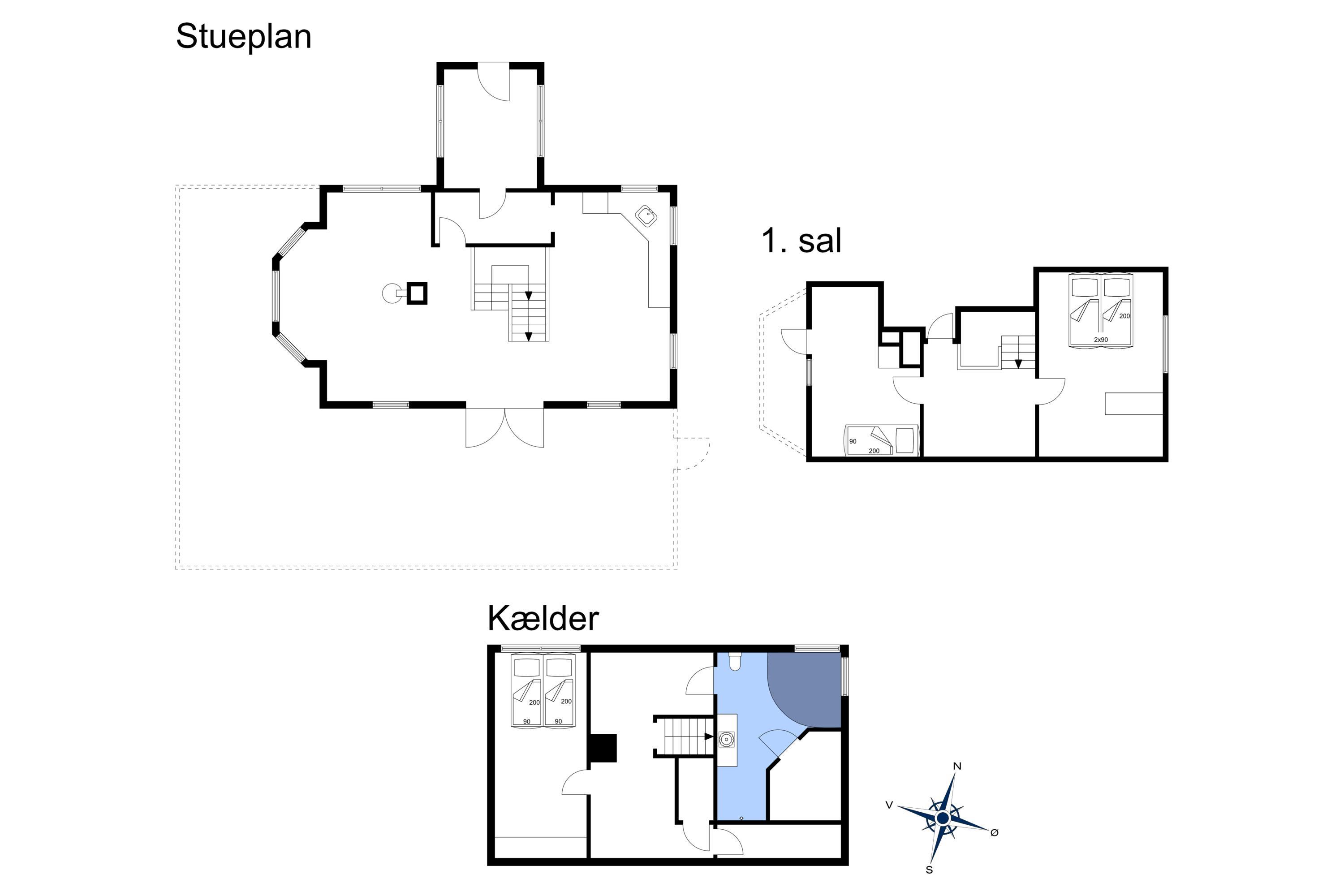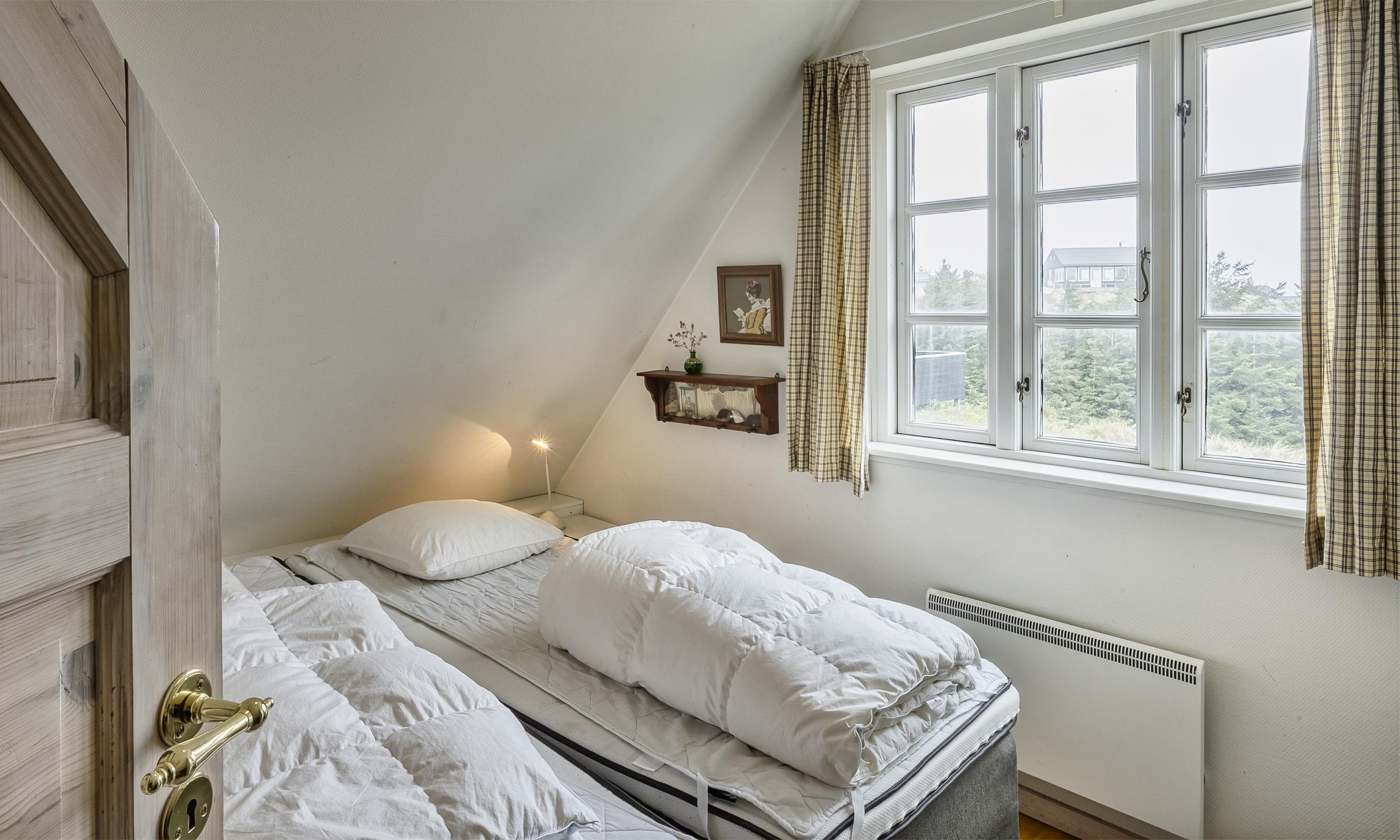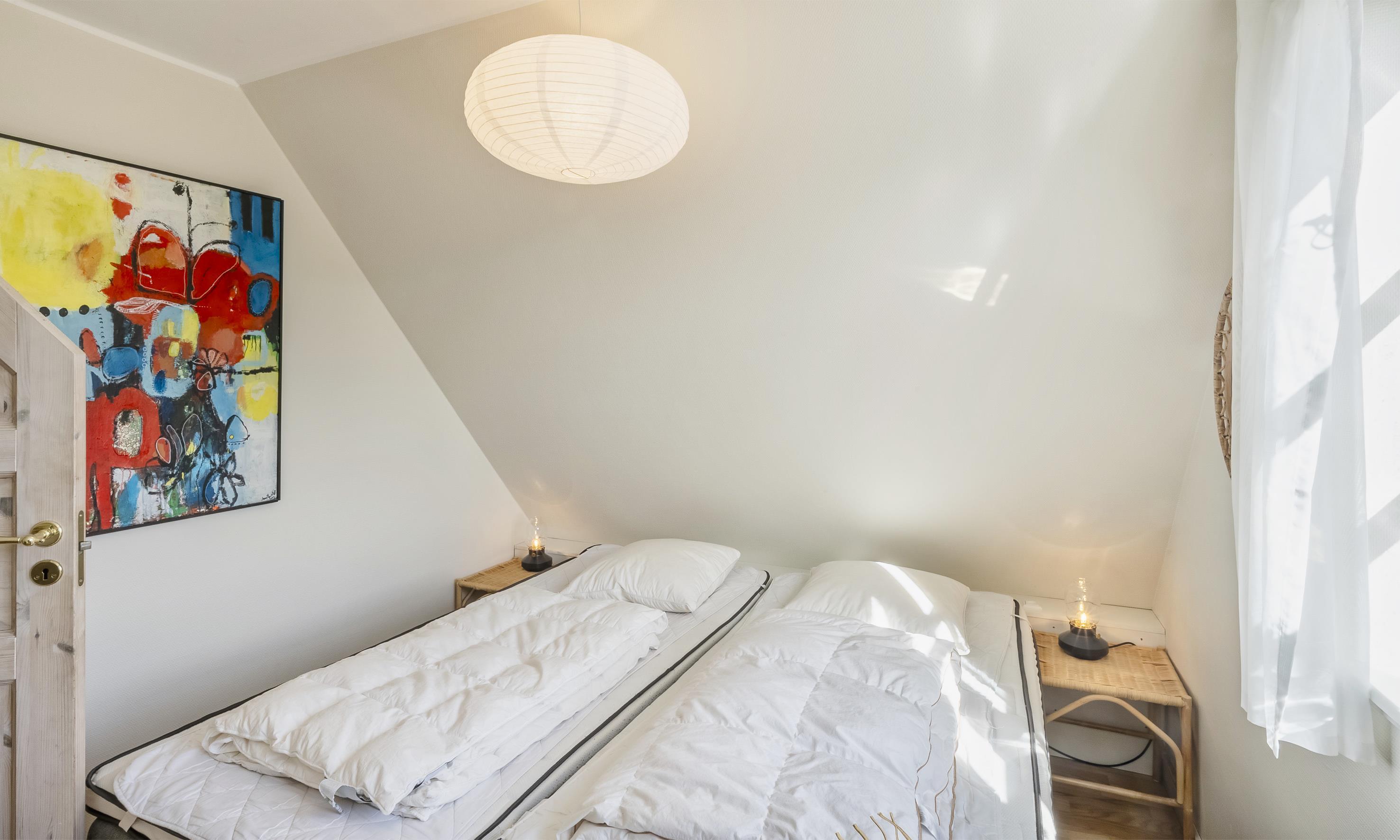 3 soveværelser. 2 med dobbeltseng 180x200 cm. 1 med 2 enkeltsenge (á 90x200 cm)