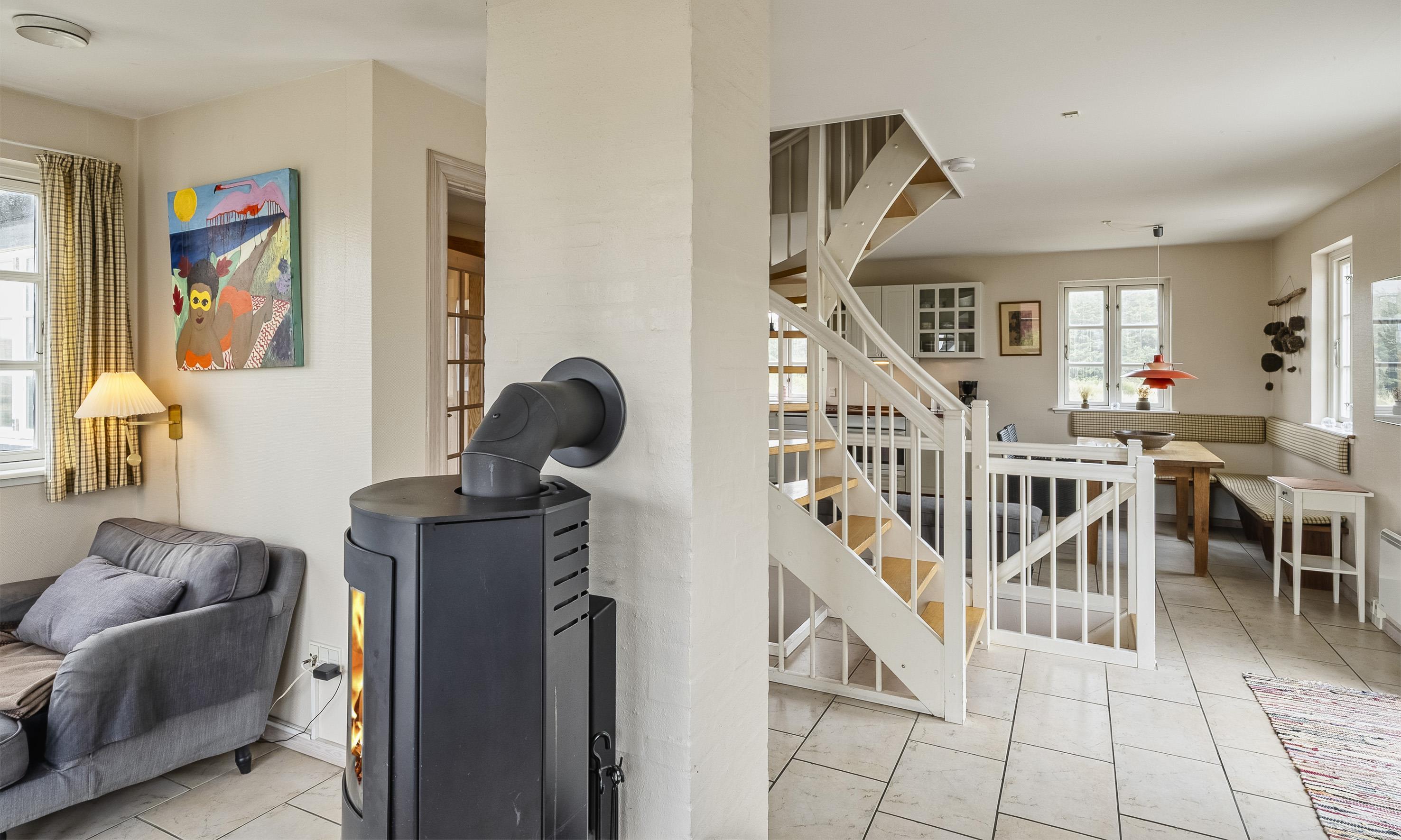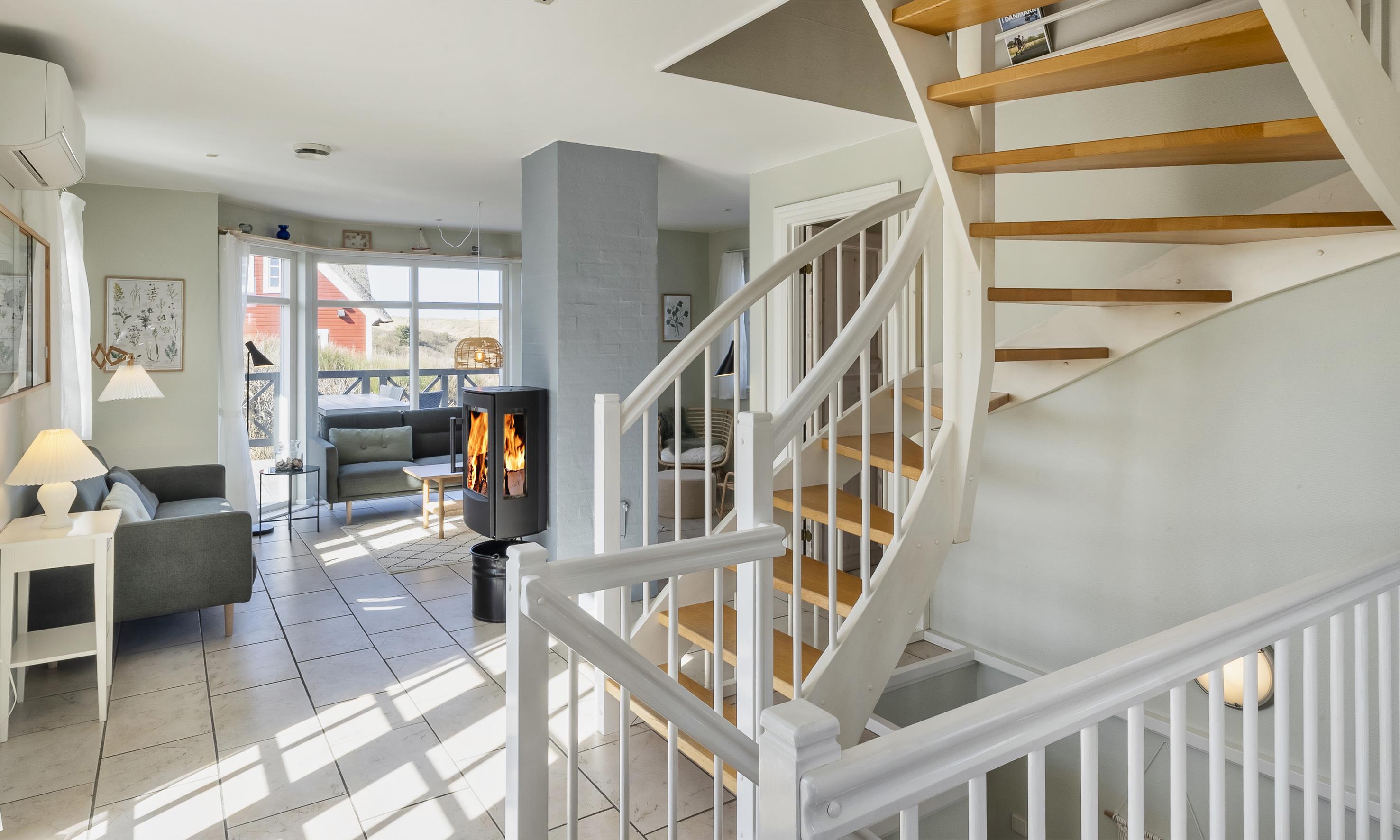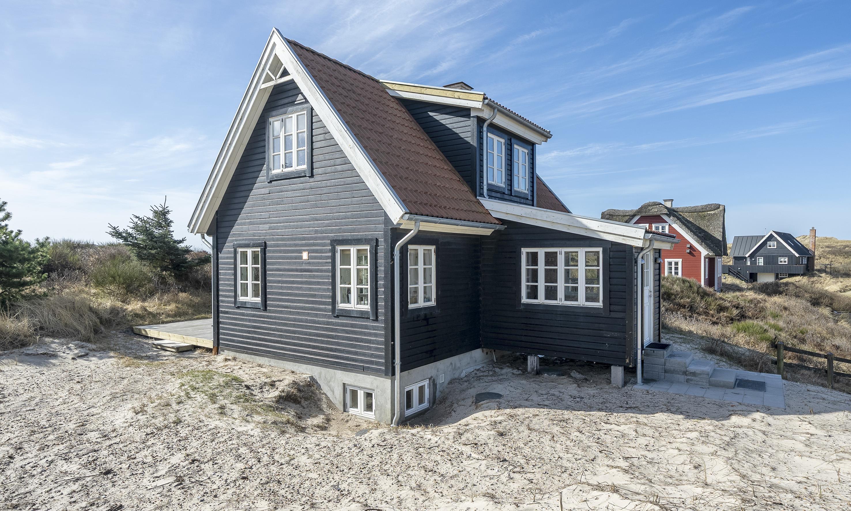 Yderst smagfuldt sommerhus i 3 etager til 6 personer, beliggende på en klitgrund, ca. 100 meter fra stranden. 3 soveværelser: DS + DS + 2S. Stueetagen: Køkken med spisekrog og opvaskemaskine. Stue med brændeovn, fjernsyn og parabol (DR programmer). Trådløs internetadgang. I kælderen: 1 soveværelse med 2 enkeltsenge og badeværelse med bruser/wc, spa, sauna, vaskemaskine og tørretumbler. På 1. sal: 1 soveværelse med 1 dobbeltseng og 1 soveværelse med 2 enkeltsenge. Badeværelse med bruser/wc. Stor dejlig Terrasse. Rygning er ikke tilladt. Byggeår 2002.