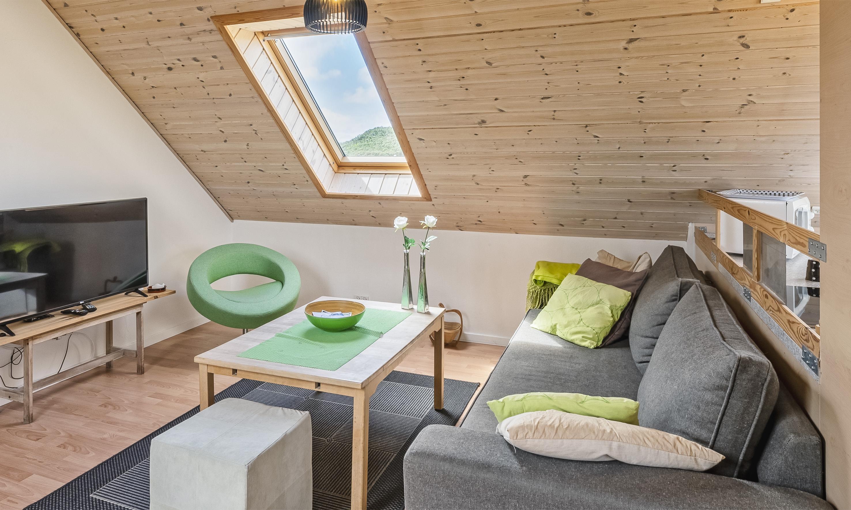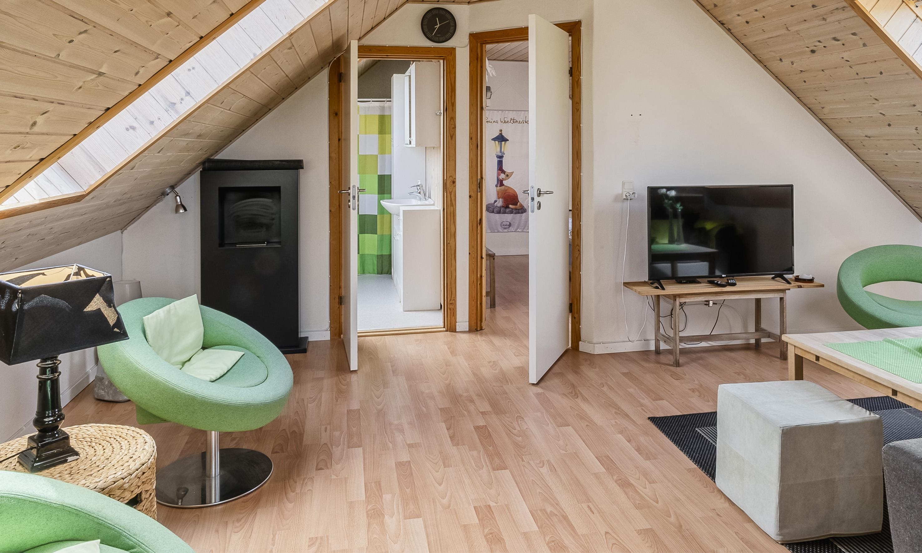 Lejligheden blev renoveret i 2015 og er hyggeligt indrettet. Kan rumme op til 3 personer. Soveværelset har en dobbeltseng, mens stuen byder på en sovesofa (DS + 1ES). Det åbne køkken er fuldt udstyret og ideelt til at tilberede lækre måltider, som I kan nyde på terrassen med havemøbler og en fantastisk udsigt over det maleriske sommerhusområde og den åbne natur. Derudover stue og spiseplads.