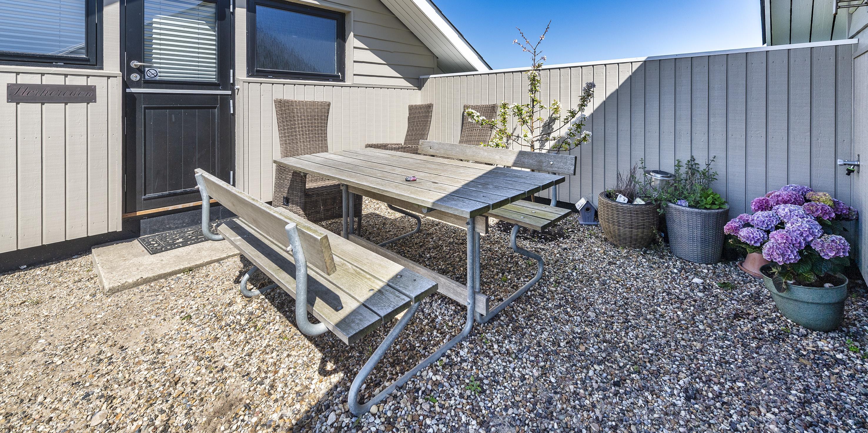 Fri parkering uden for ferieboligen.