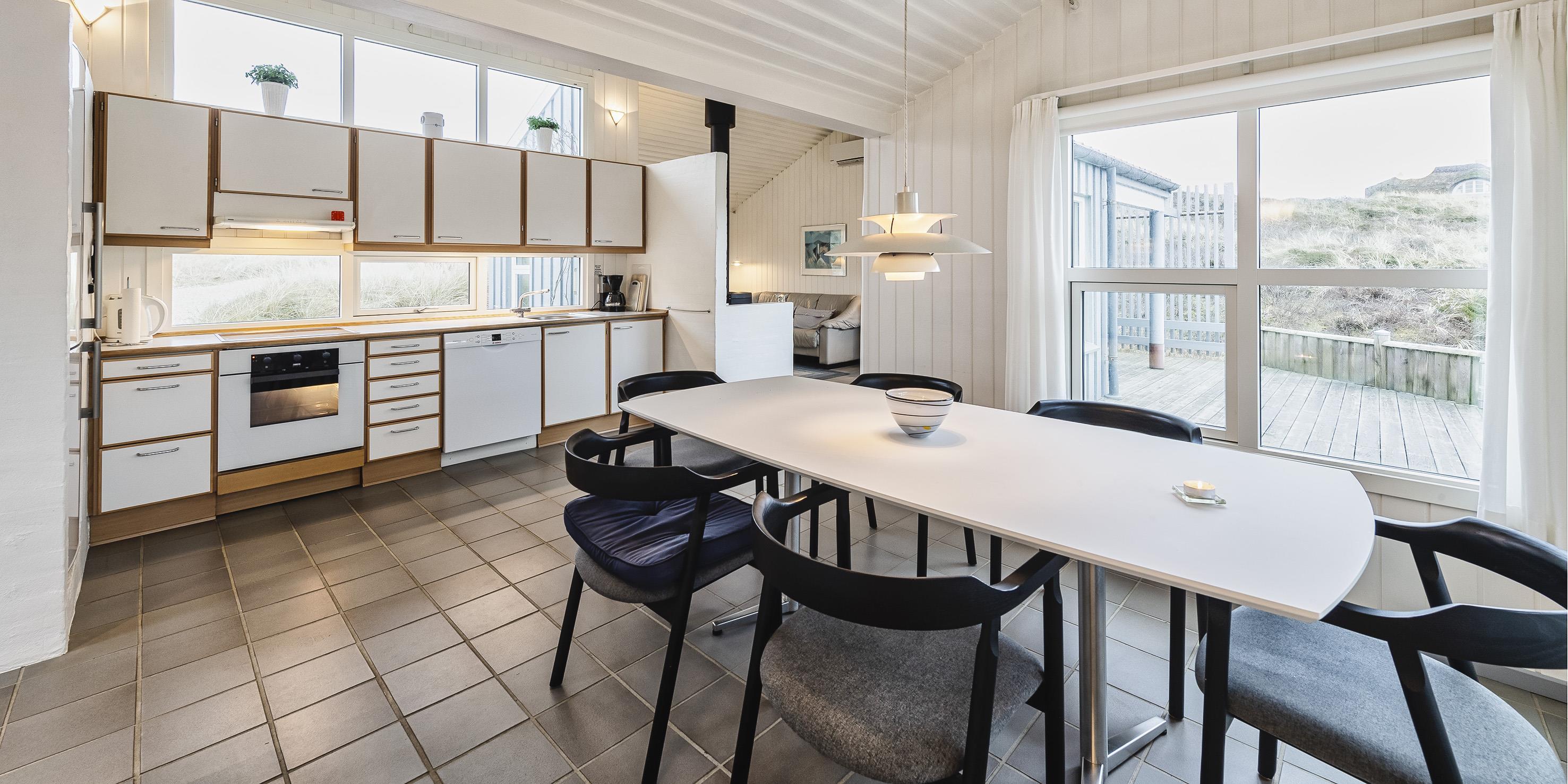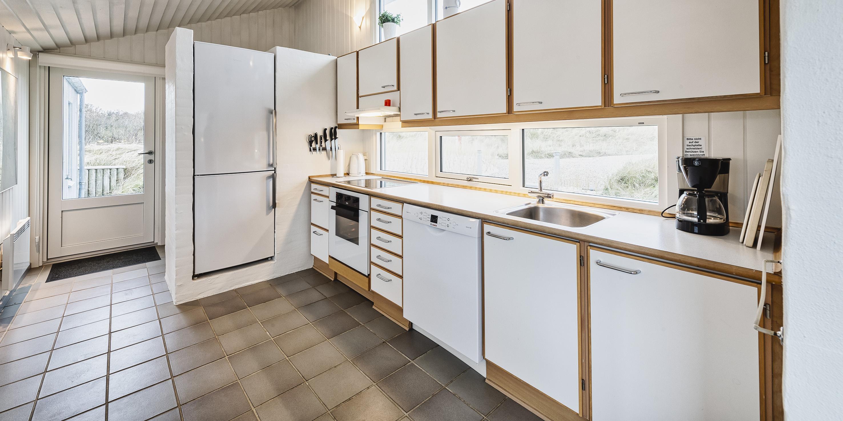 Smagfuldt sommerhus til 5 personer, beliggende på pragtfuld klitgrund, ca. 100 meter fra stranden. Stort køkken med køle-/fryseskab, spisehjørne og opvaskemaskine. Stue med brændeovn, fjernsyn med Stofa-programmer. Varmepumpe. Badeværelse med bruser/wc, vaskemaskine og sauna. 3 soveværelser: DS + DS + S. Stor lukket terrasse. Kun 1 lille Hund er tilladt! Rygning er ikke tilladt indendøre. Trådløs internet. Byggeår 1987.