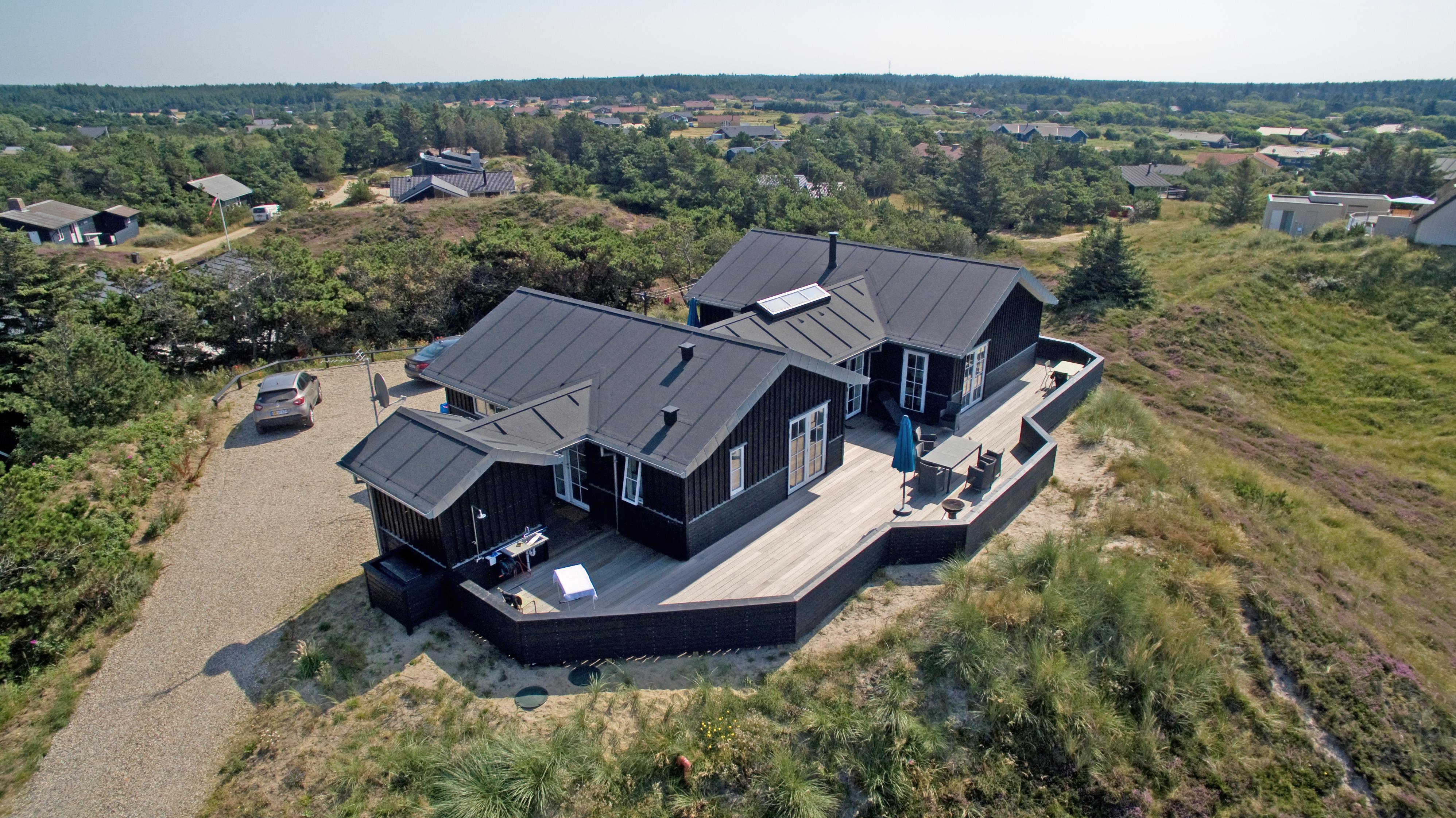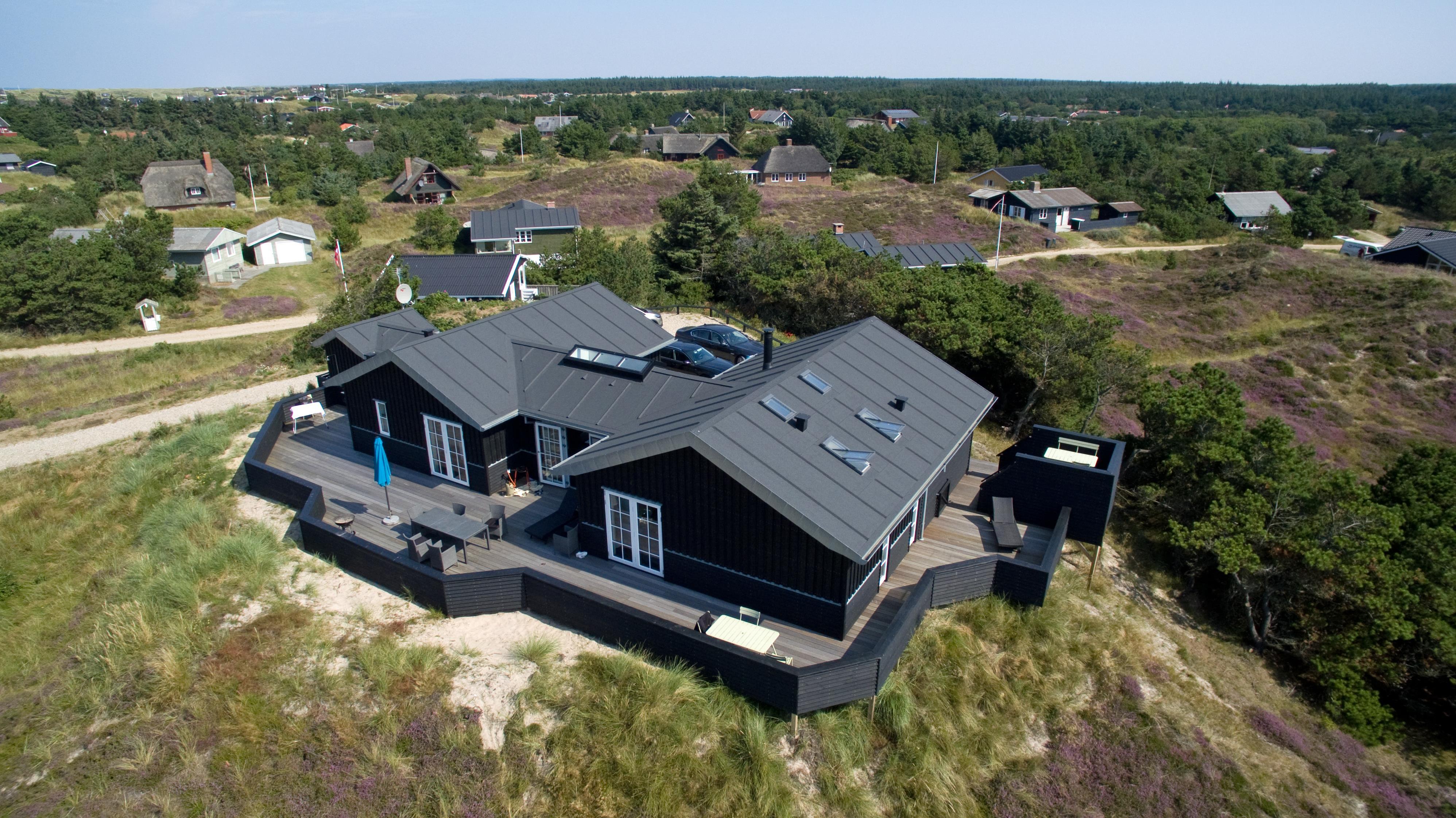 Meget flot lavenergi sommerhus fra 2014 til 8 fordringsfulde Vejers fans, beliggende på en naturskøn klitgrund, ca. 400 meter til stranden. Lys og venlig stue med brændeovn, parabol og fjernsyn (DR programmer) samt åbent køkkenalrum med opvaskemaskine og køle-/frysekombination samt stor spiseplads. Trådløs Internetadgang. 4 store soveværelser: DS + DS + DS + DS. 2 Badeværelser med bruser/wc, heraf det ene med spa og sauna. Vaskemaskine med tørretumbler. Stor lukket træterrasse. Handicapvenligt. Gulvvarme i hele huset. Rygning er ikke tilladt. Byggeår 2014.