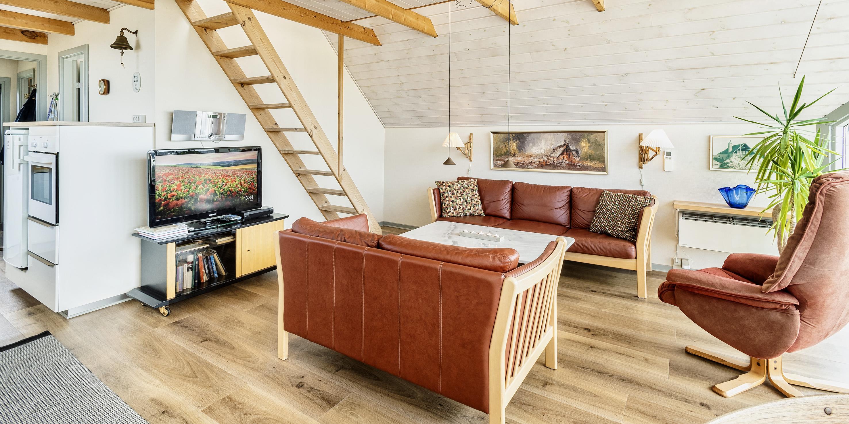Indeholder: Entre indgang fra gårdhaven. Herfra er der adgang til huset opholdsrum med loft til kip og med store panoramavinduer. Opholdsrummet fremstår med nyt køkken fra 2020, spisestueafdeling med kig til brændeovnen. Stue med fjernsyn, Chrome cast, parabol (DR programmer) og brændeovn. Opgang til hems med lille stue med kig til vandet. Huset vinkel køkken er med opvaskemaskine, keramisk kogeplade, indbygningsovn, mikroovn og køleskab. Badeværelse med bruser/wc. 1 soveværelse med 1 dobbeltseng (fra 2021) og 1 soveværelse med 1 køjeseng. Kummefryser. der forefindes en varmepumpe i hovedhuset. Gæstehus: 1 soveværelse med 2 enkeltsenge samt lille siddehjørne. 3 soveværelser: DS + 2S + 2S. Gæstetoilet med vaskemaskine. Trådløs internet. Delvis lukket terrasse samt gårdhave. Husdyr er ikke tilladt - dog med undtagelse af én lille hund! byggeår 1962, renoveret 2020.